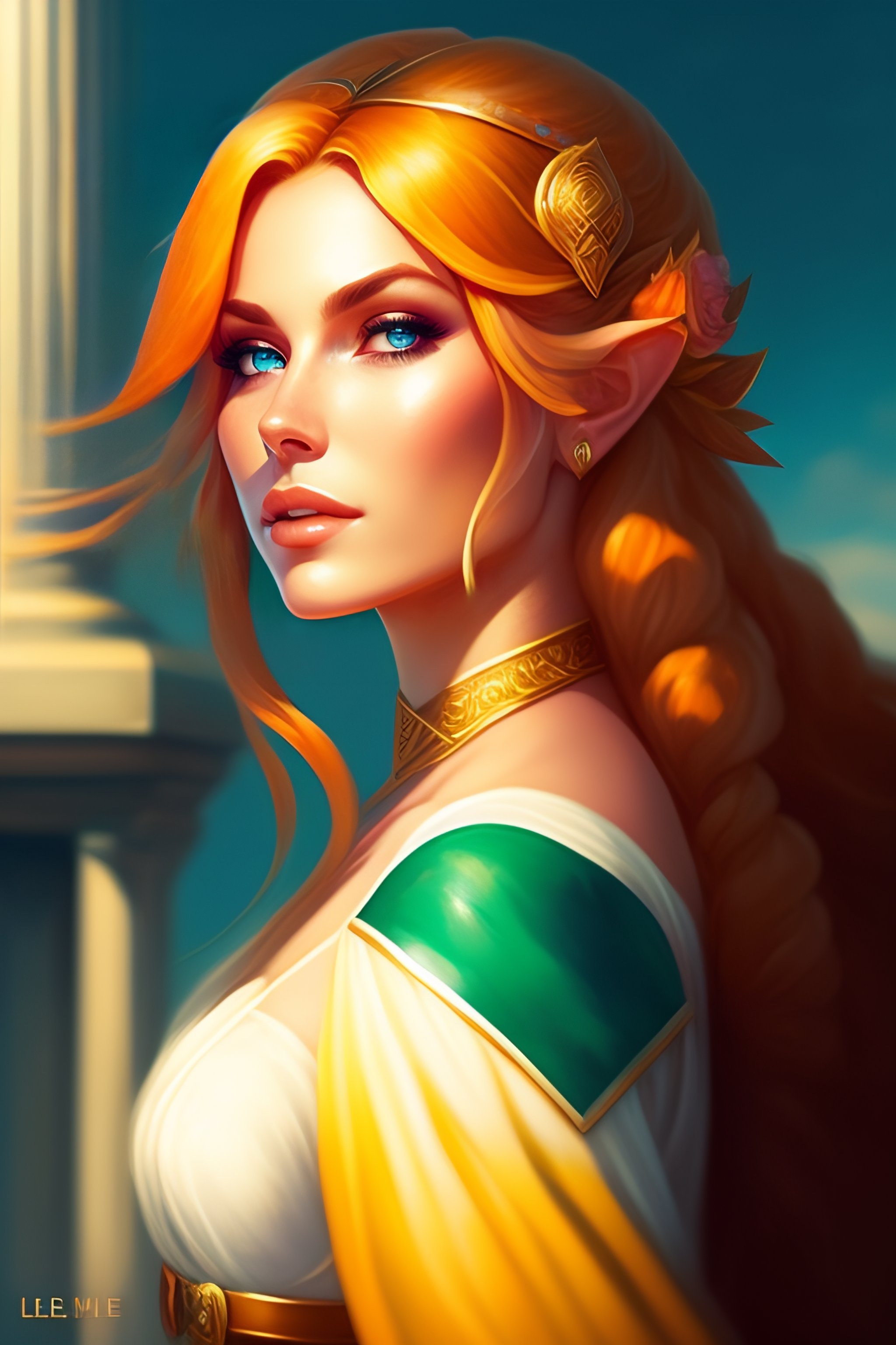 Portrait of a female link from legend of zelda, bride, marriage, wedding, face, asymmetrical, profile picture, organic painting, sunny day, matte painting, bold shapes, hard edges, street art, trending on artstation, by lois van baarle and gil elvgren and sachin teng