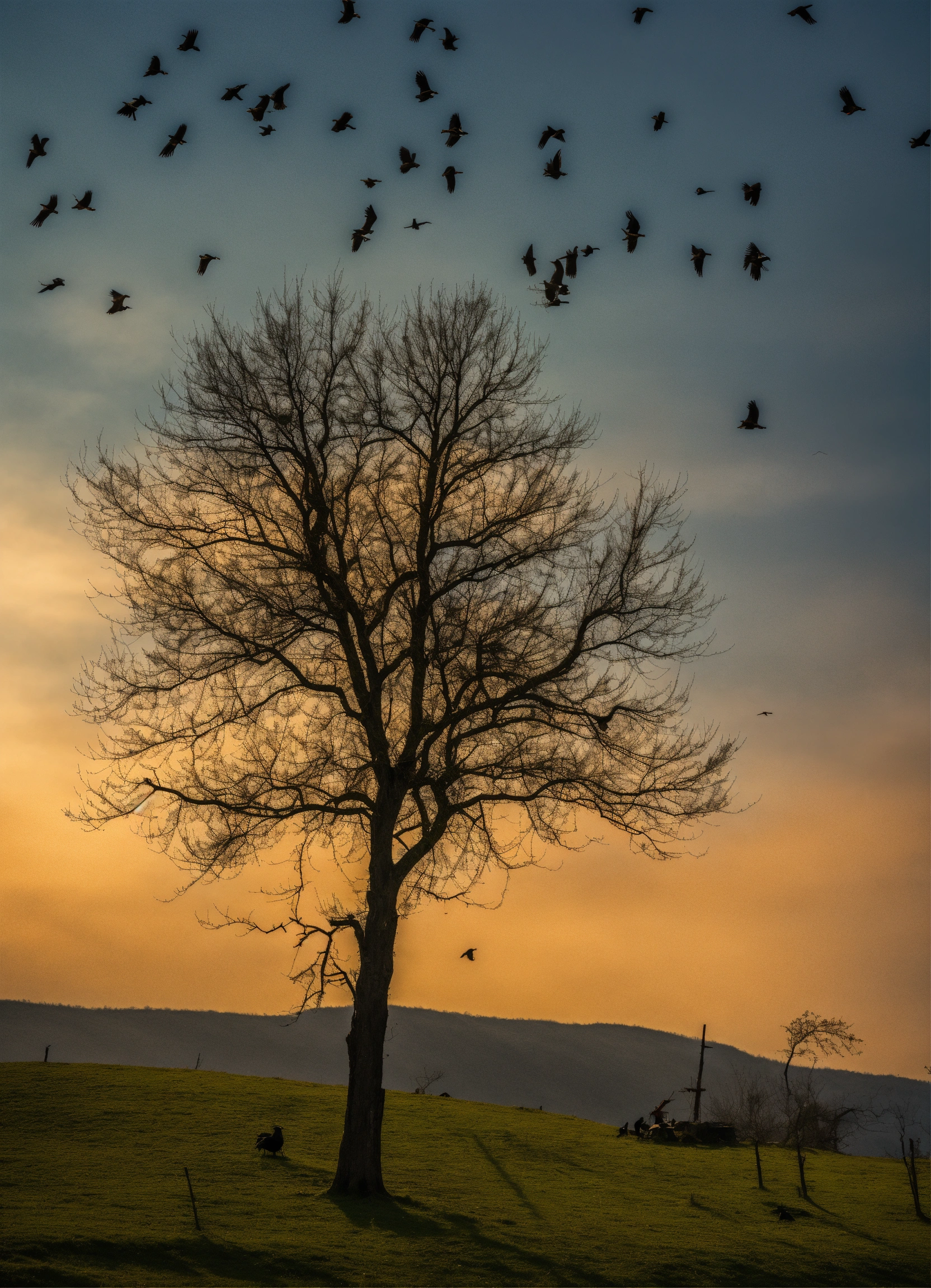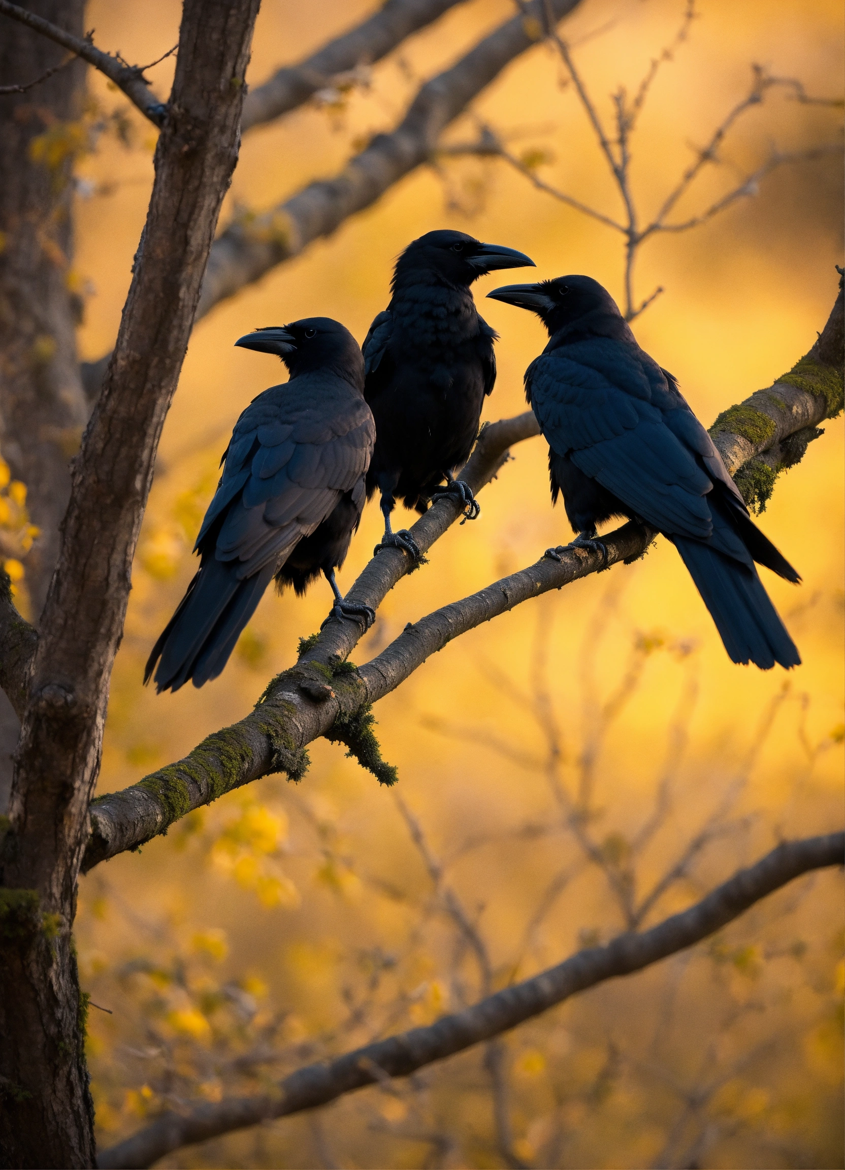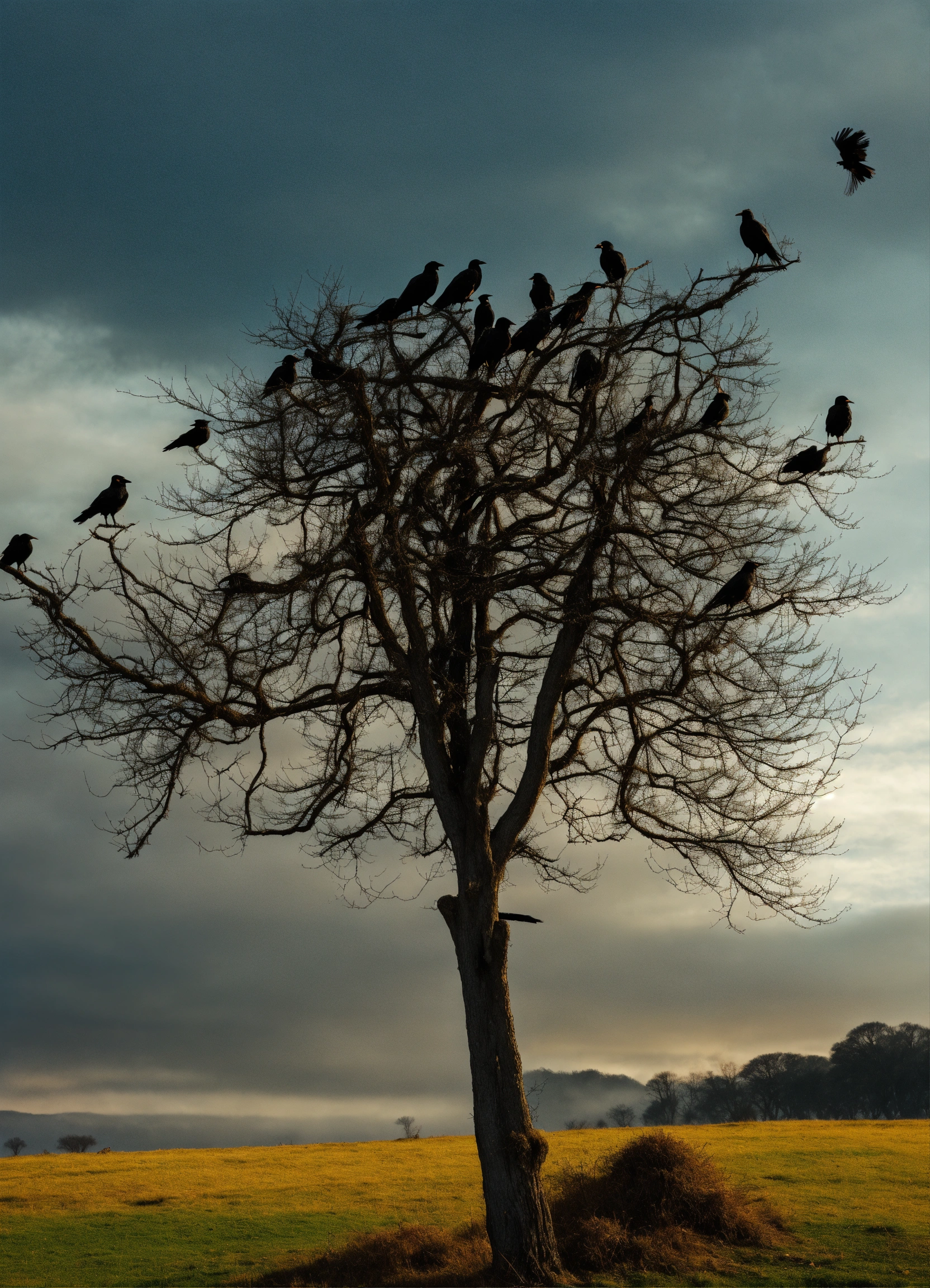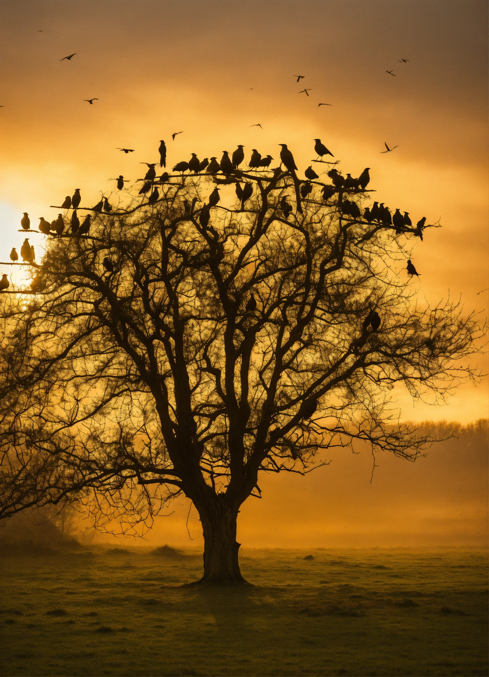 A flock of crows sat on a tree