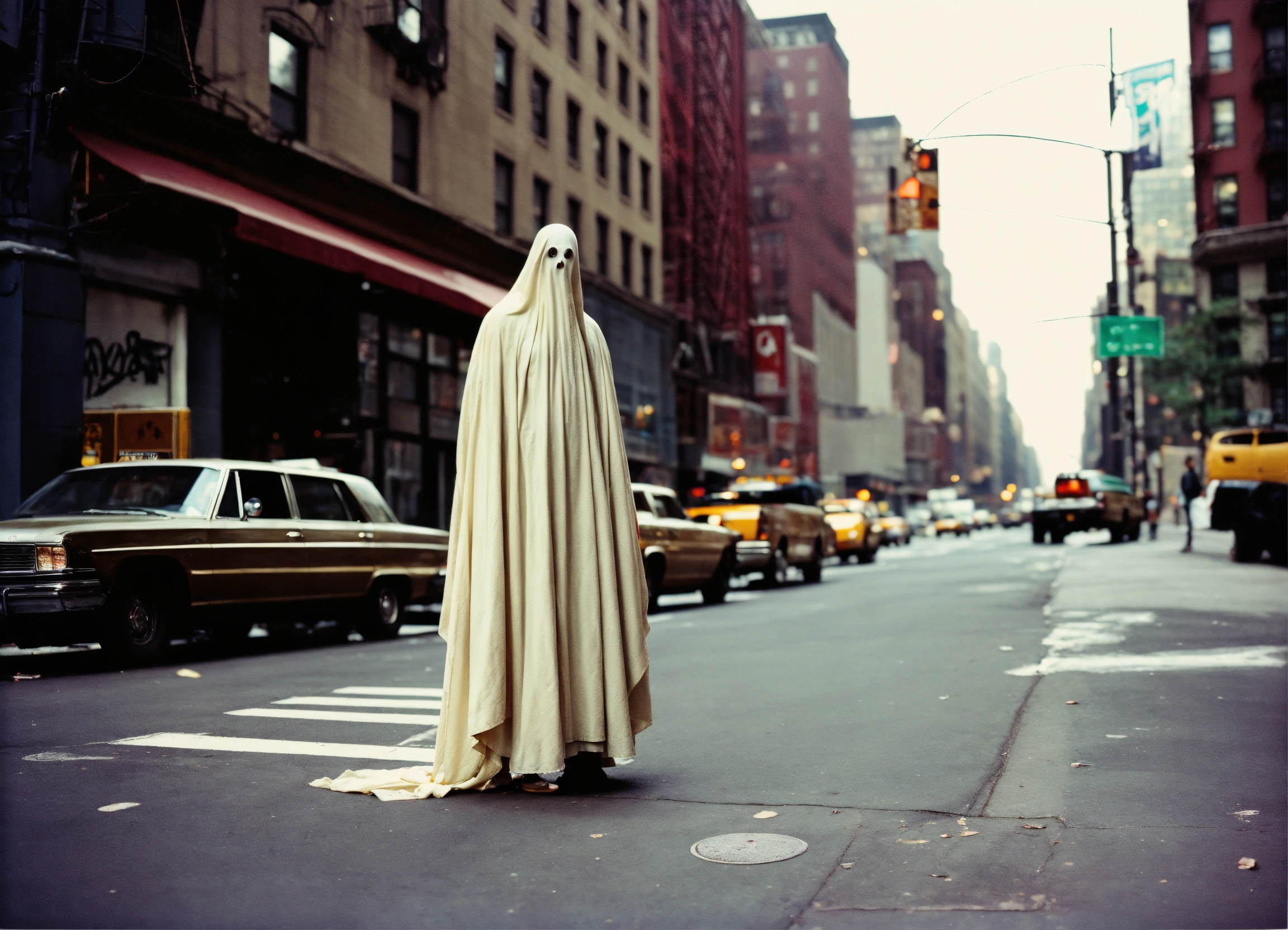 Very creepy realistic ghost standing in the street