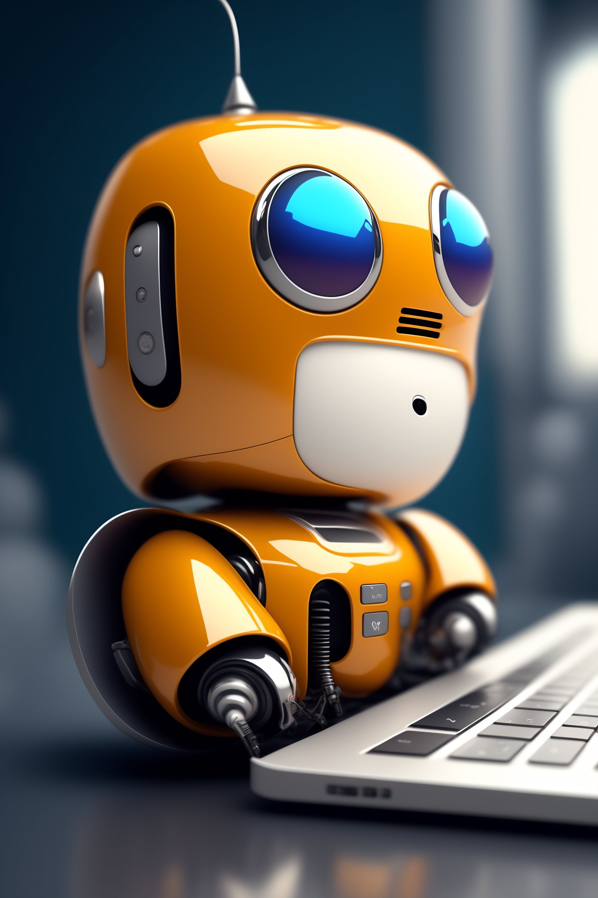 Cute robot typing in computer realistc