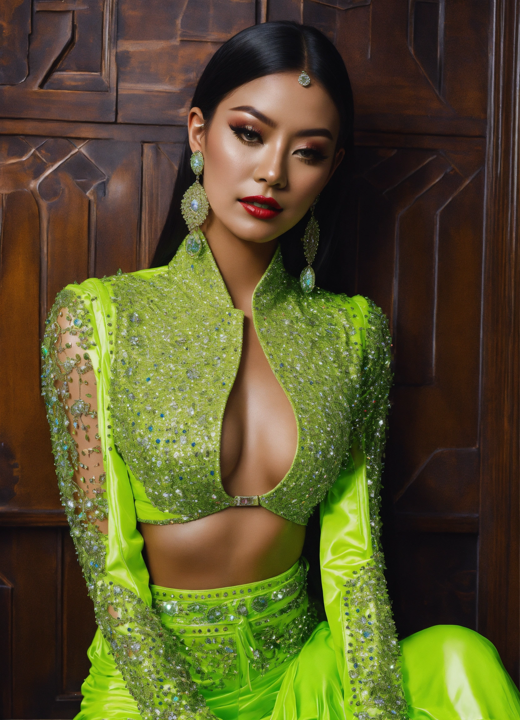 Dreamcatcher jiu glamorous sparkly diamond studded lime green outfit with high heels
