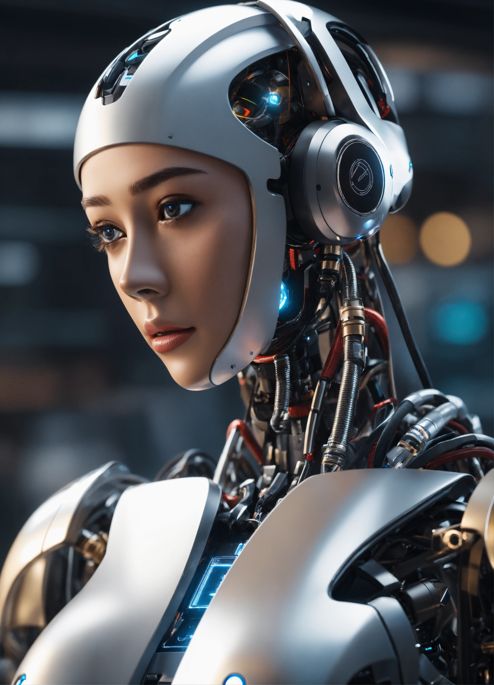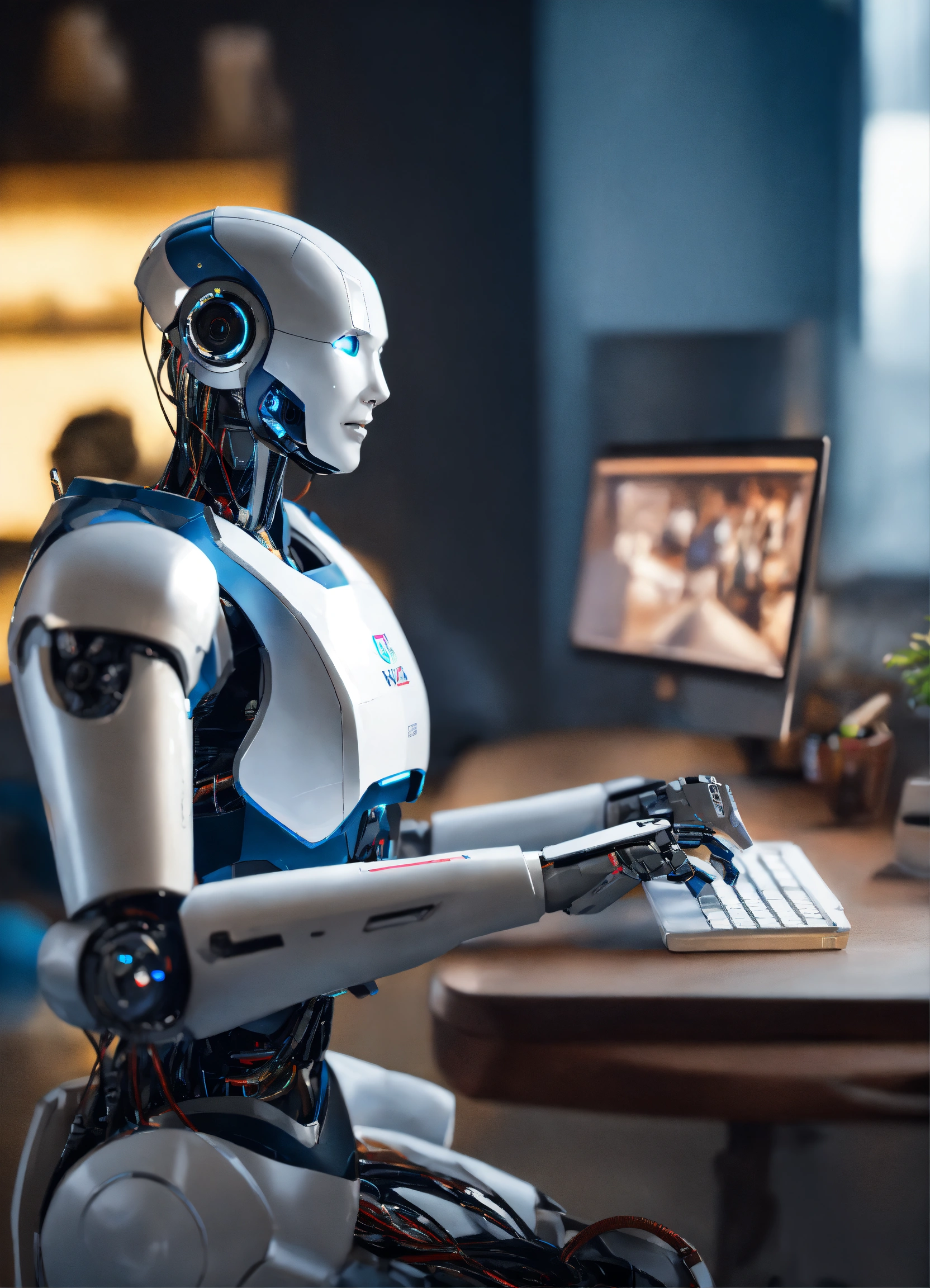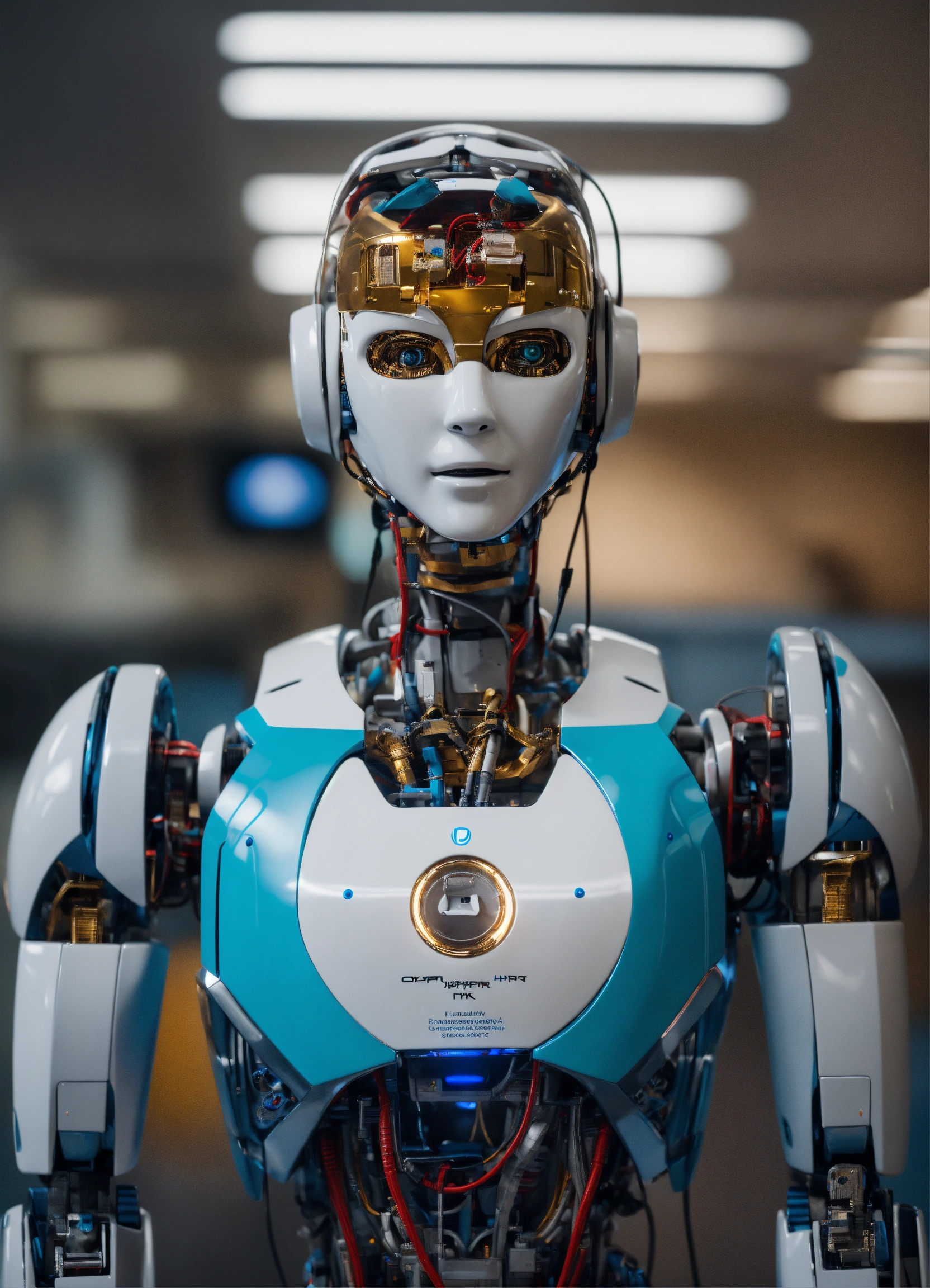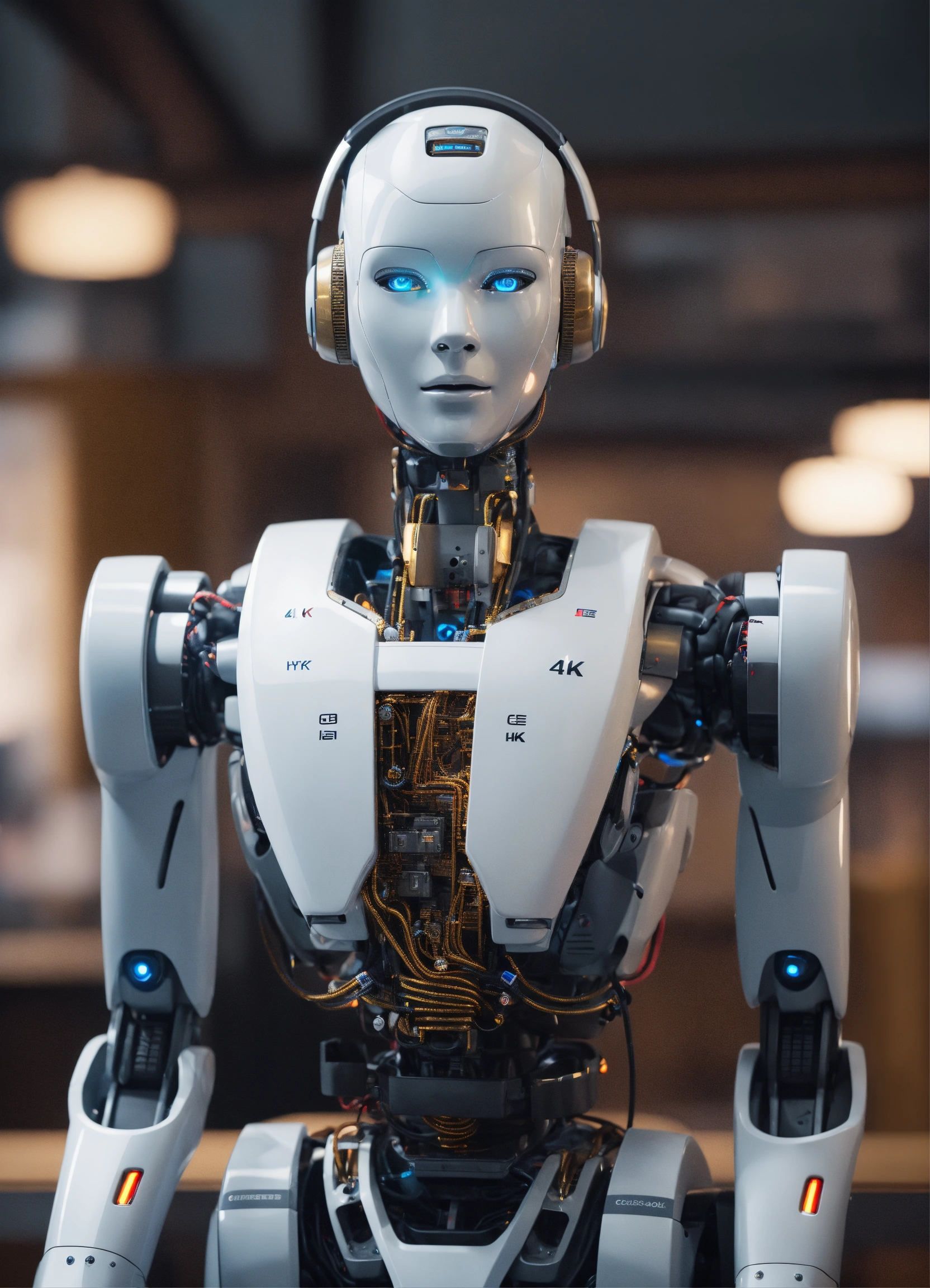 Create a hyper-realistic 4k image of a humanoid robot working as customer support