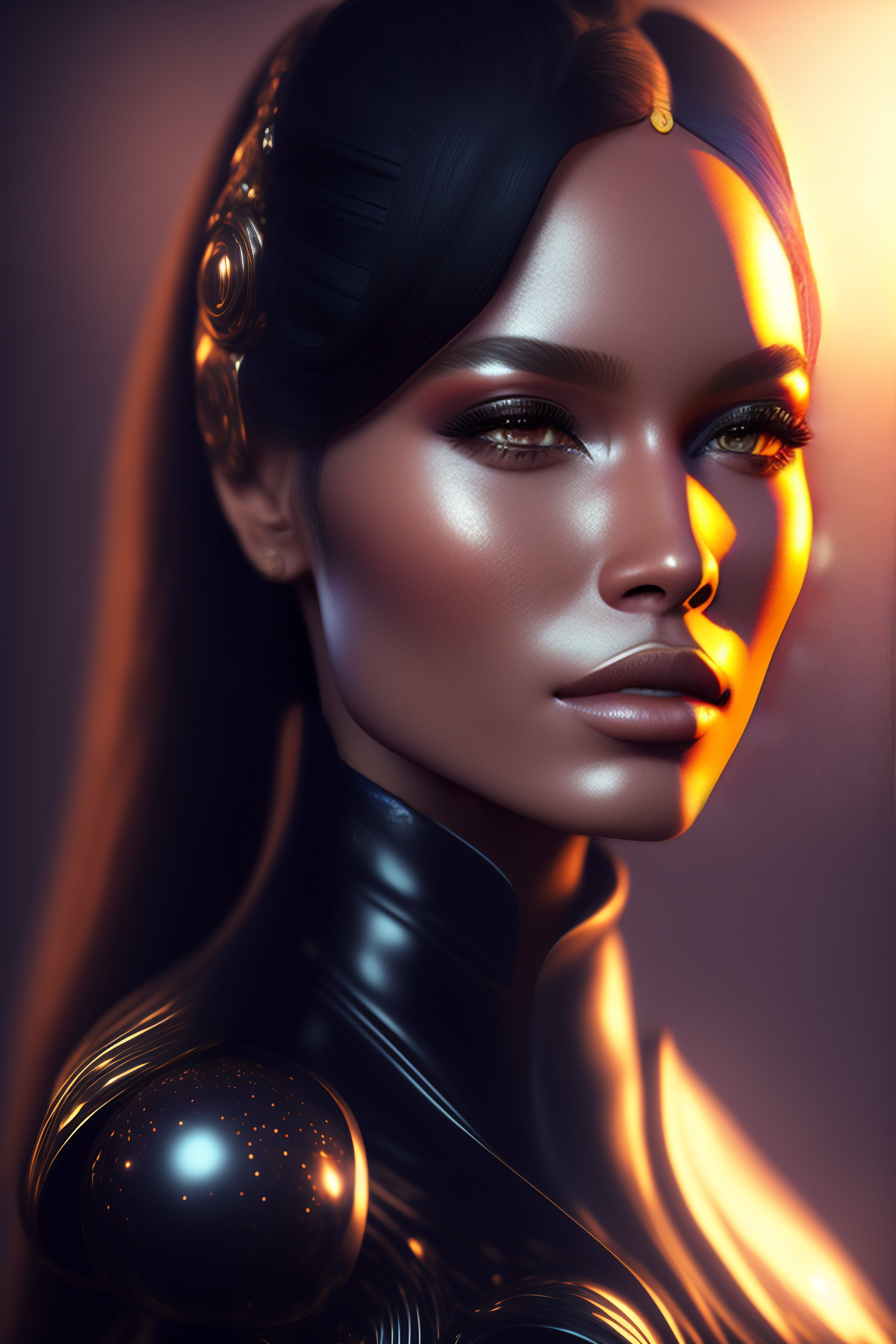 Beautiful yet mysterious female alien from a distant unknown galaxy, of the future, photorealistic, 8k, hdr, -- v 4