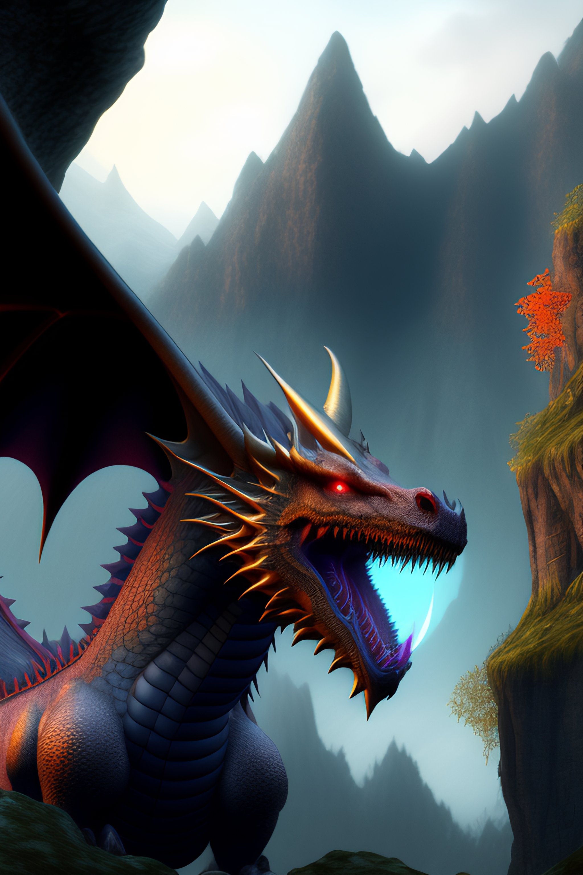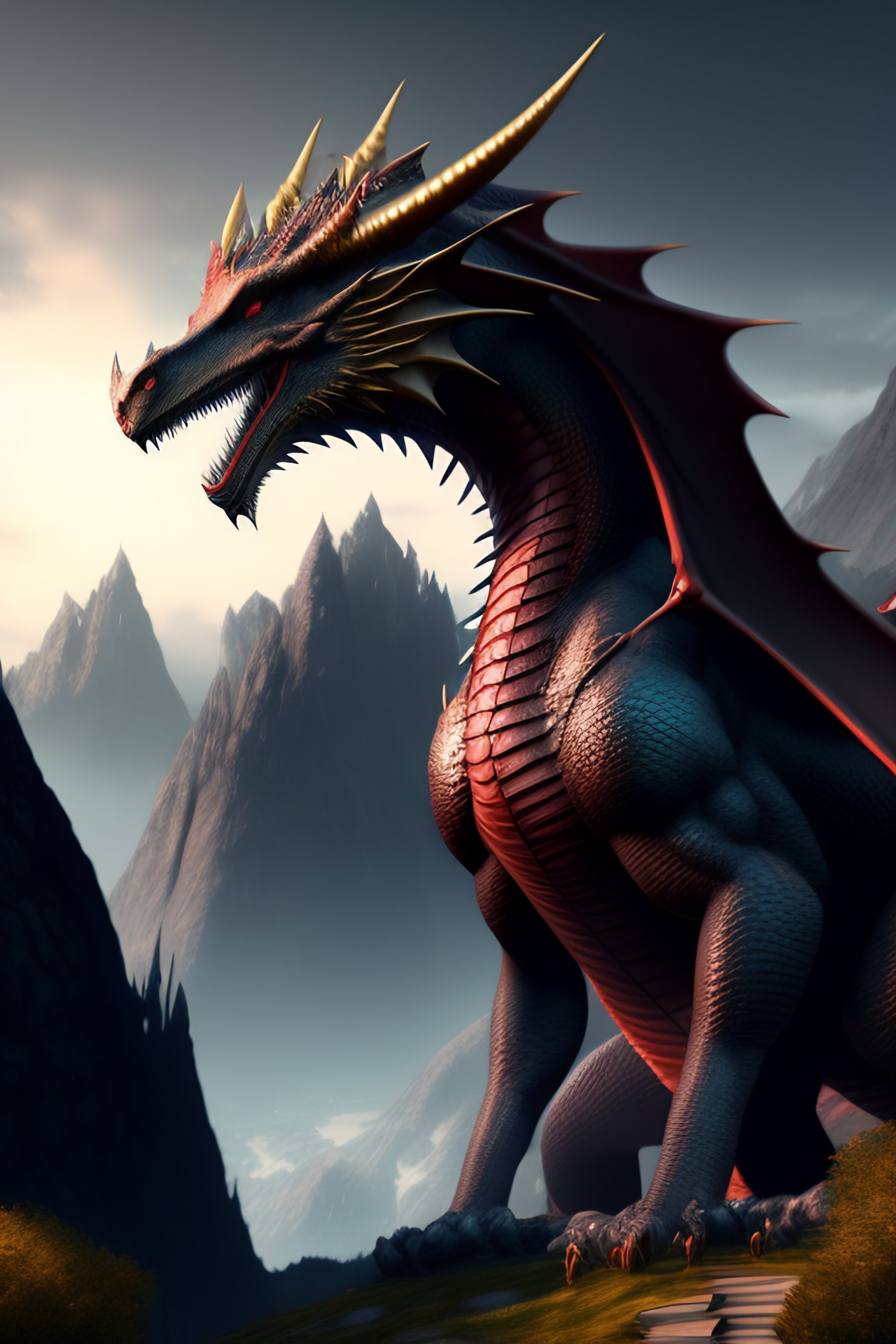 A digital image of a realistic and terrifying dragon in a fantasy kingdom using v-ray. dragon characteristics: a lifelike and believable appearance, with distinct and intricate details such as scales, spines, and wings, and a menacing and frightening presence. setting characteristics: a fantastical and dark kingdom, with elements such as abandoned castles, eerie forests, or ominous mountains to enhance the horror atmosphere. creation details: high-quality camera, artificial lighting to enhance the dramatic and terrifying atmosphere, materials and textures based on real references of dragon anatomy and fantasy kingdoms with a horror twist. references: artists and designers specializing in creating digital art of fantasy kingdoms and dragons with a horror twist, such as tyler edlin, social media platforms like instagram and pinterest for inspiration and reference images. --style 4b --chaos 0 --q 2 --stylize 1000 --v 4 --style 4b --chaos 0 --q 2 --stylize 1000