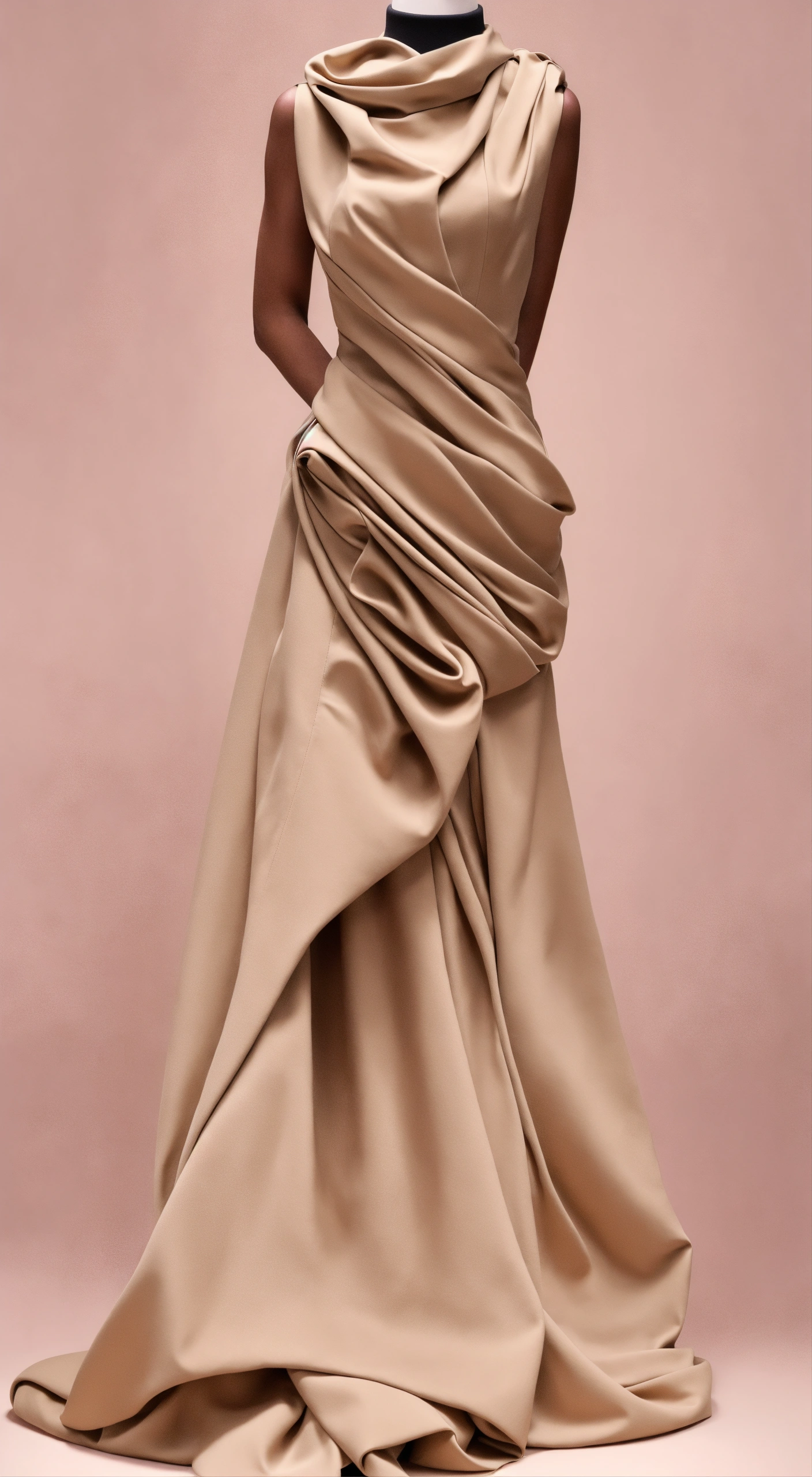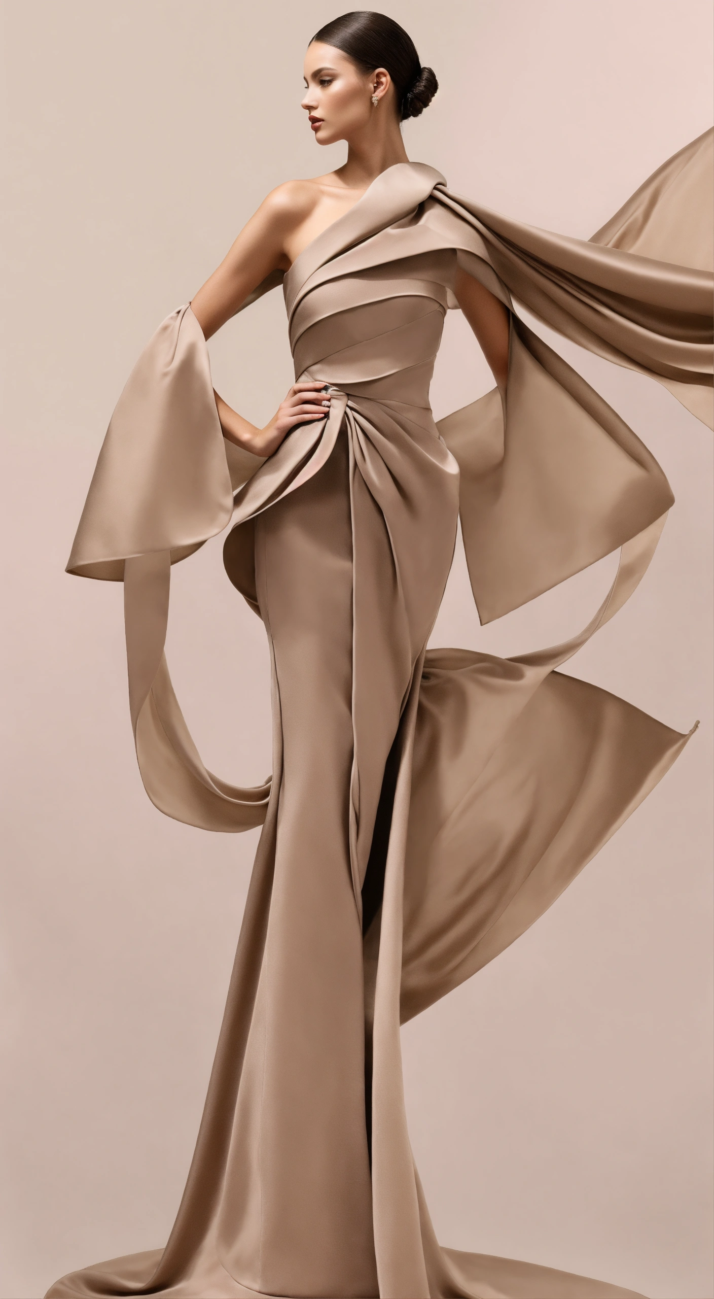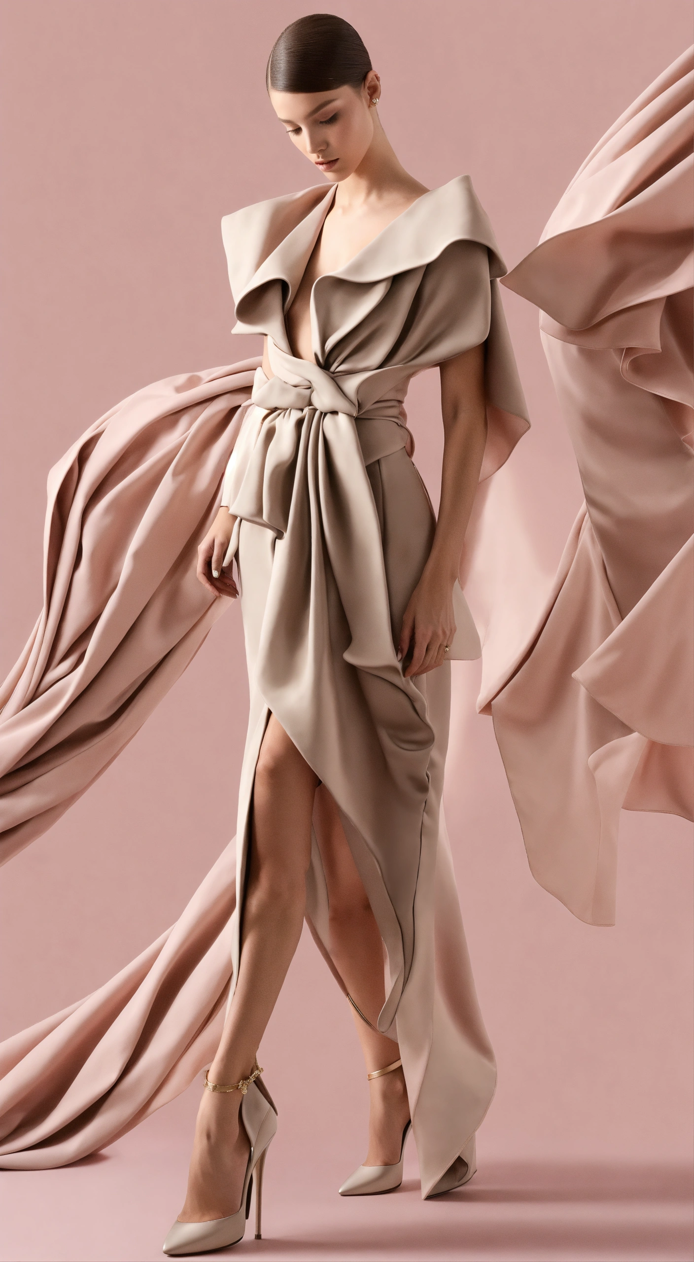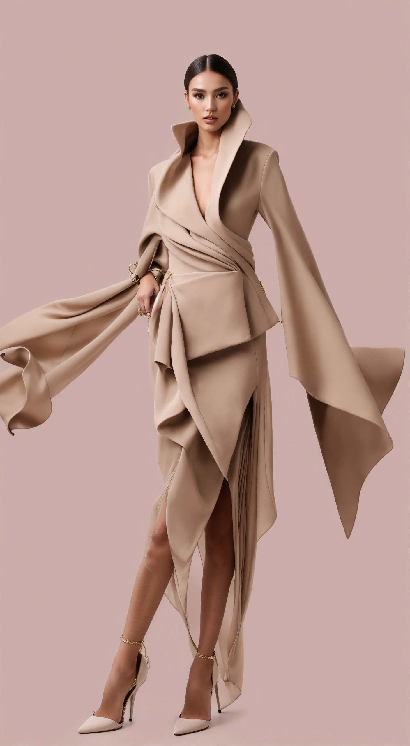 Innovative haute couture fashion design wide sculptural draping neutrals colors sophisticated