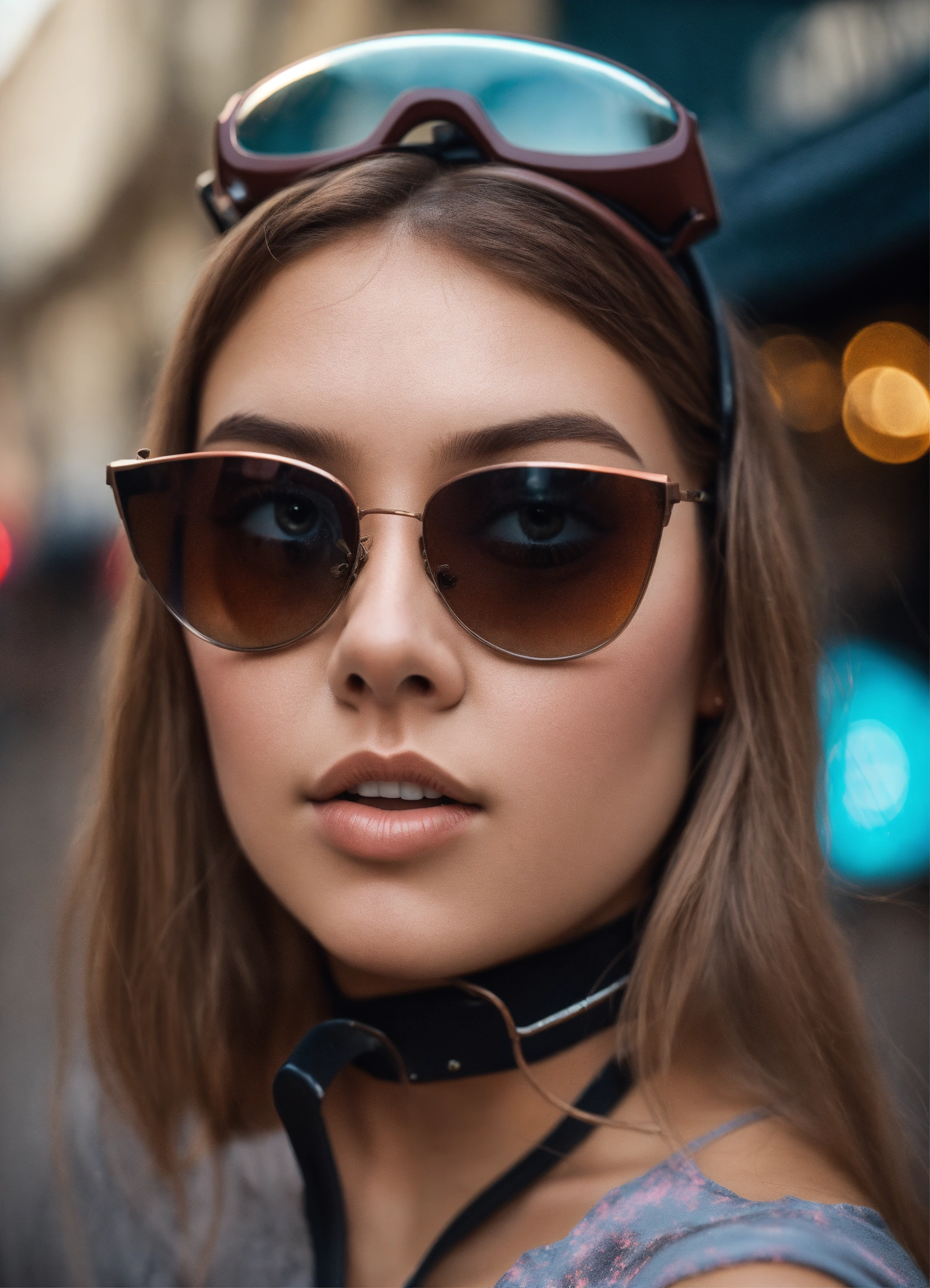 A real photo of a cute 22 year old very hot girl she is wearin a spandex catsuit and old cinema 3d-glasses, she standsthe city of paris, in the sky we we see thr galaxy