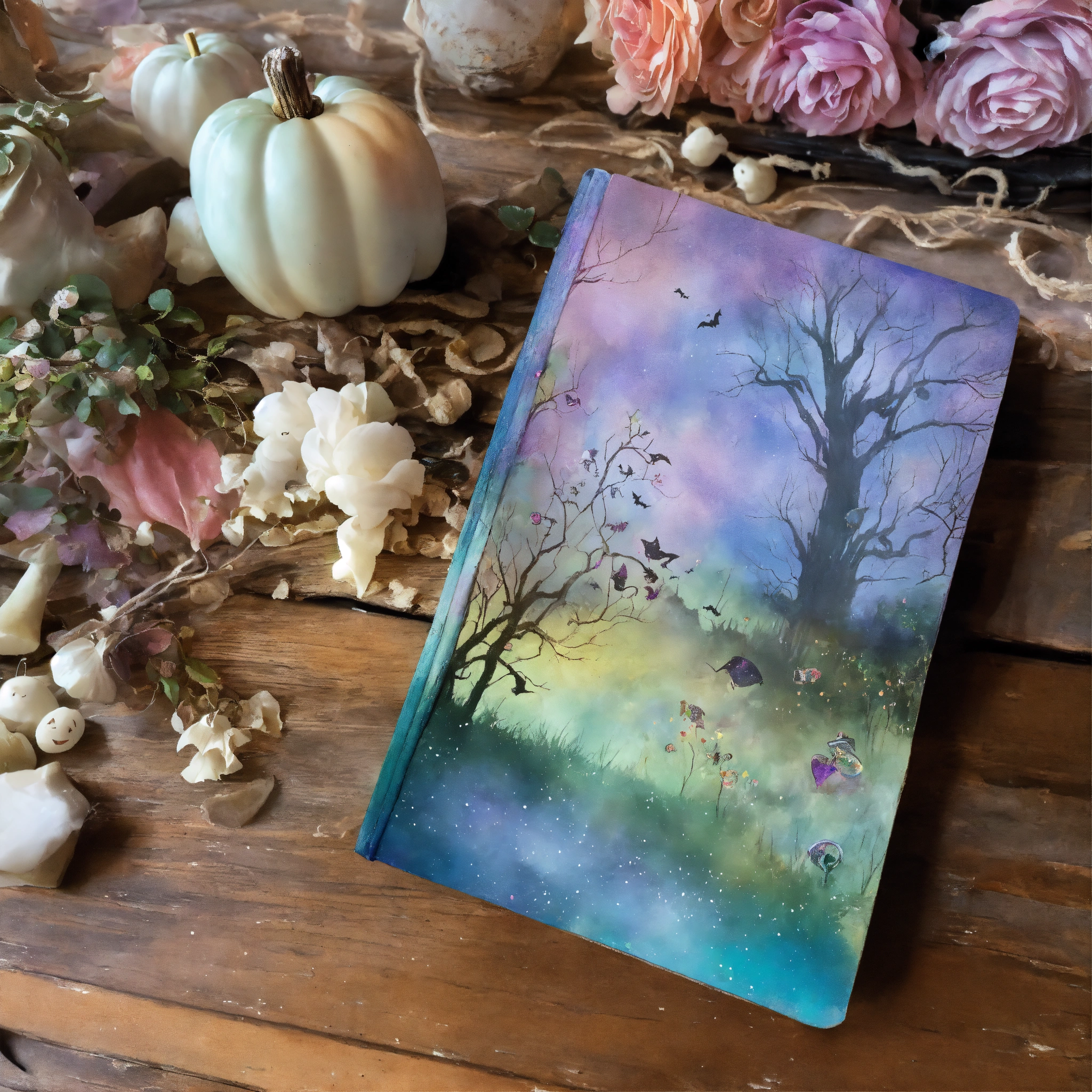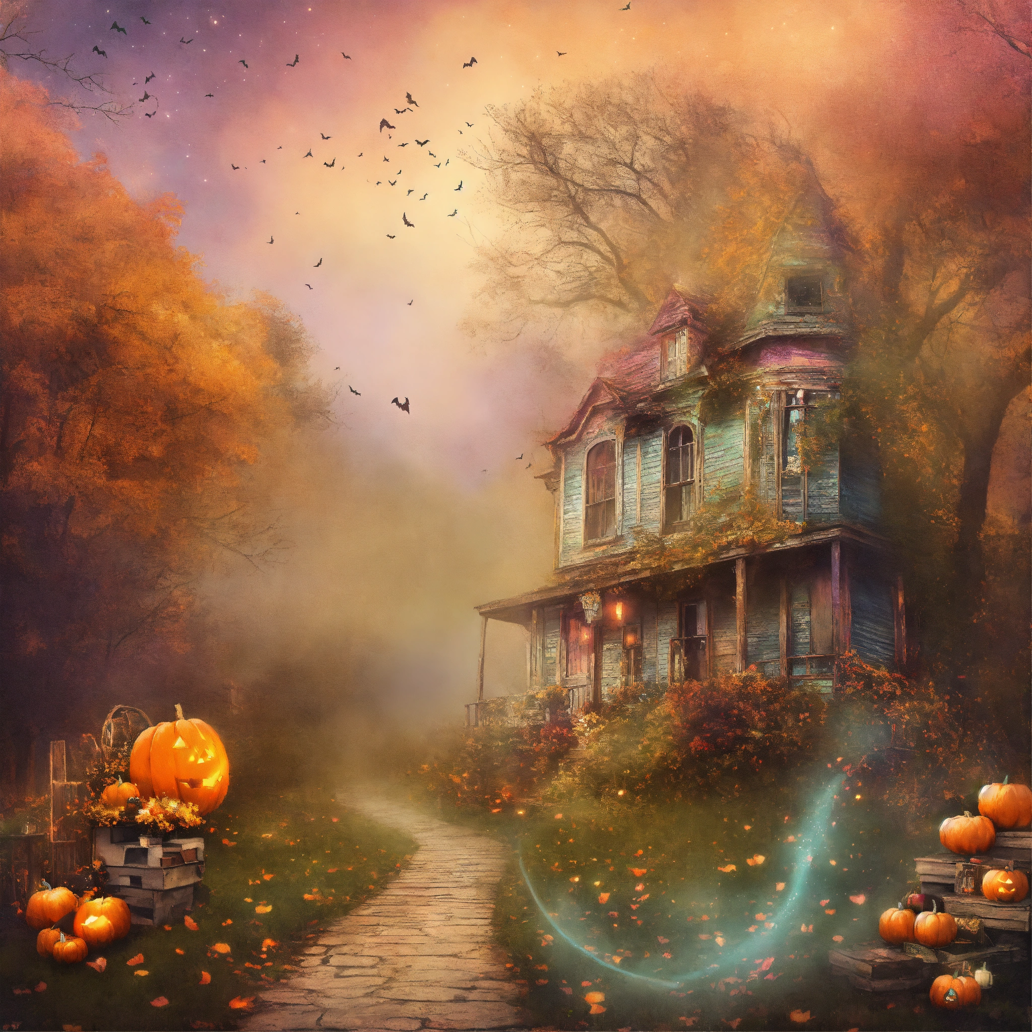 Shabby chic dreamy mist pastel junk journals haunted hollow halloween ghost swirling magical fairytale abstract art style