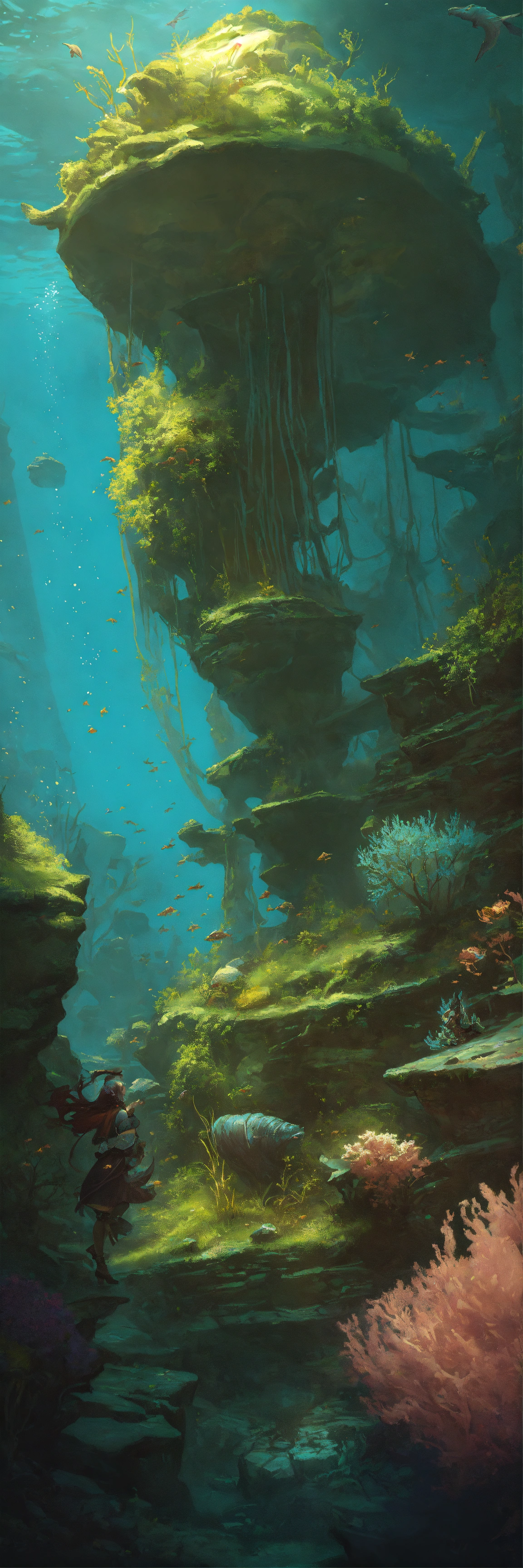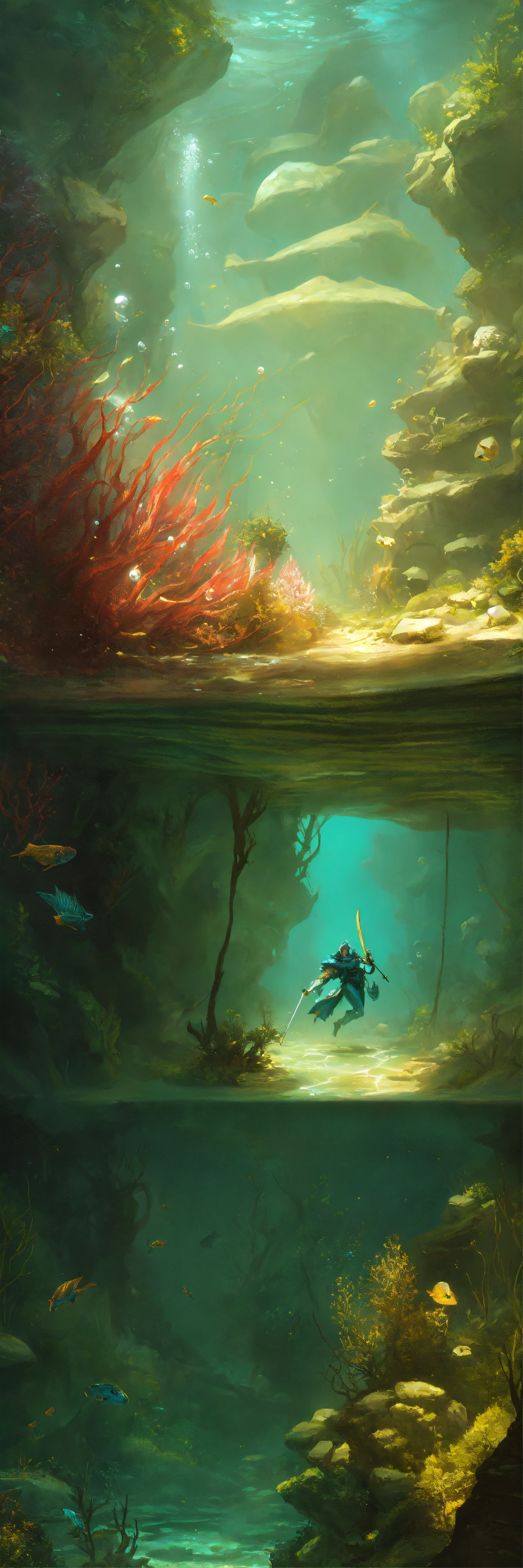 Underwater tarvern by justin gerard and greg rutkowski, digital art, realistic painting, fantasy, dnd, character design, trending on artstation