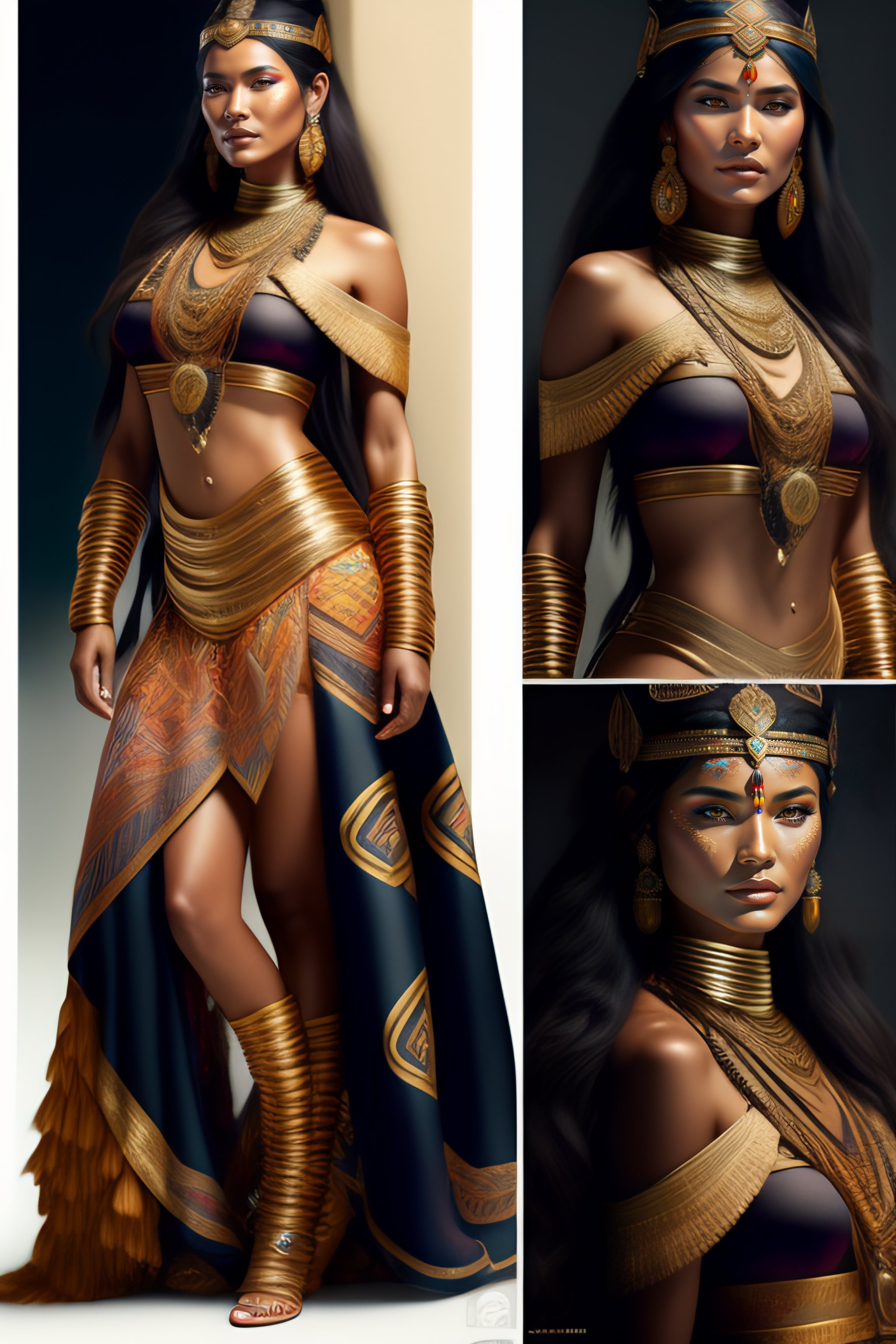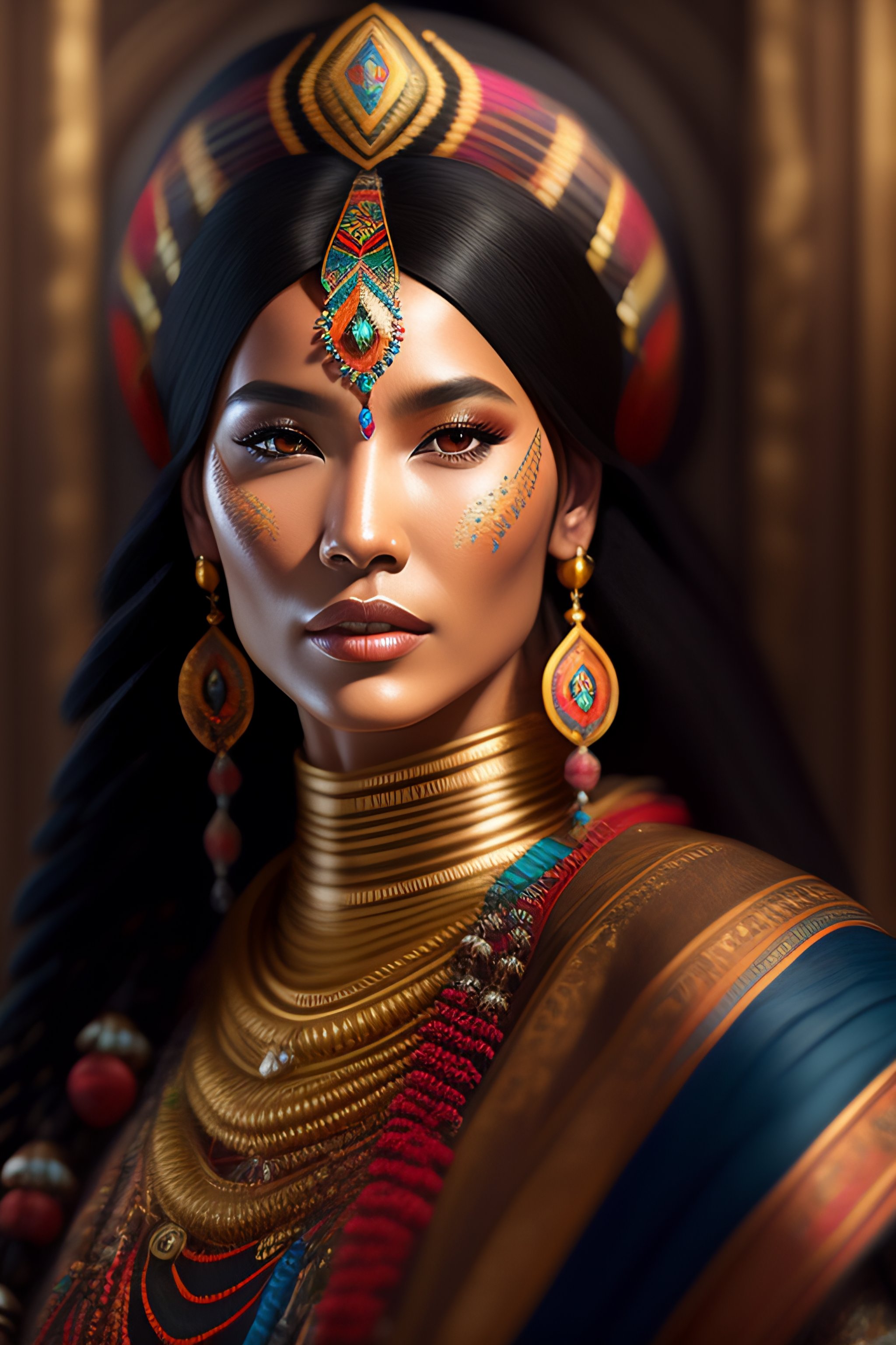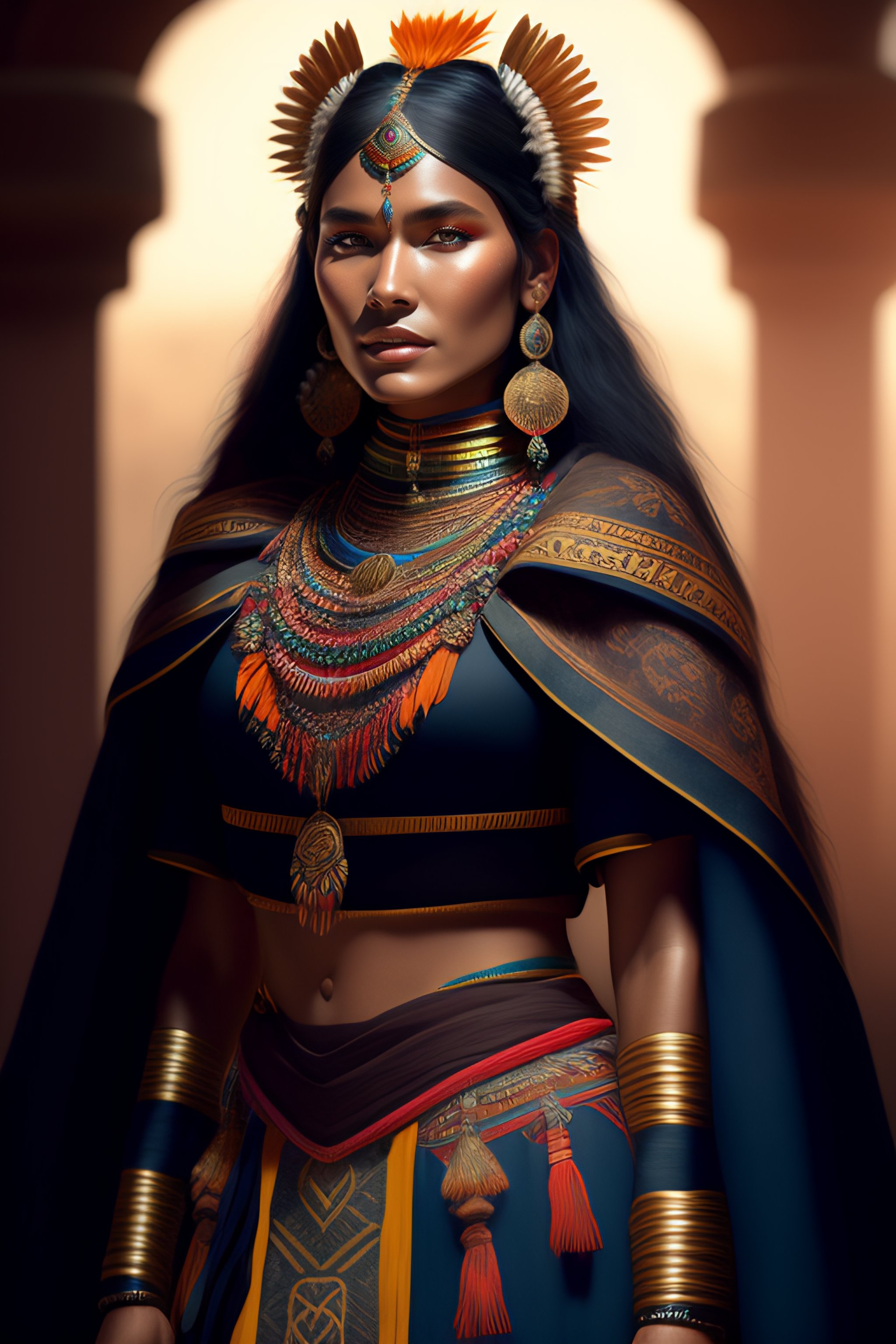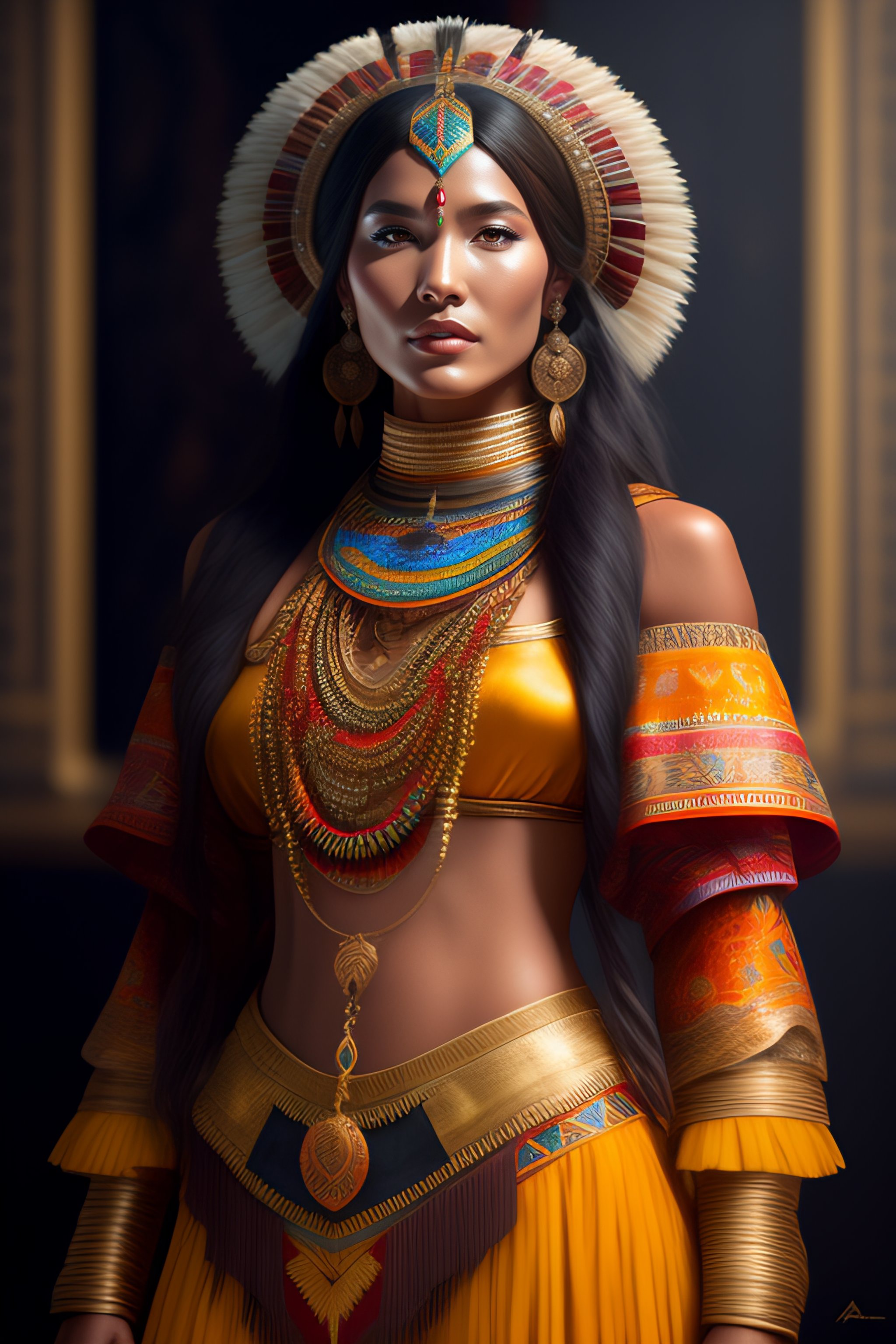 Full body painting of a native inca woman, ultra-realistic, concept art, intricate details, fully clothed flowing dress, highly detailed, photorealistic, octane render, 8 k, unreal engine. art by artgerm and greg rutkowski and alphonse mucha
