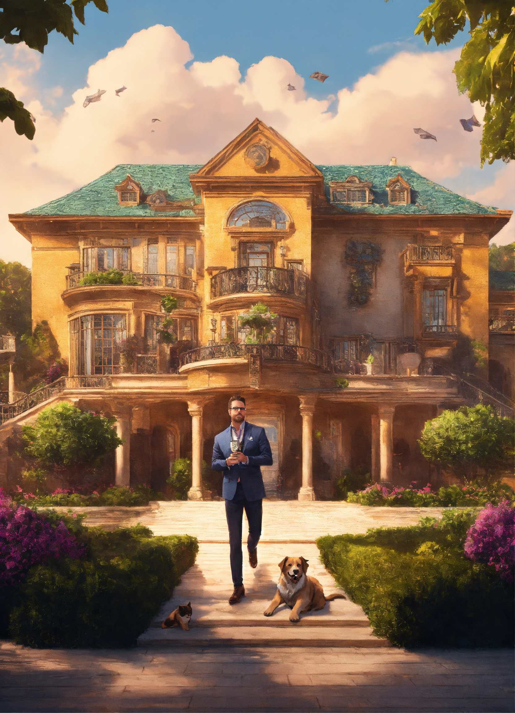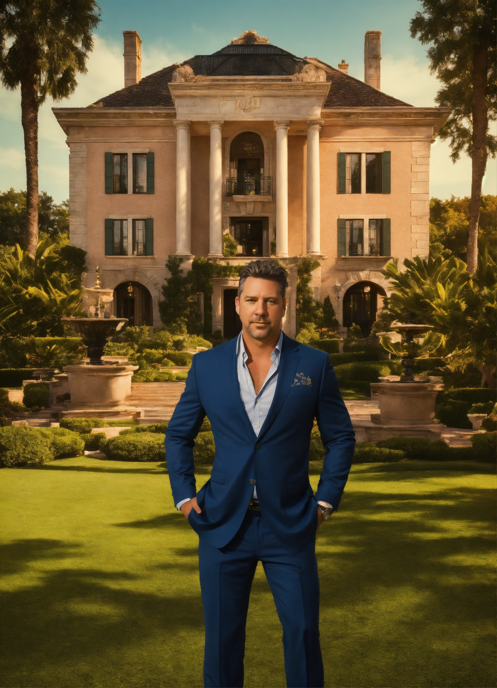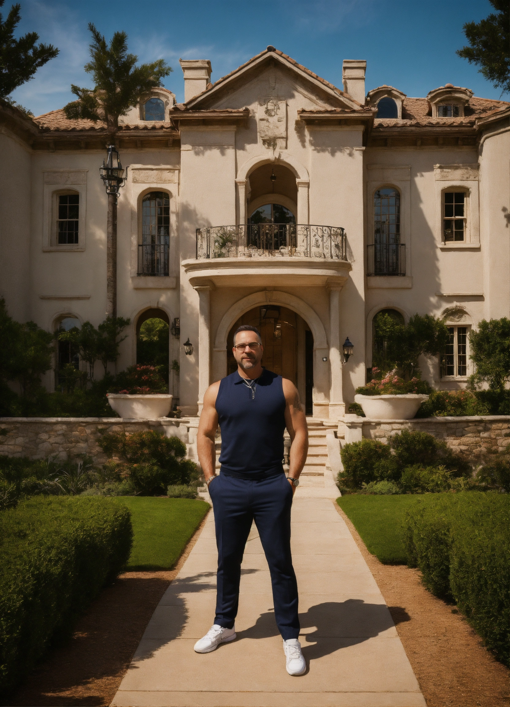 Jeff be is throwing money in the area with amazing logo being in the backround and his huge mansion on the backround