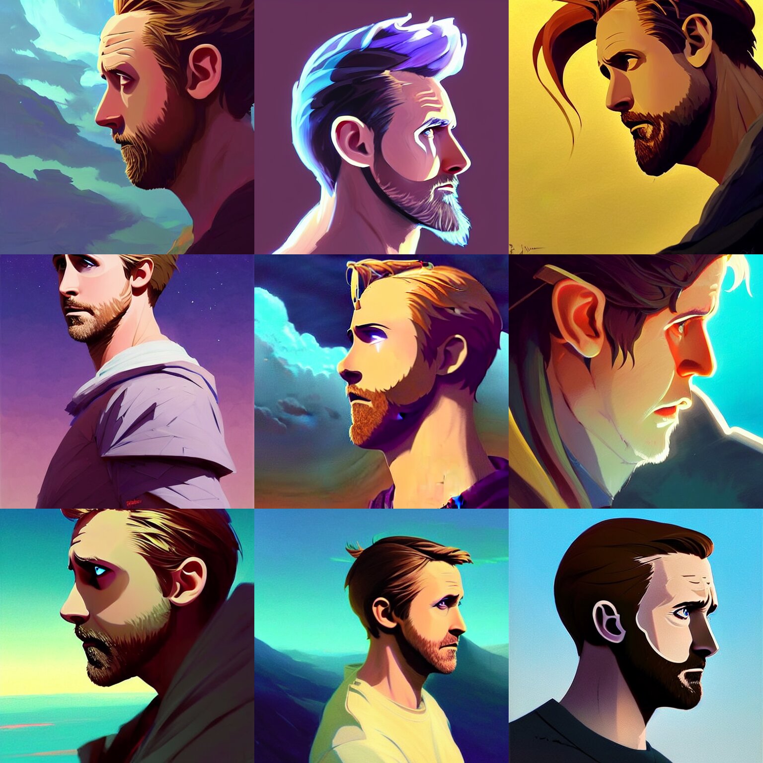 Side profile centered painted portrait, ryan gosling as a wind sorcerer, d&d, cell-shaded, matte painting concept art, bright backlit, official fanart, 4k, pinterest, by jesper ejsing and rhads and makoto shinkai and louis can baarle and ilya kuvshinov and rossdraws and cushart krentz and gilleard james and alphonse mucha - h 704
