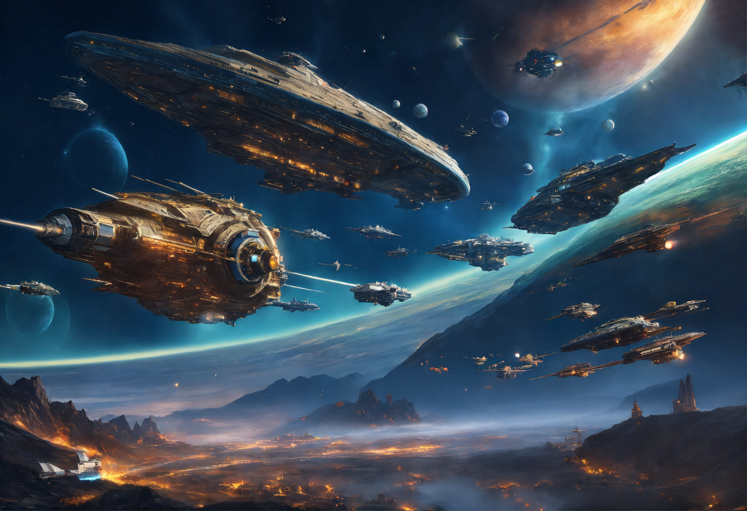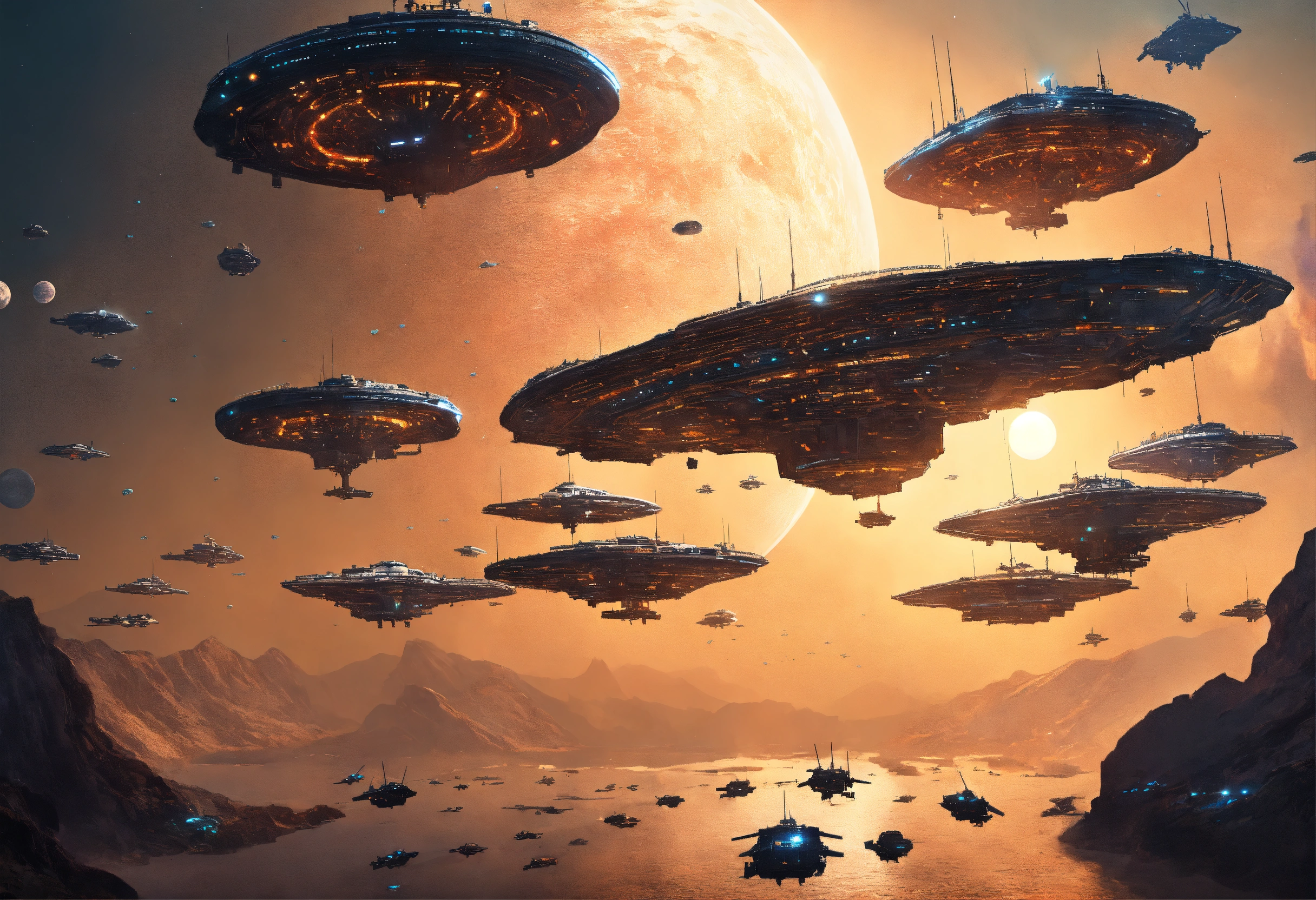 Gigantic spaceship fleet with thousends of ships far away in the deeps of space