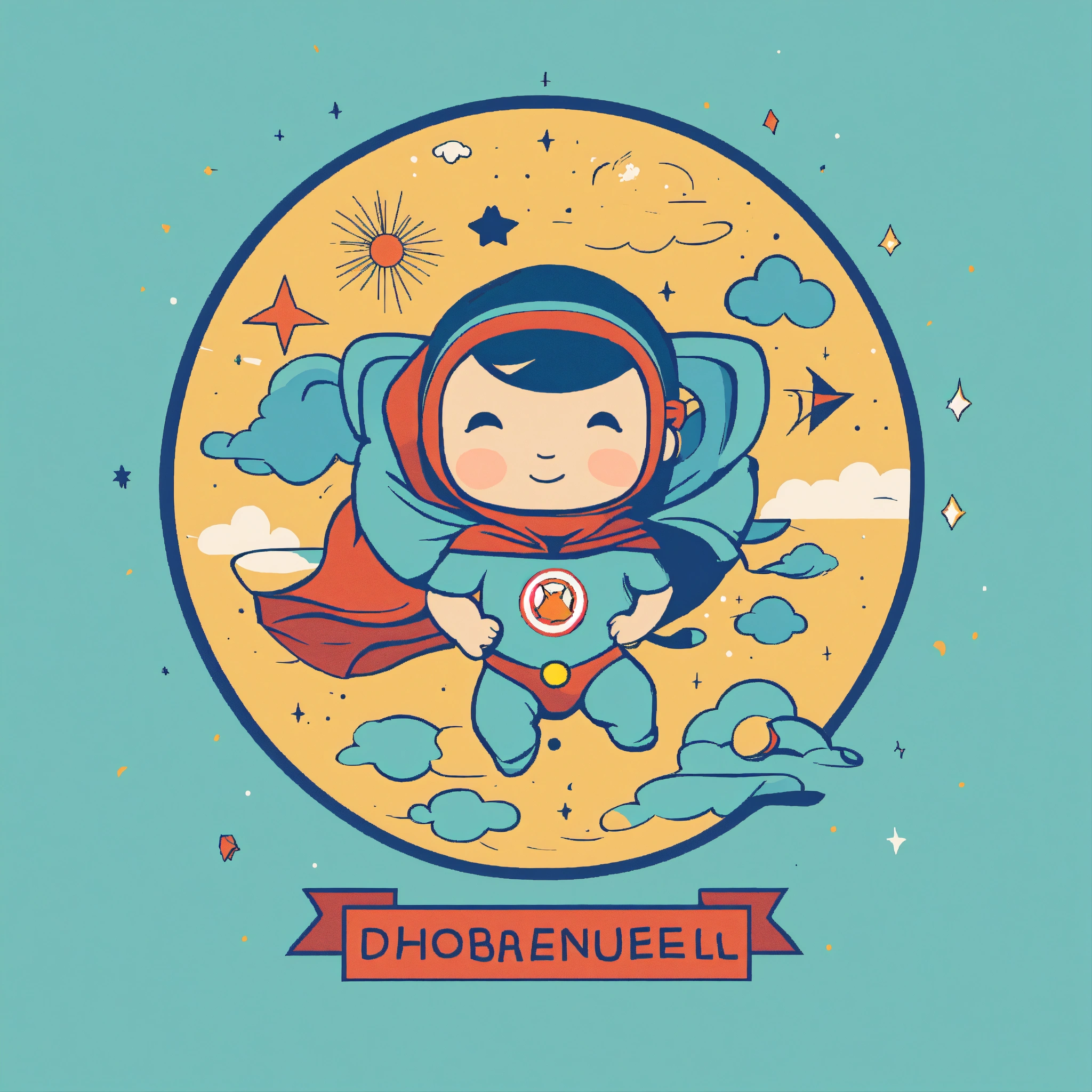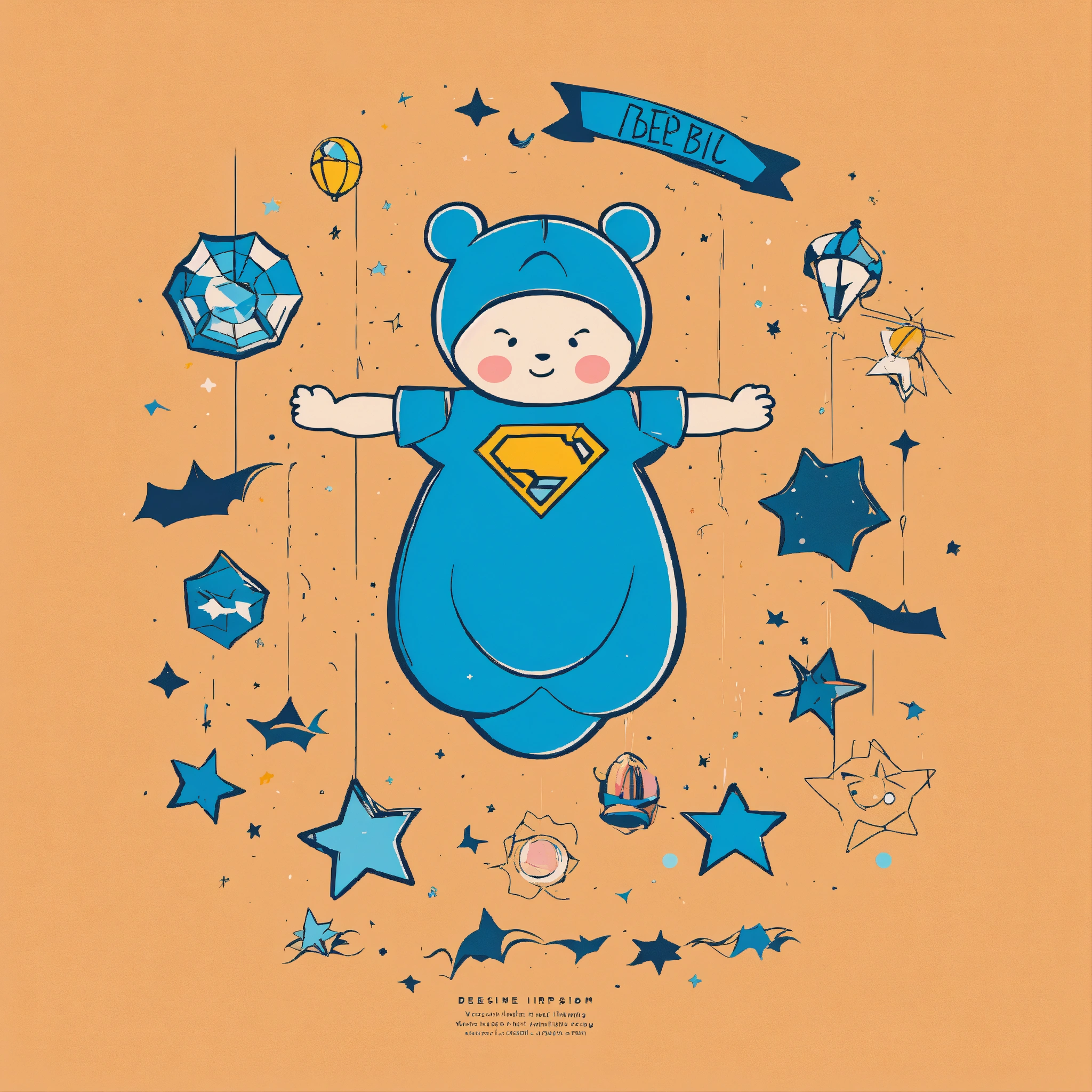 T-shirt vector illustration, centered design of a minimalist baby mobile with tiny superhero silhouettes, encouraging little ones to dream big. simplistic, centered vector illustration, solid background color.