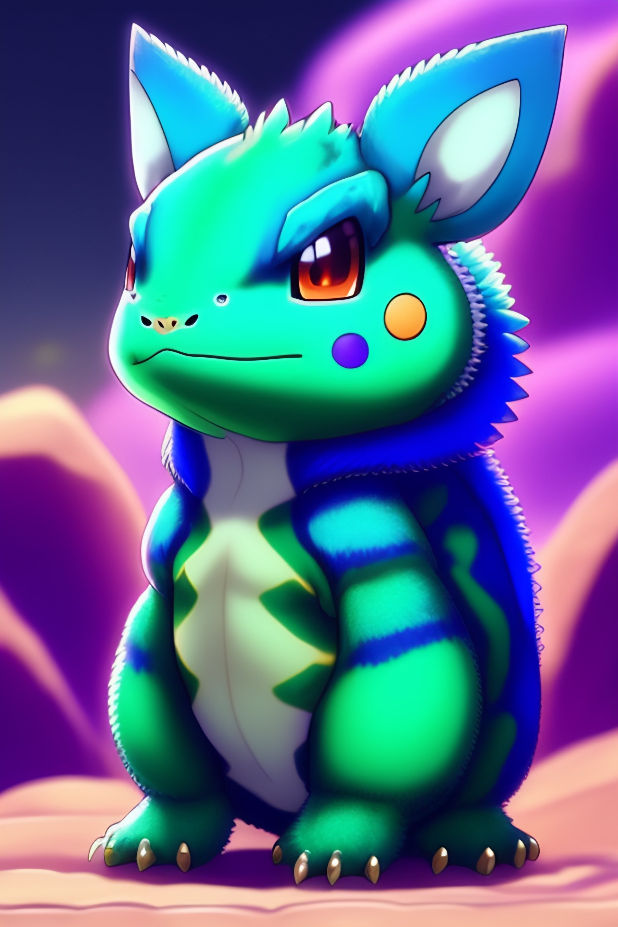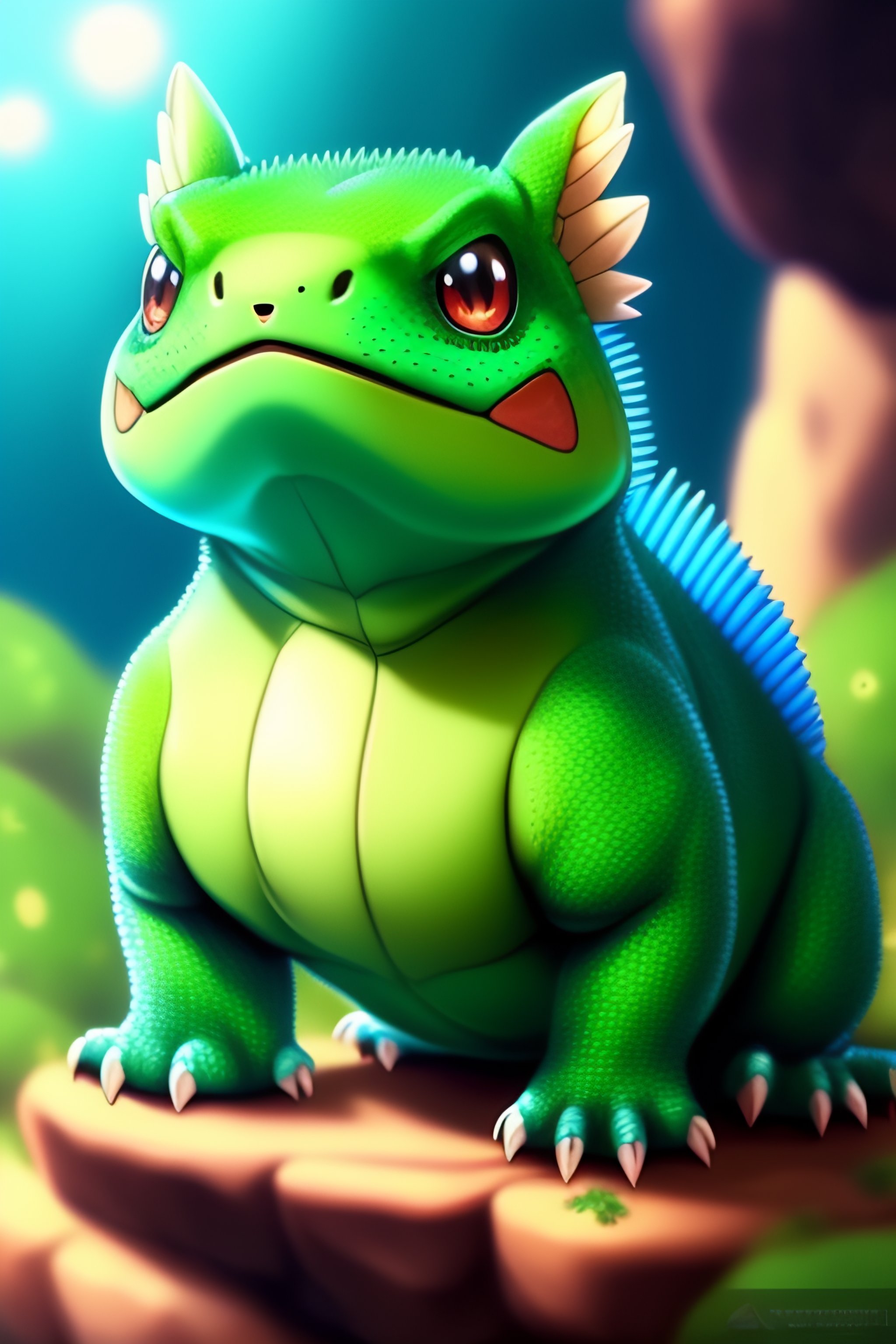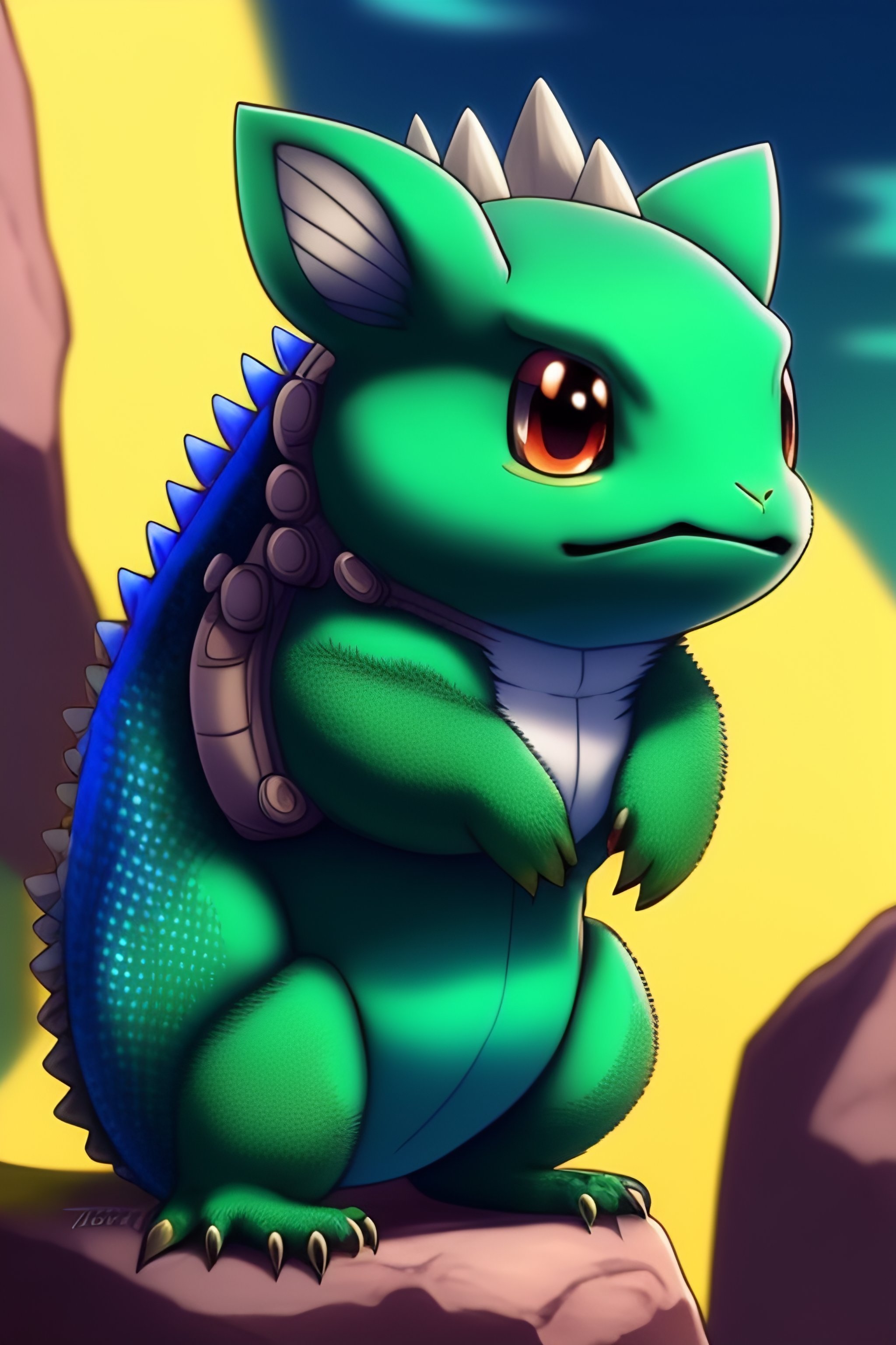 A cute rock type pokemon that resembles a uromastyx and bearded dragon mix in the art of award winning anime pokemon with cute green and blue on cheeks