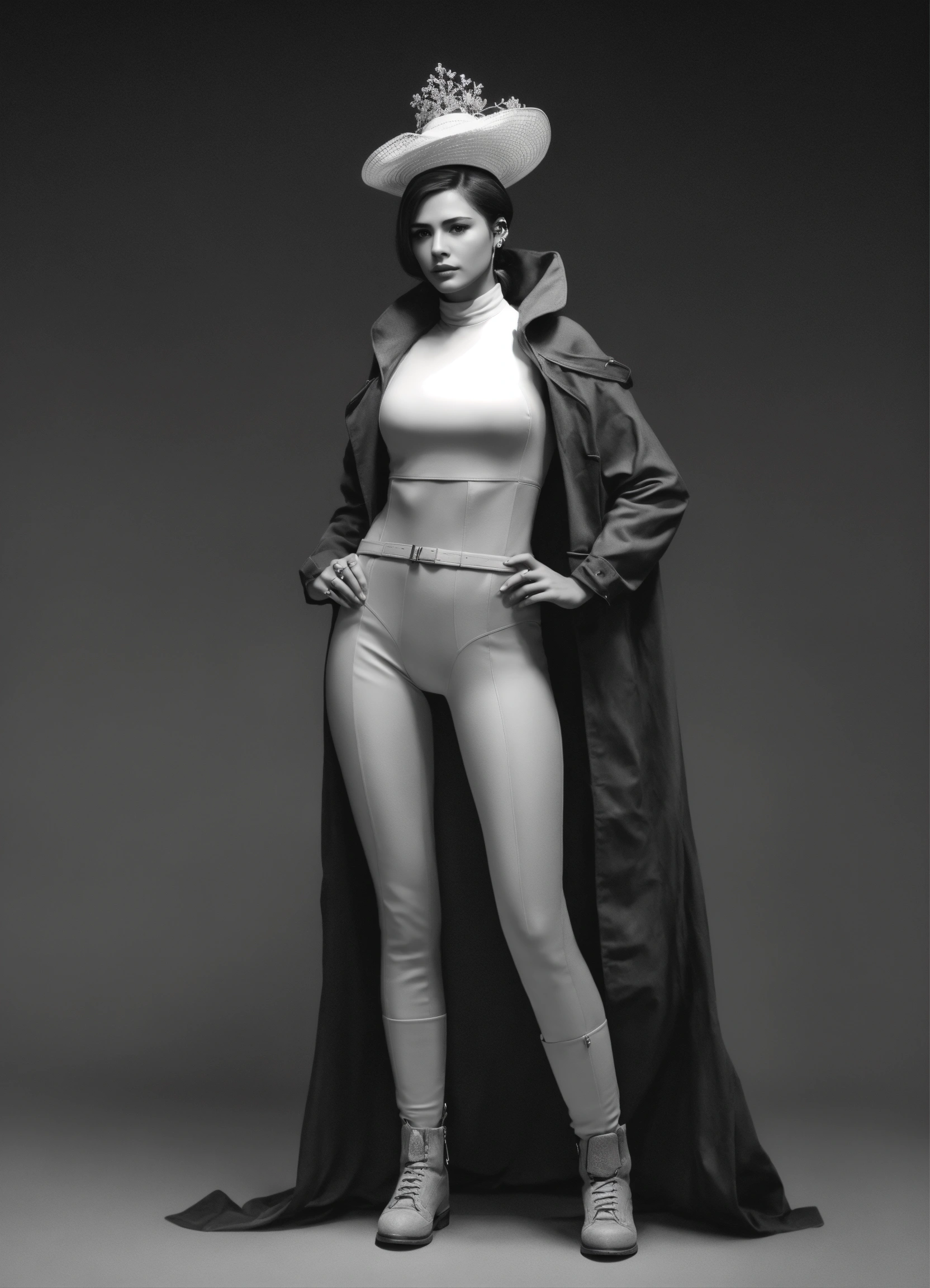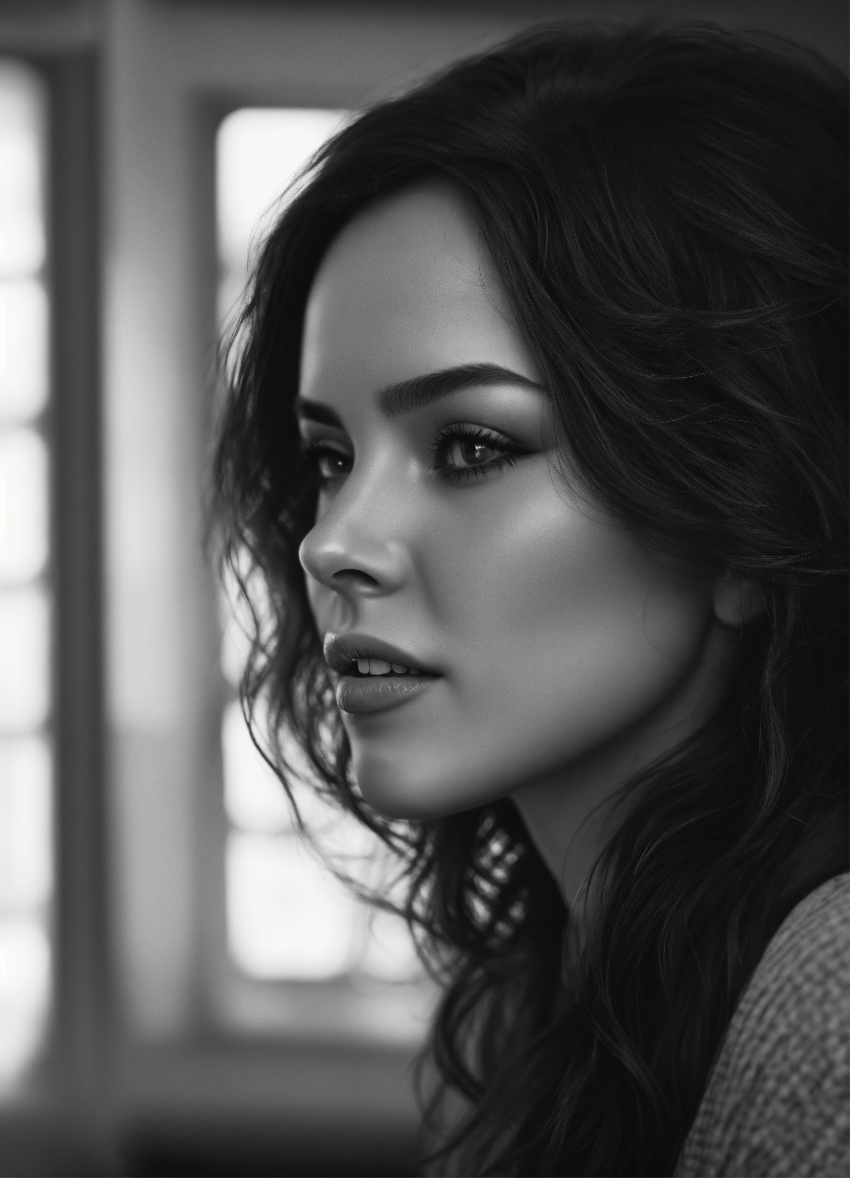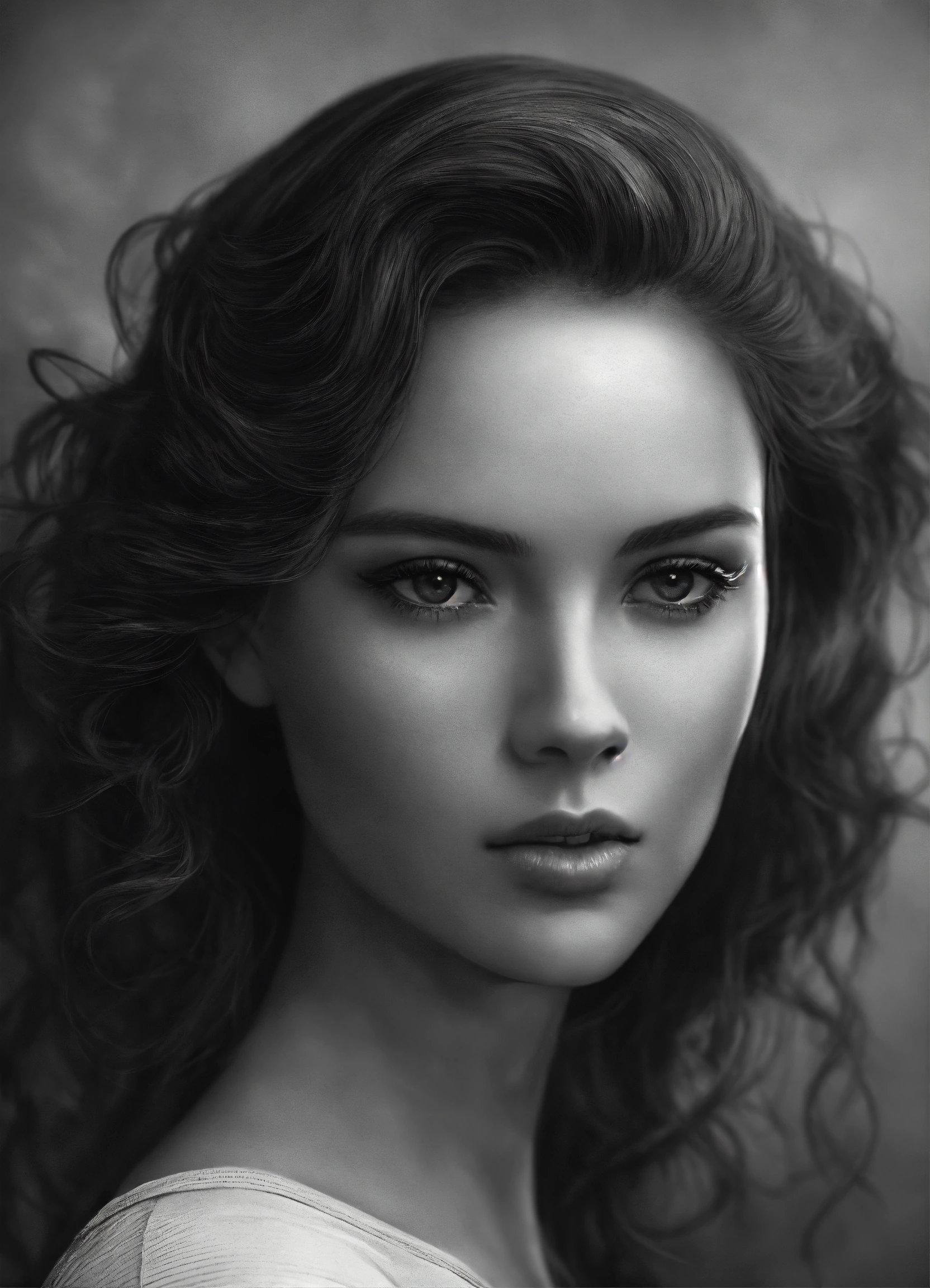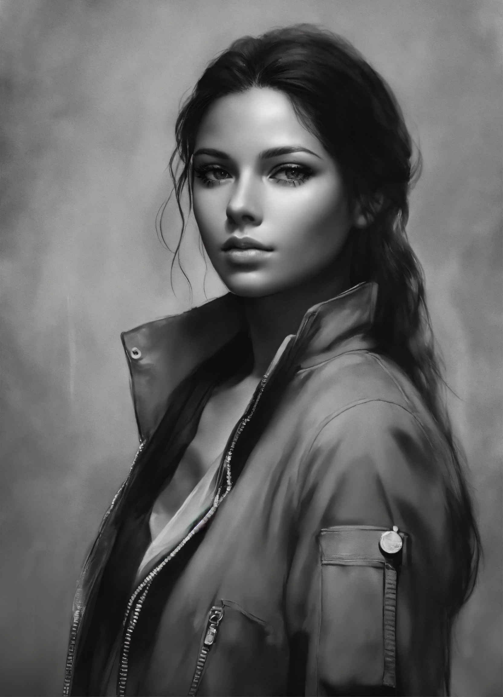 Black and white image of a realistic woman character but vertical