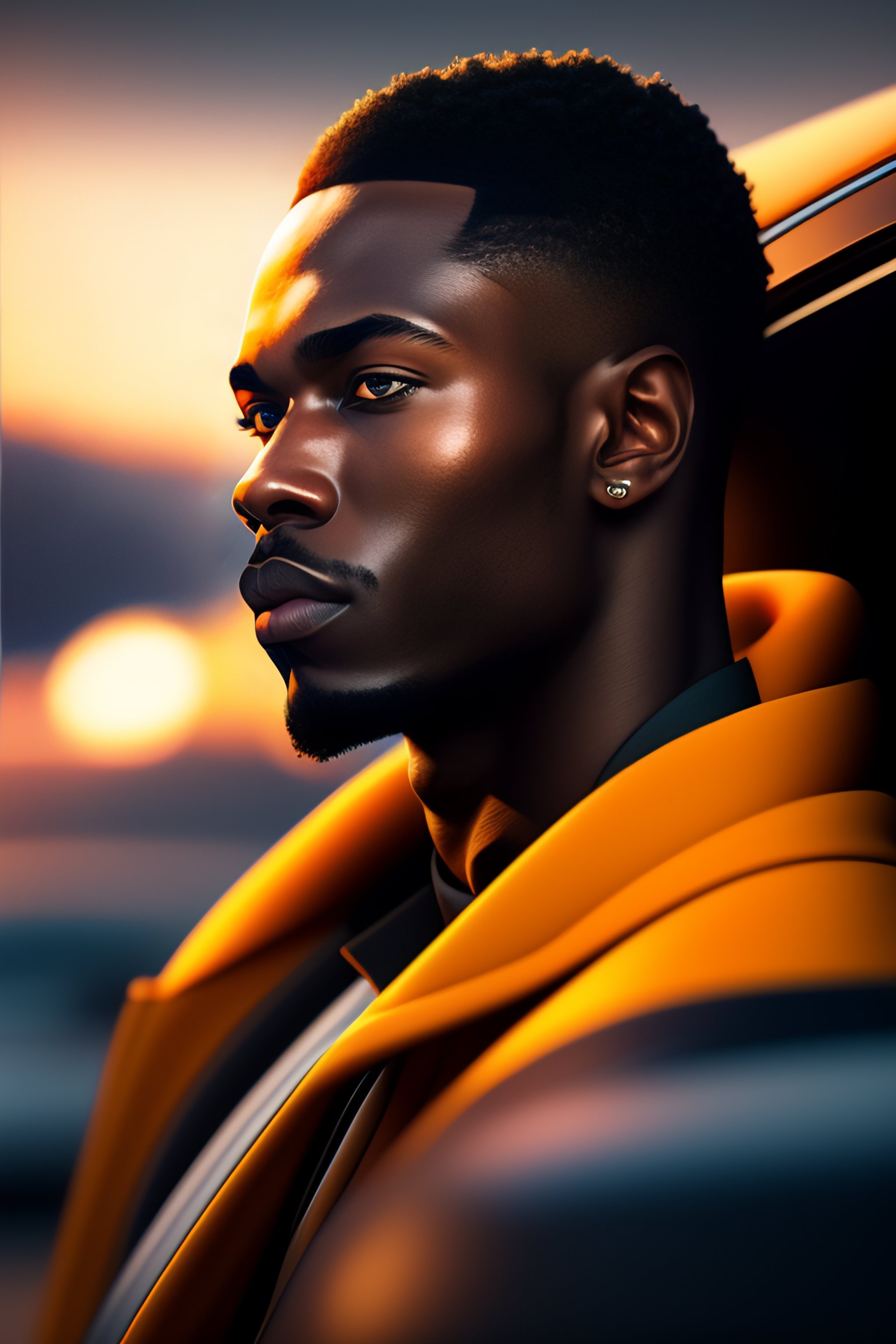 Professional portrait of young black man with waves holding a car, regular show, by artgerm and moebius, beautiful, hyperrealism, highly detailed, 8k, intricate, closeup, dynamic dramatic dark moody lighting, shadows, artstation, concept art, octane render, 8k