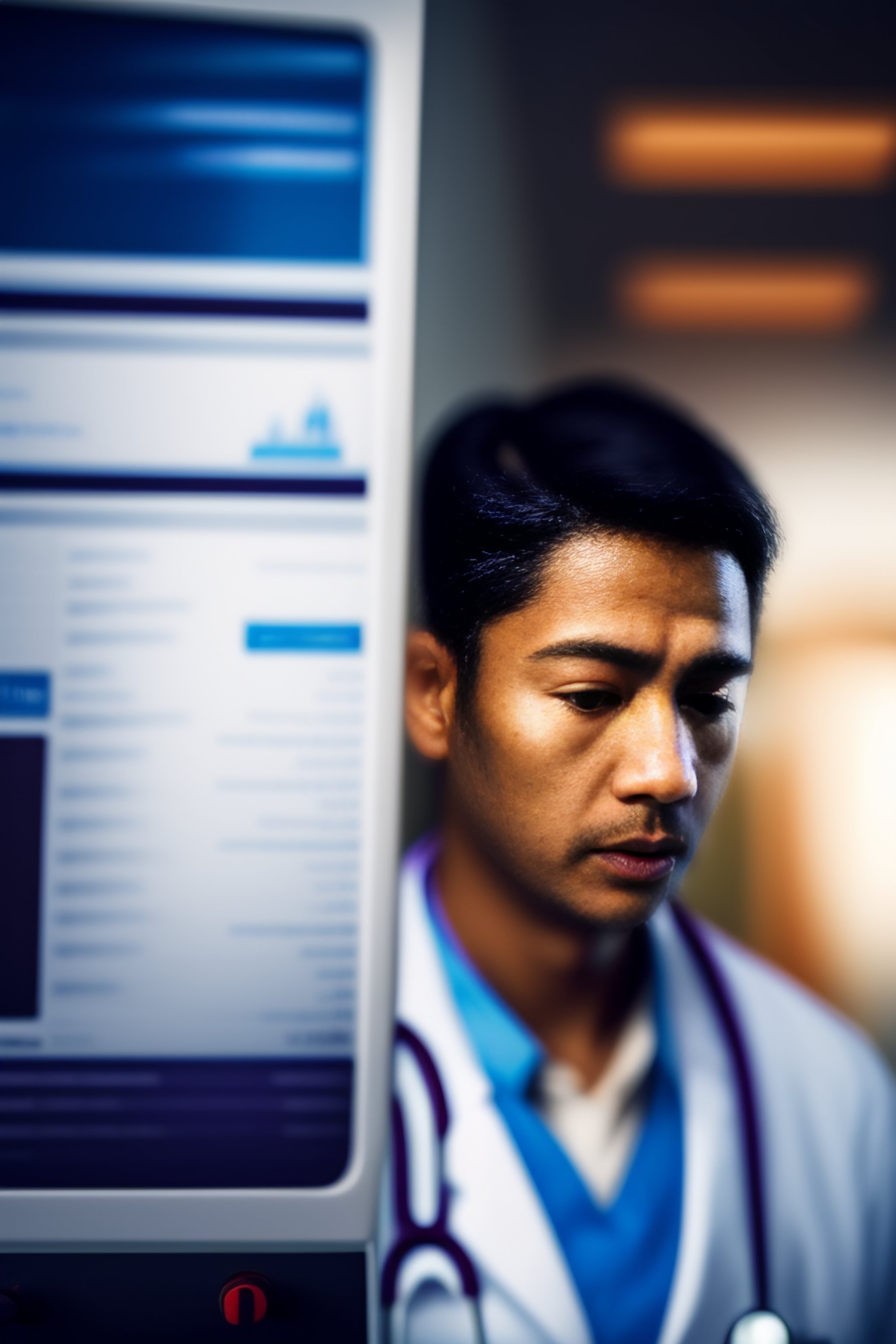 Desperate tired face doctor overwhelmed in the medical center