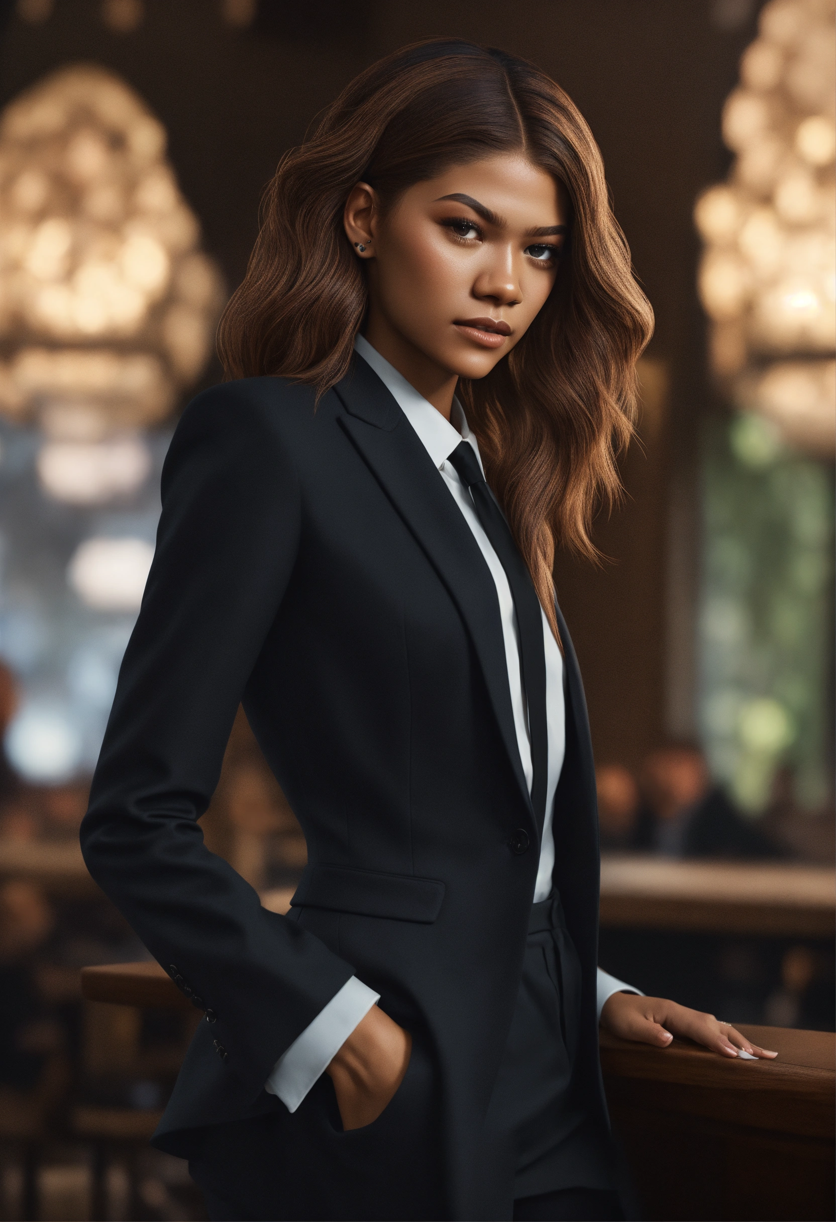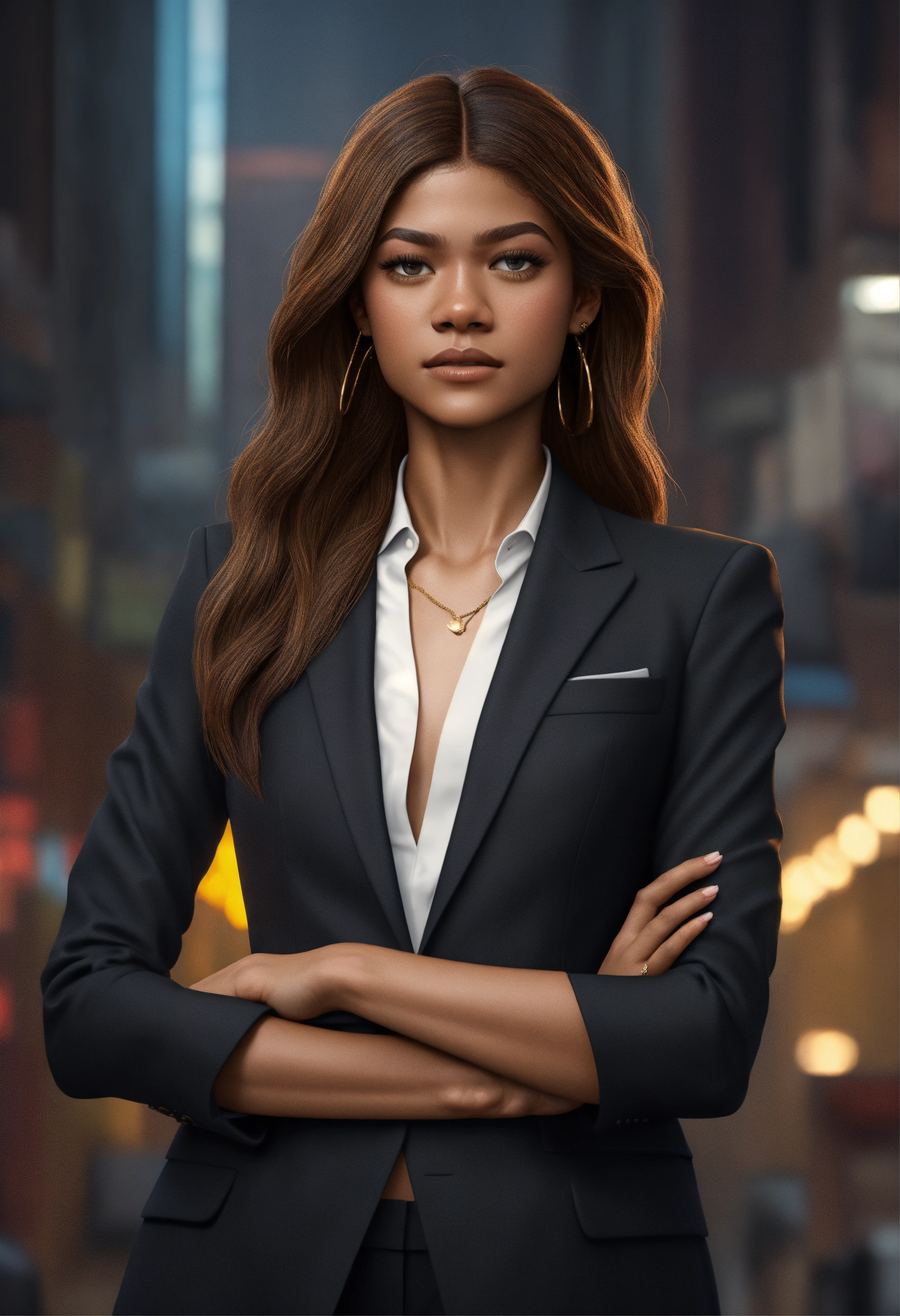 Full body portrait, zendaya, straight hair, black business suit, 8k resolution concept art by greg rutkowski, hyperdetailed, intricately detailed, unreal engine, hyperrealism, depth of field, photorealism, digital art, photorealistic