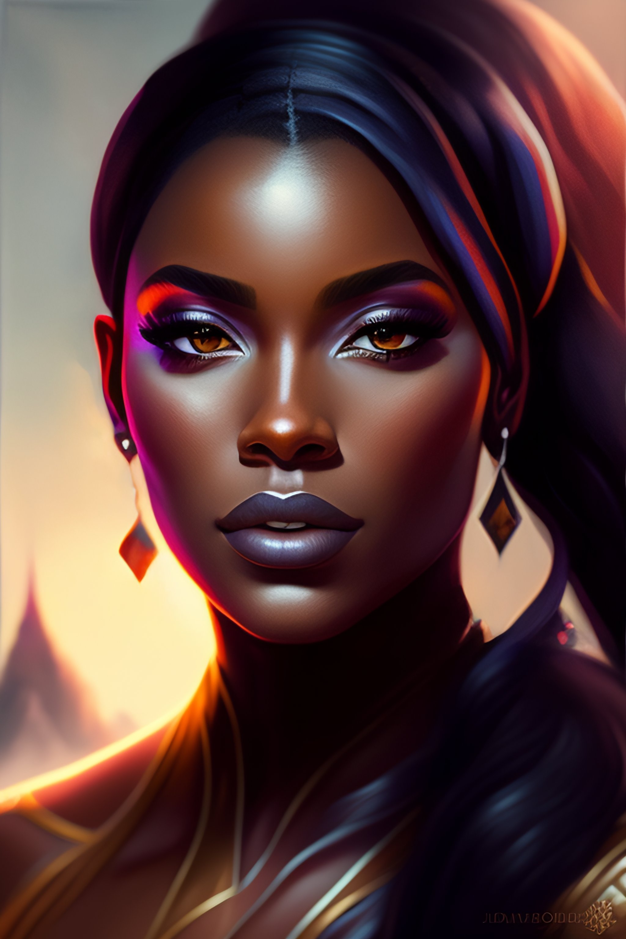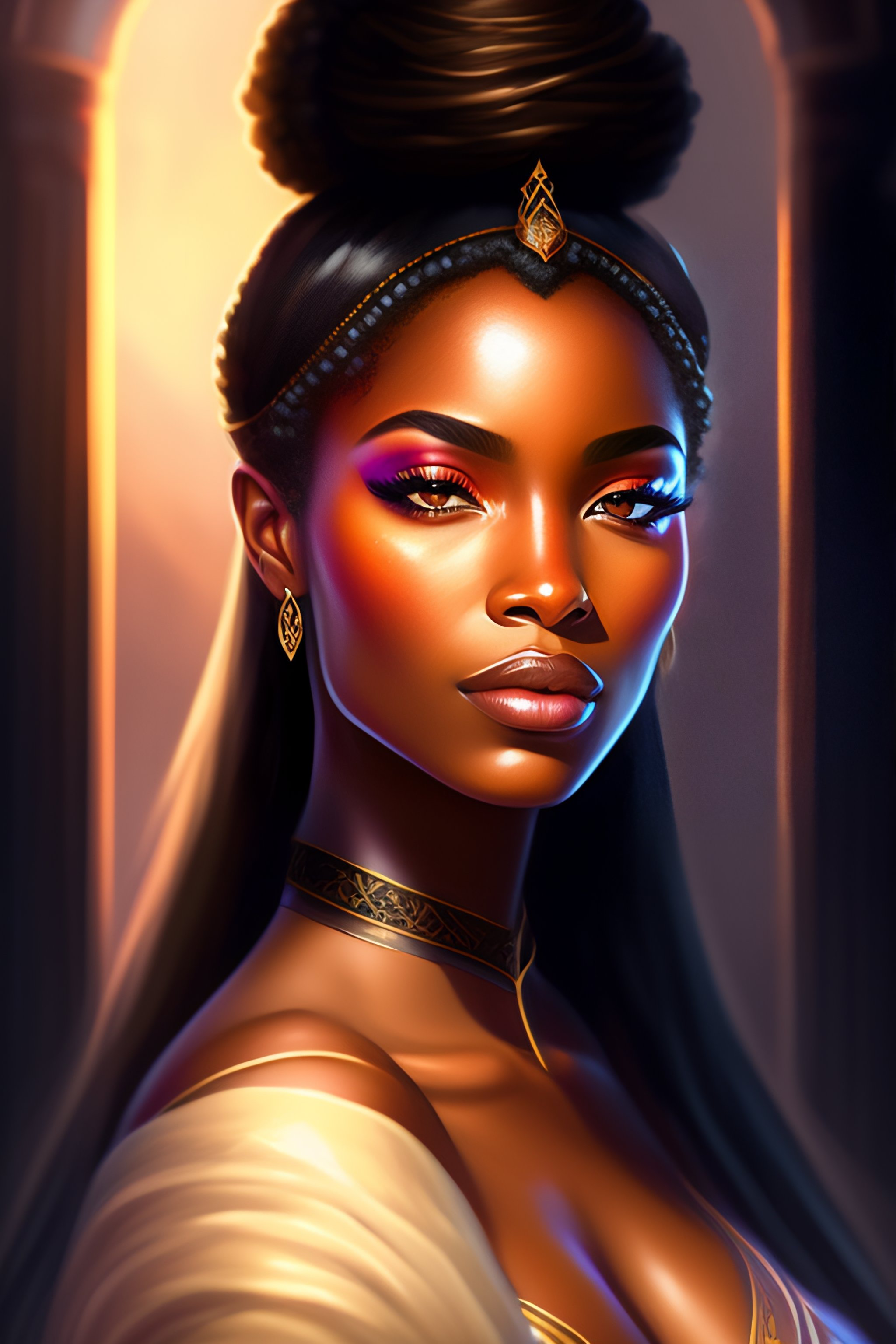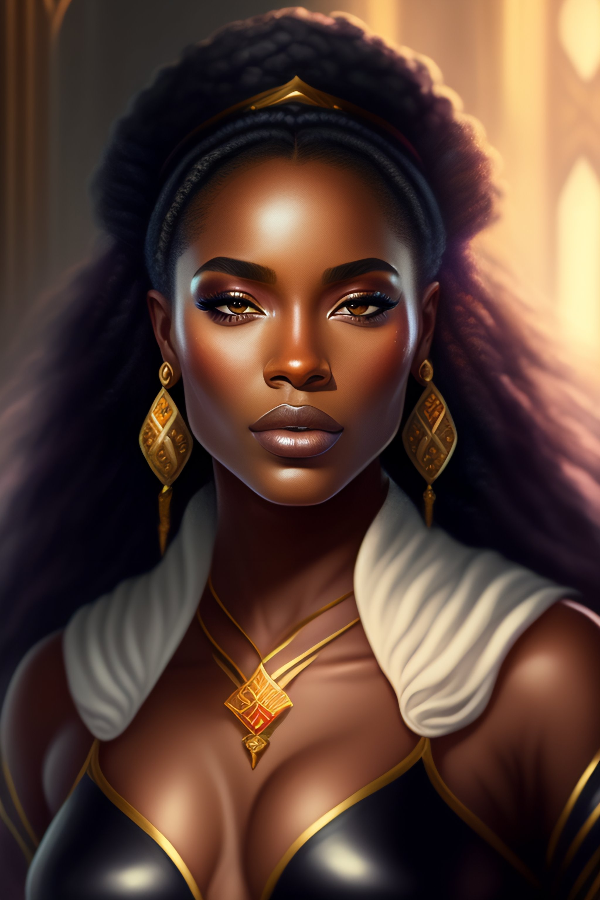 Fantasy portrait, beautiful black woman, meditating peacefully, eyes opened, custom character art, dnd illustration, dnd art, digital drawing, character drawing
