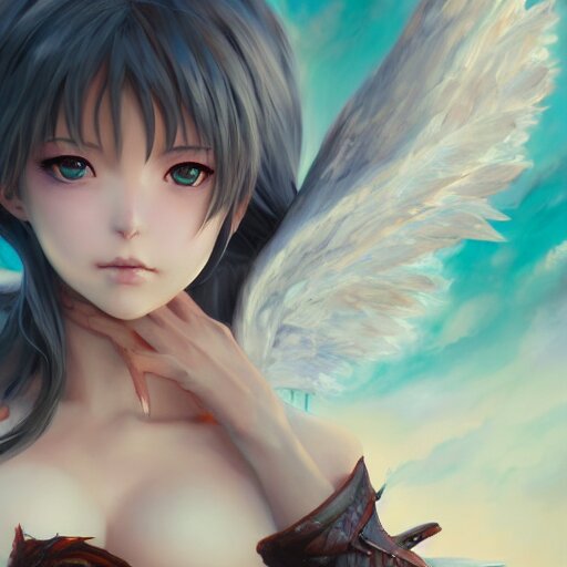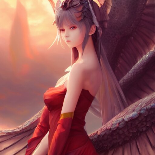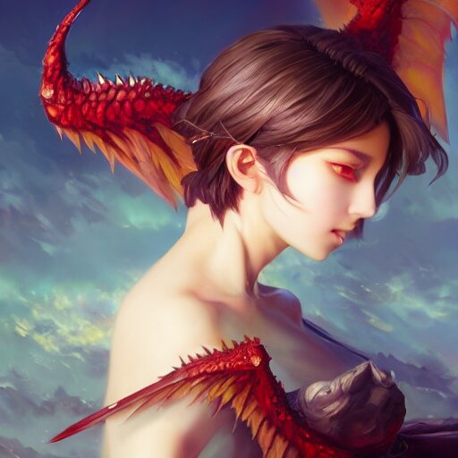 An oil painting of a beautiful anime girl with dragon wings, by artgerm, wlop and greg rutkowski, hd, hdr, ue 5, ue 6, unreal engine 5, cinematic 4 k wallpaper, 8 k, ultra detailed, high resolution, artstation, award winning
