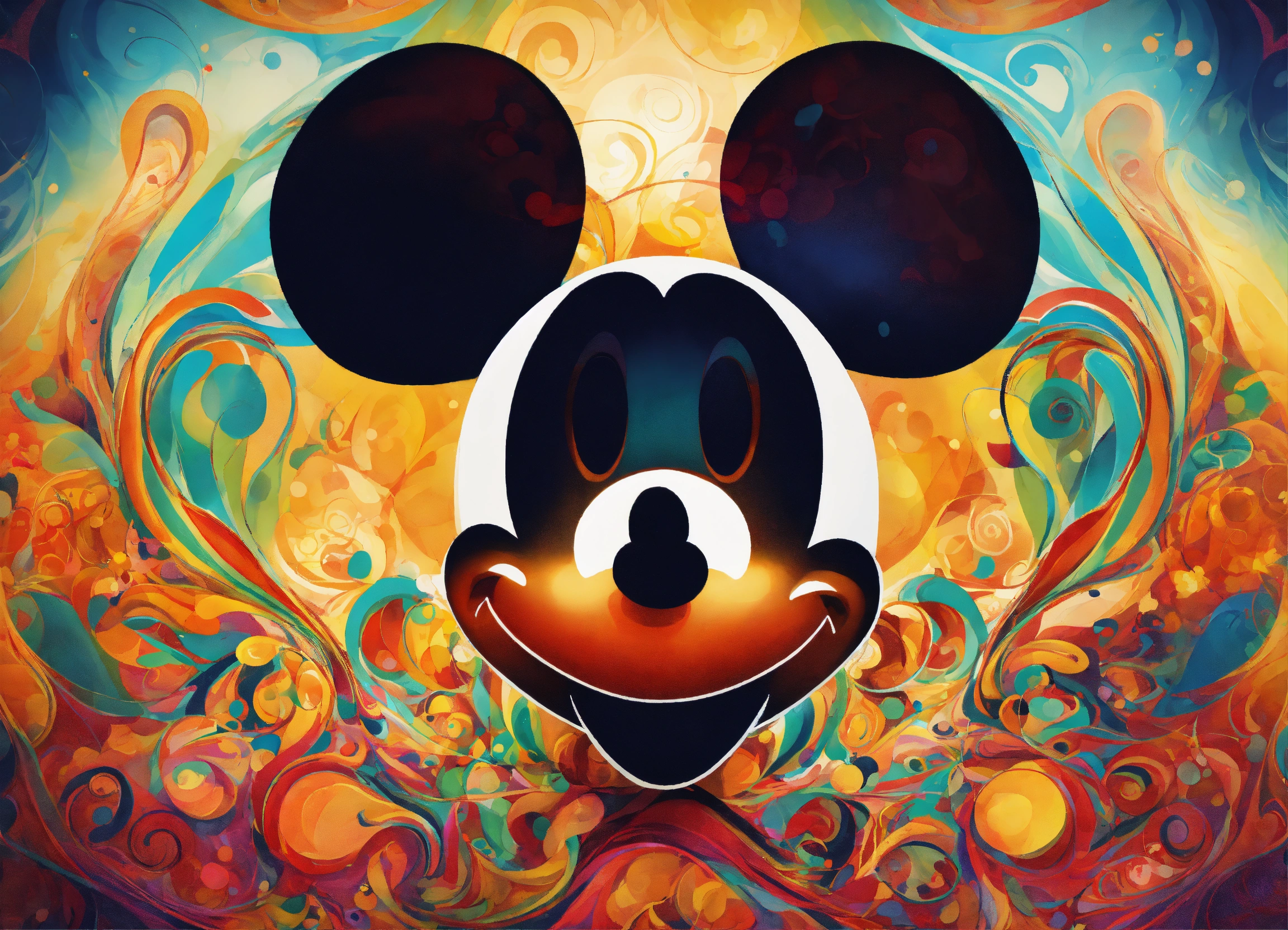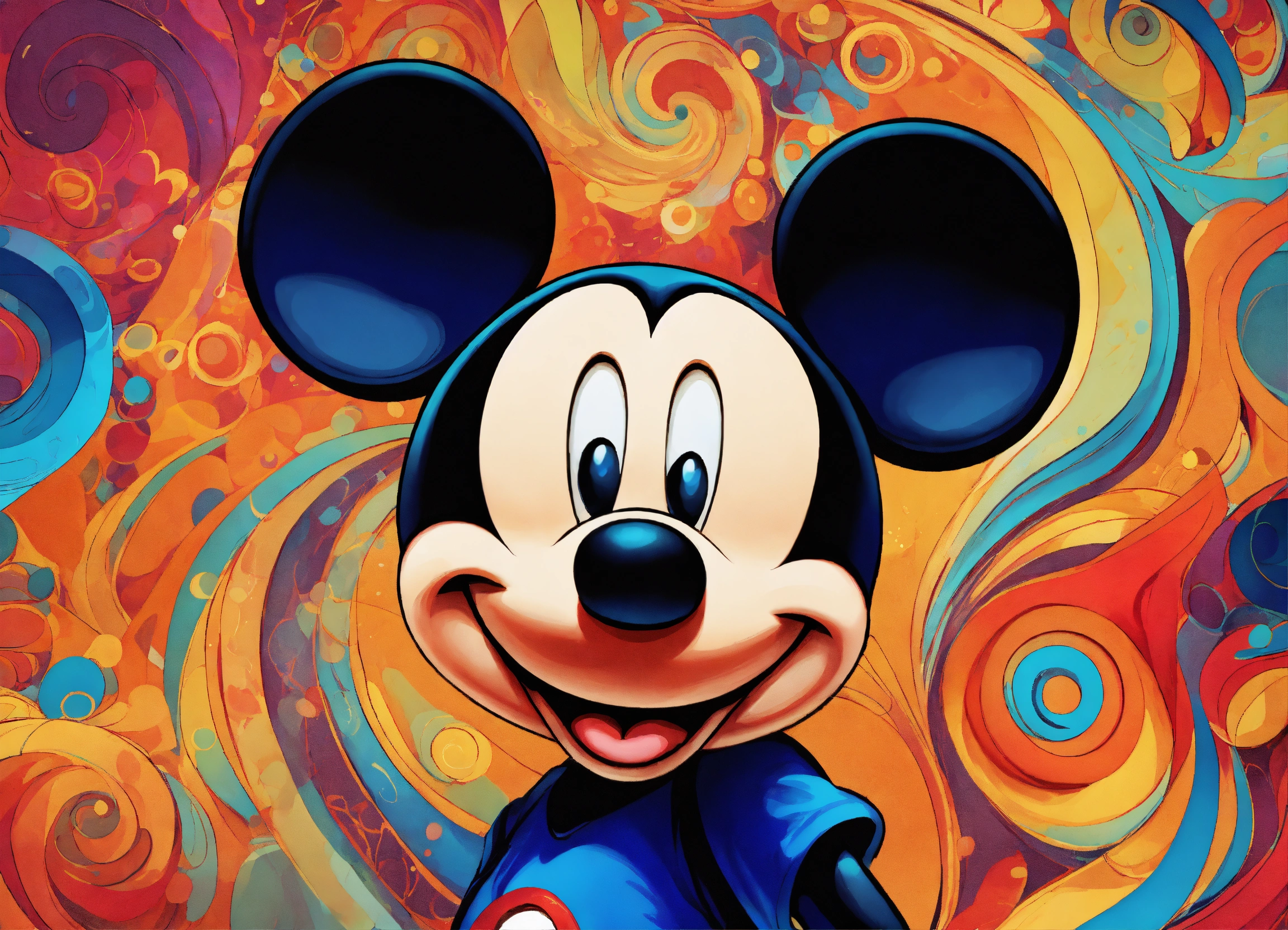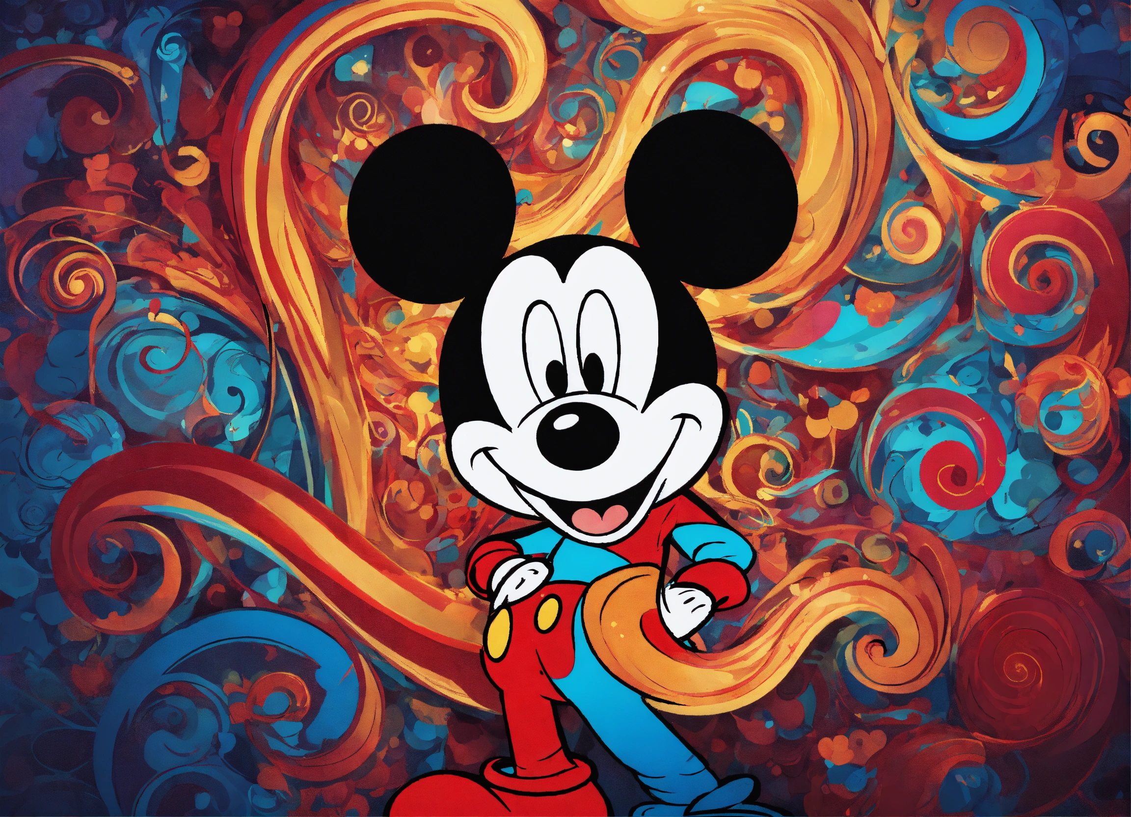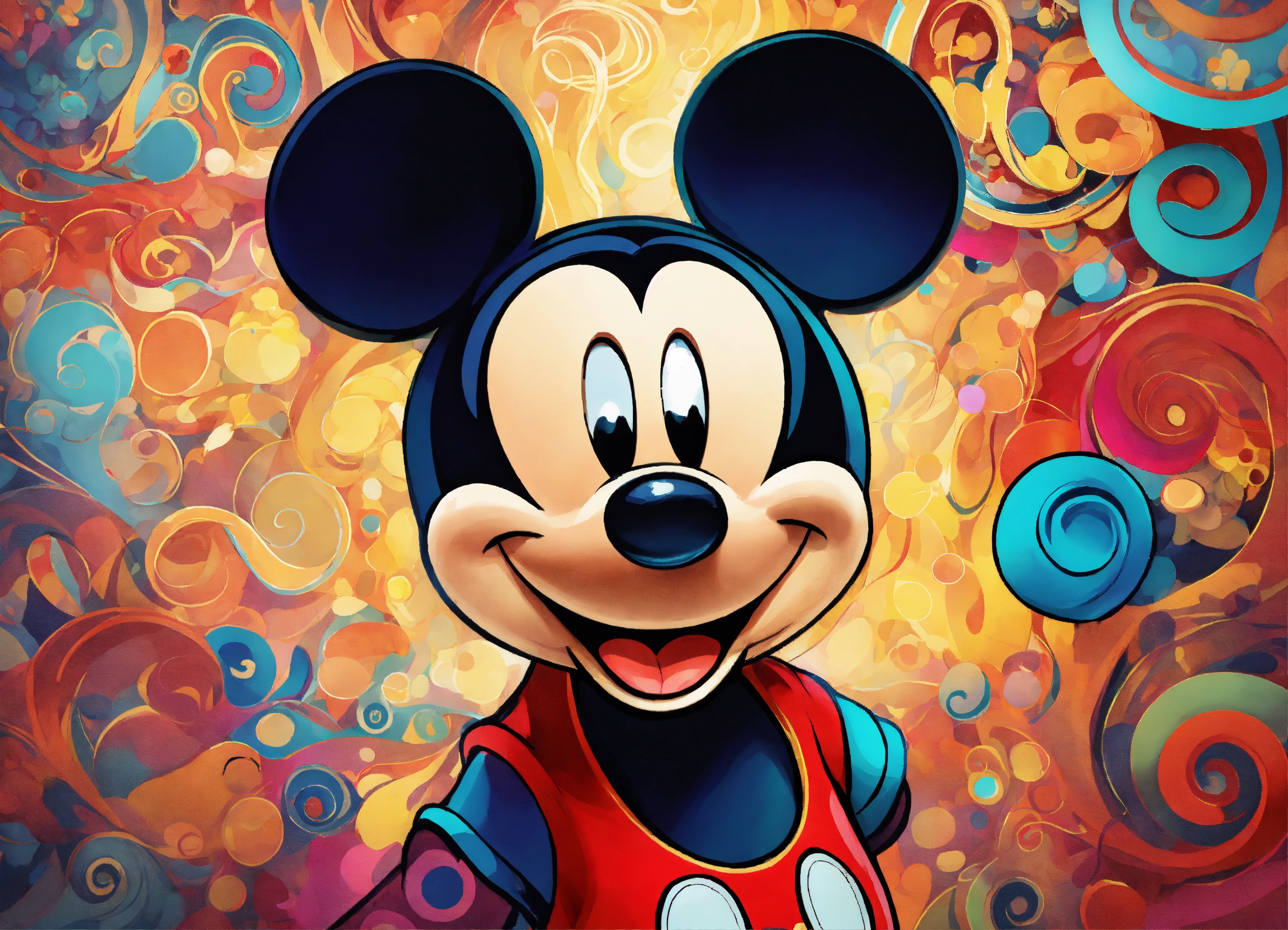 Lovable mickey mouse with abstract swirls