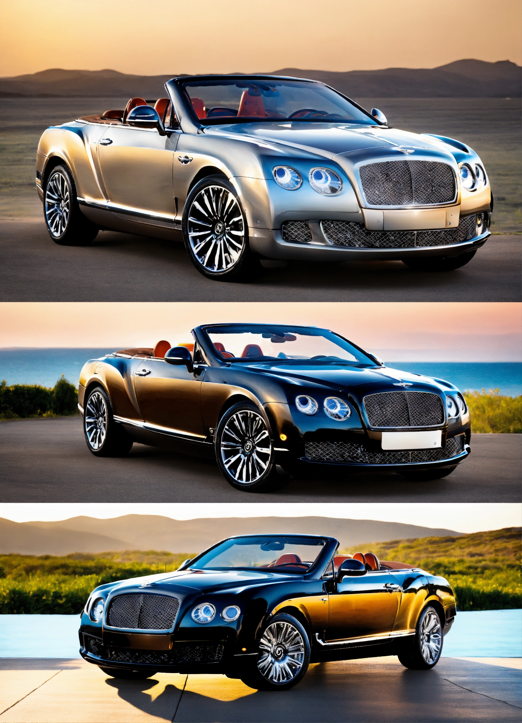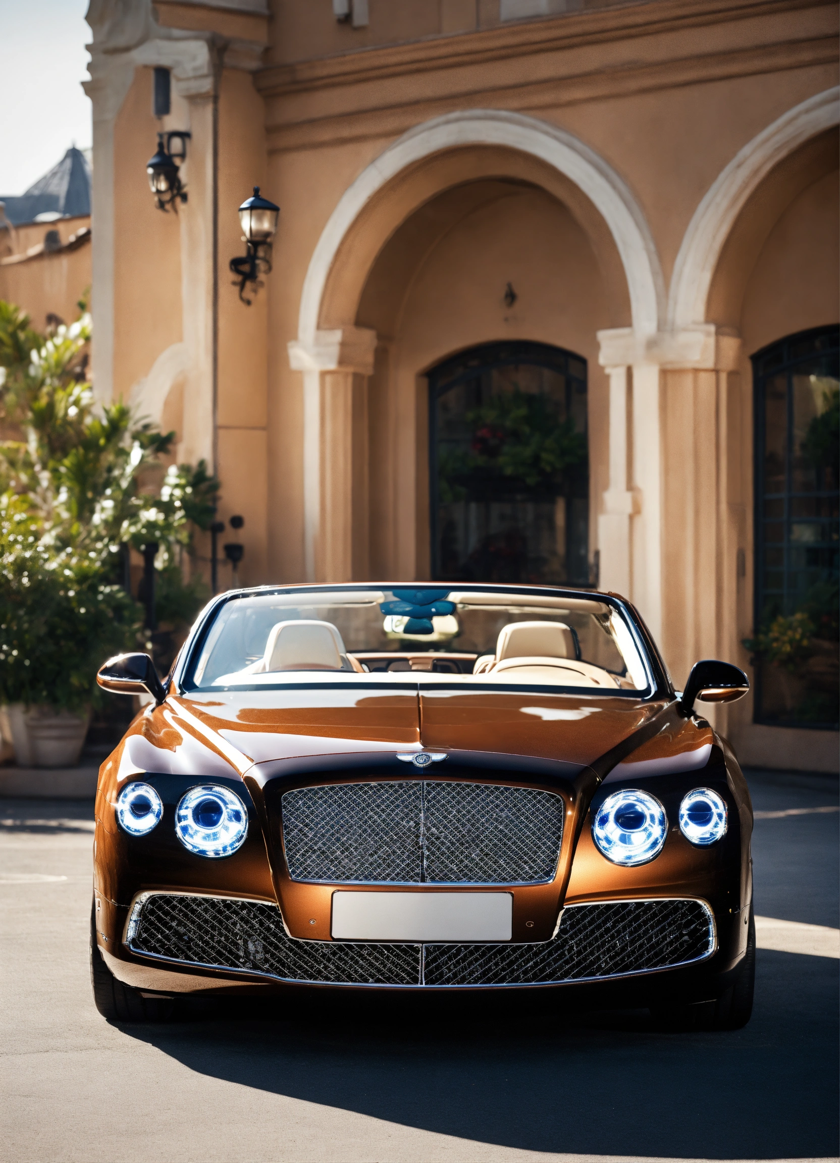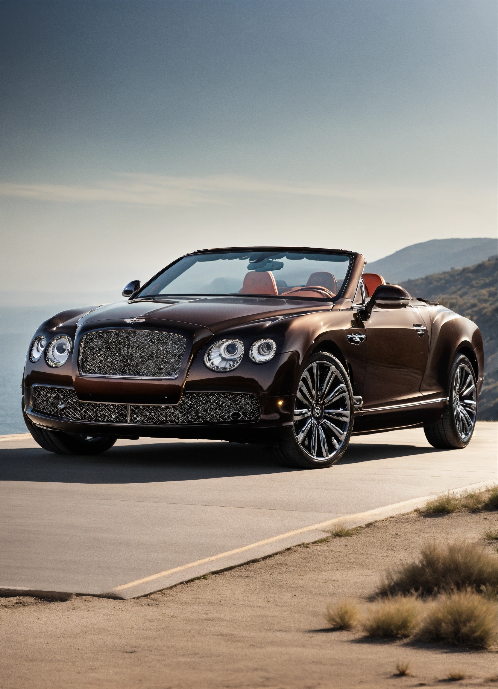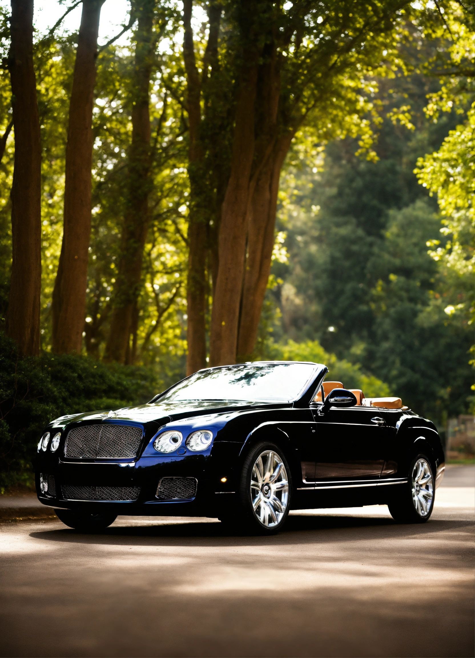 Create a picture of a black convertible bently with brown interior