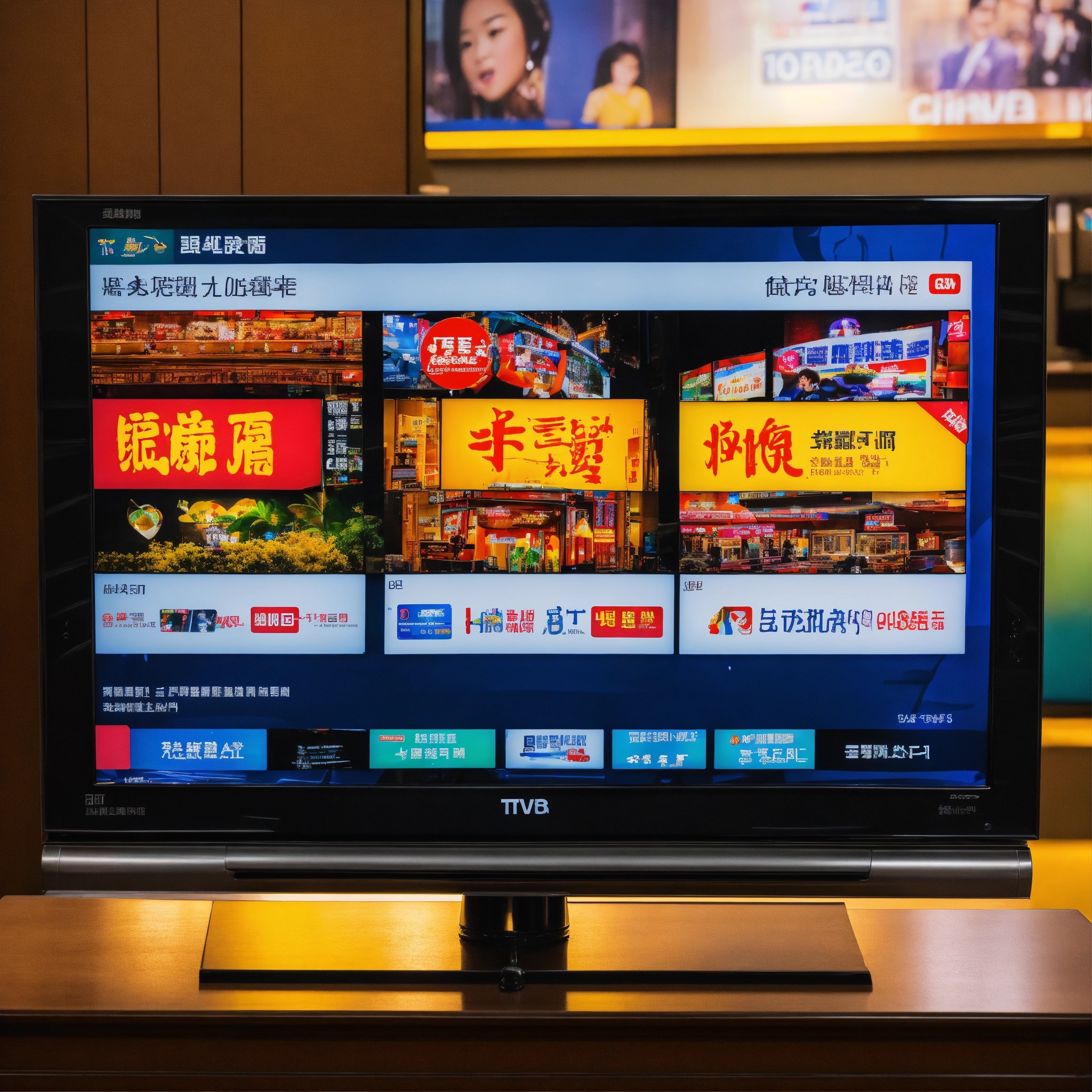 A photo of a television set with the tvb anywhere channel playing on the screen. the channel is showing a variety of programs, including news, movies, and sports.