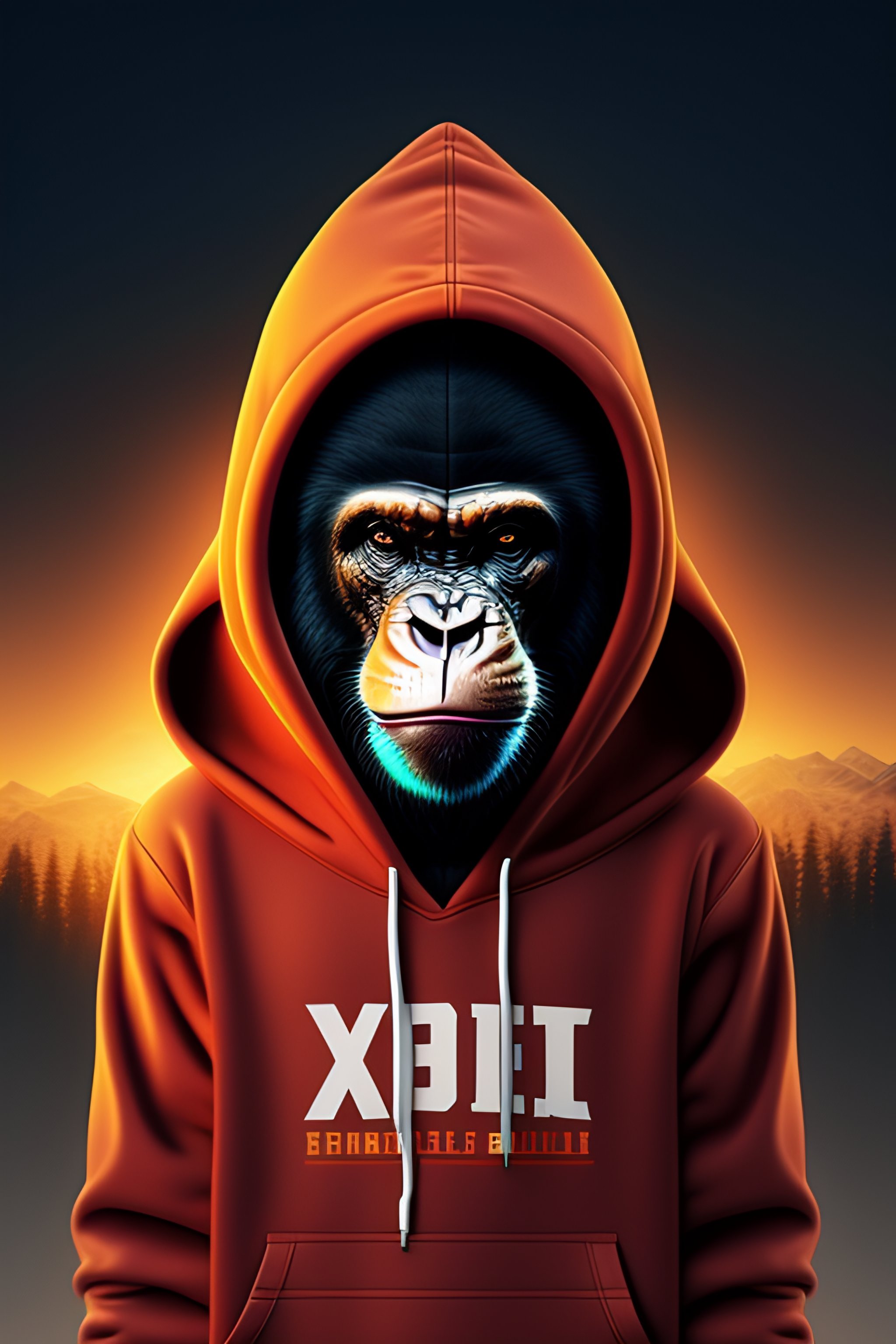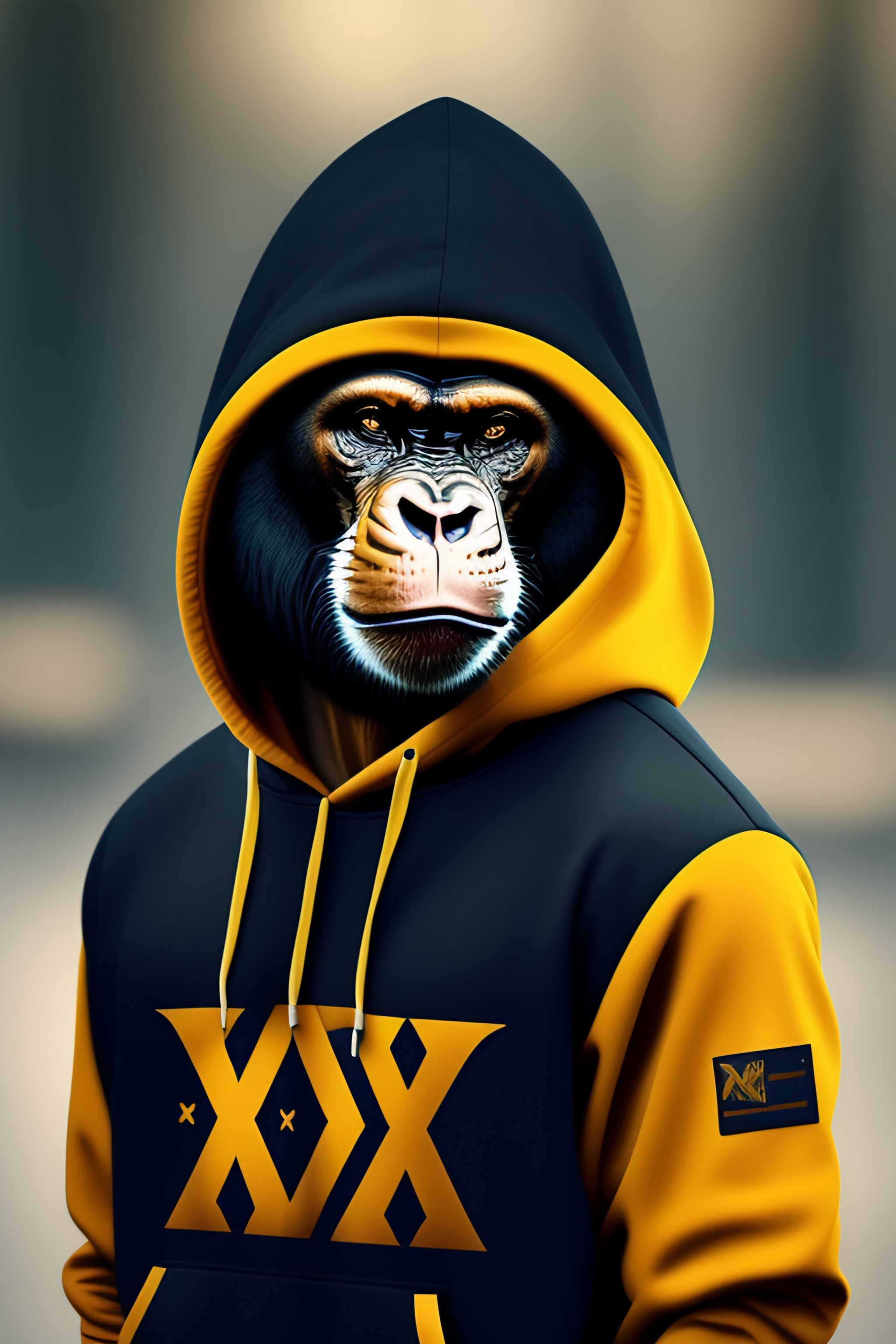 Bored ape wearing a hoody and cap with x logo
