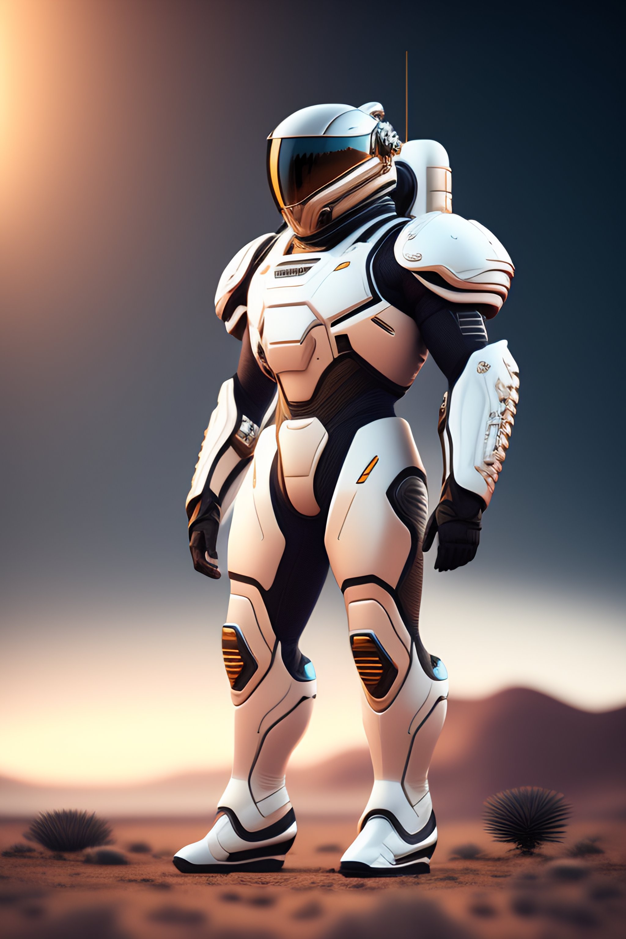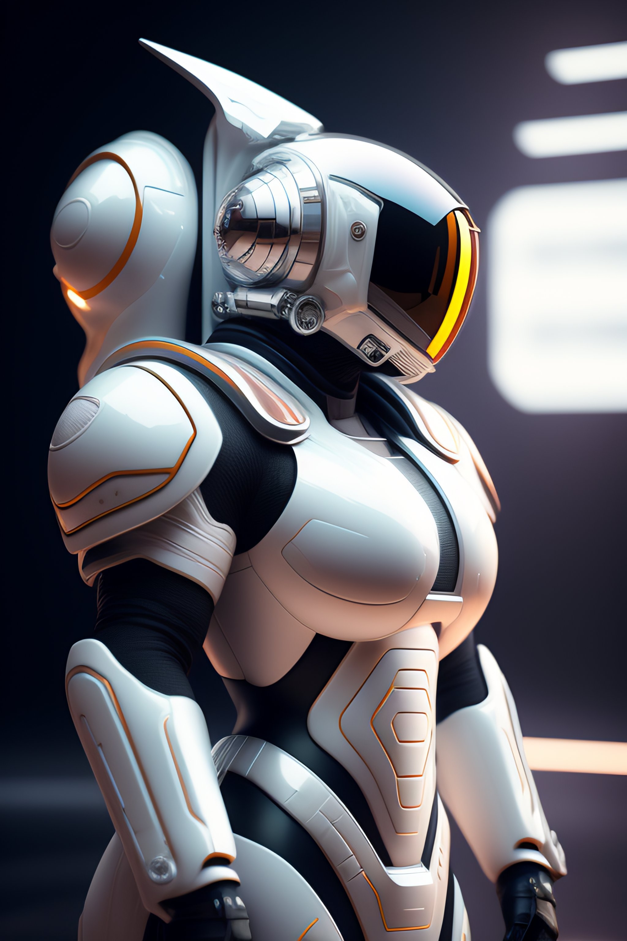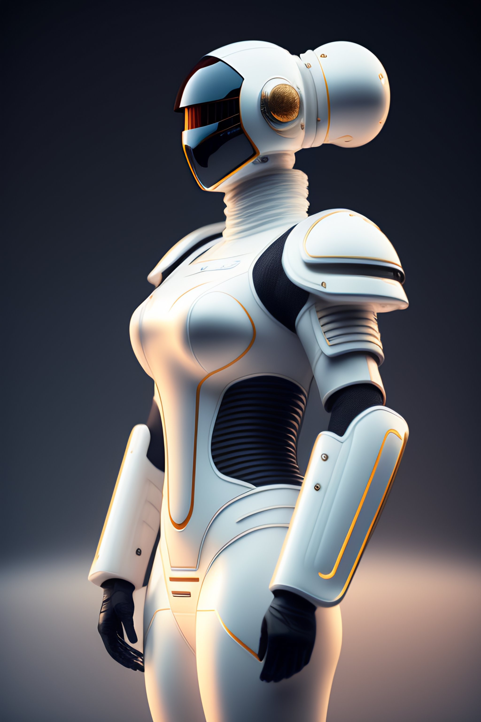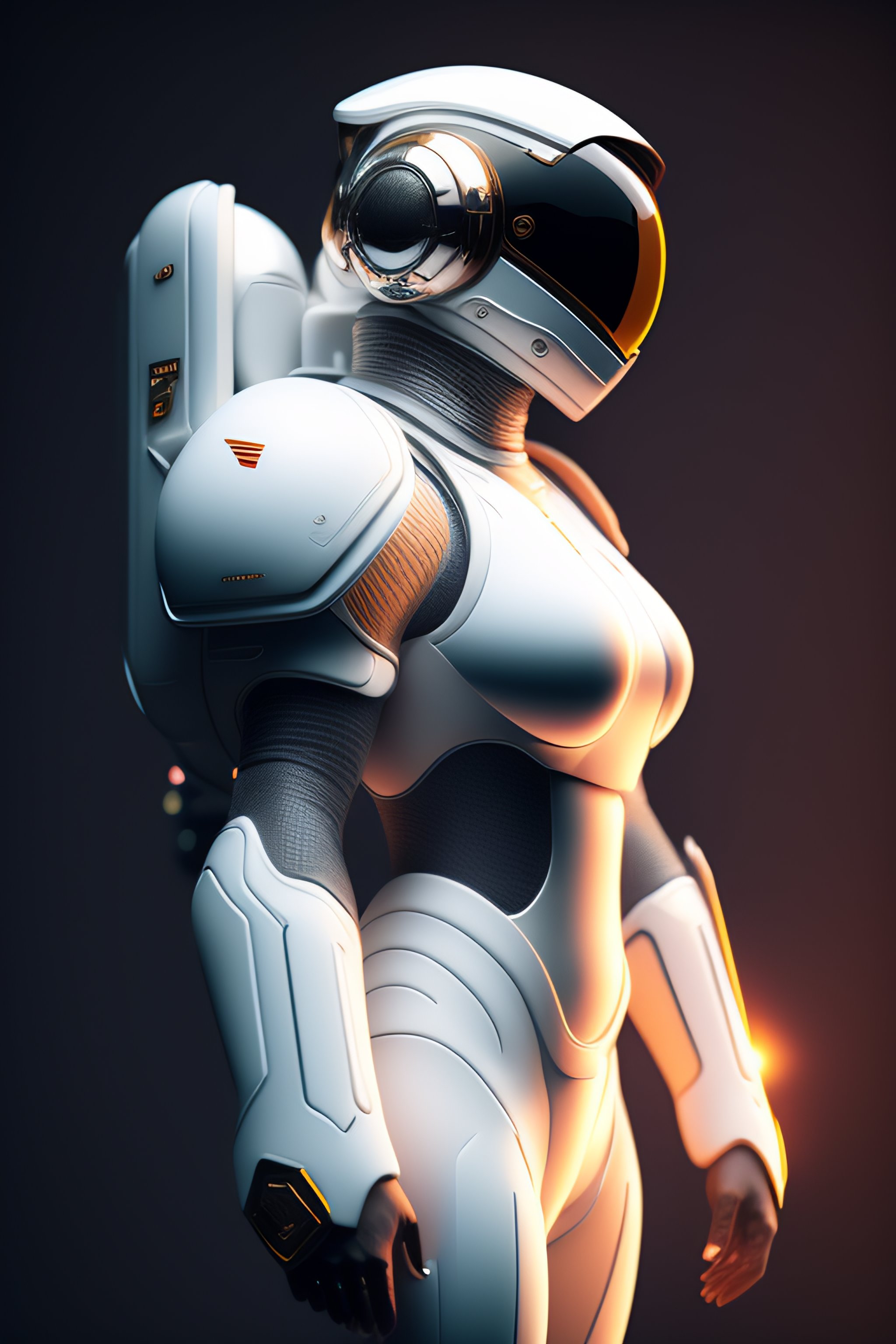 Side view futuristic exospacesuit, from top to bottom, a photorealistic dramatic hyperrealistic render of a futuristic exospacesuit, ultra realistic details, glossy white, weathered surfaces, by vitaly bulgarov and mike nash, beautiful dramatic dark moody tones and lighting, cinematic atmosphere, studio lighting, shadows, dark background, octane render, 8k