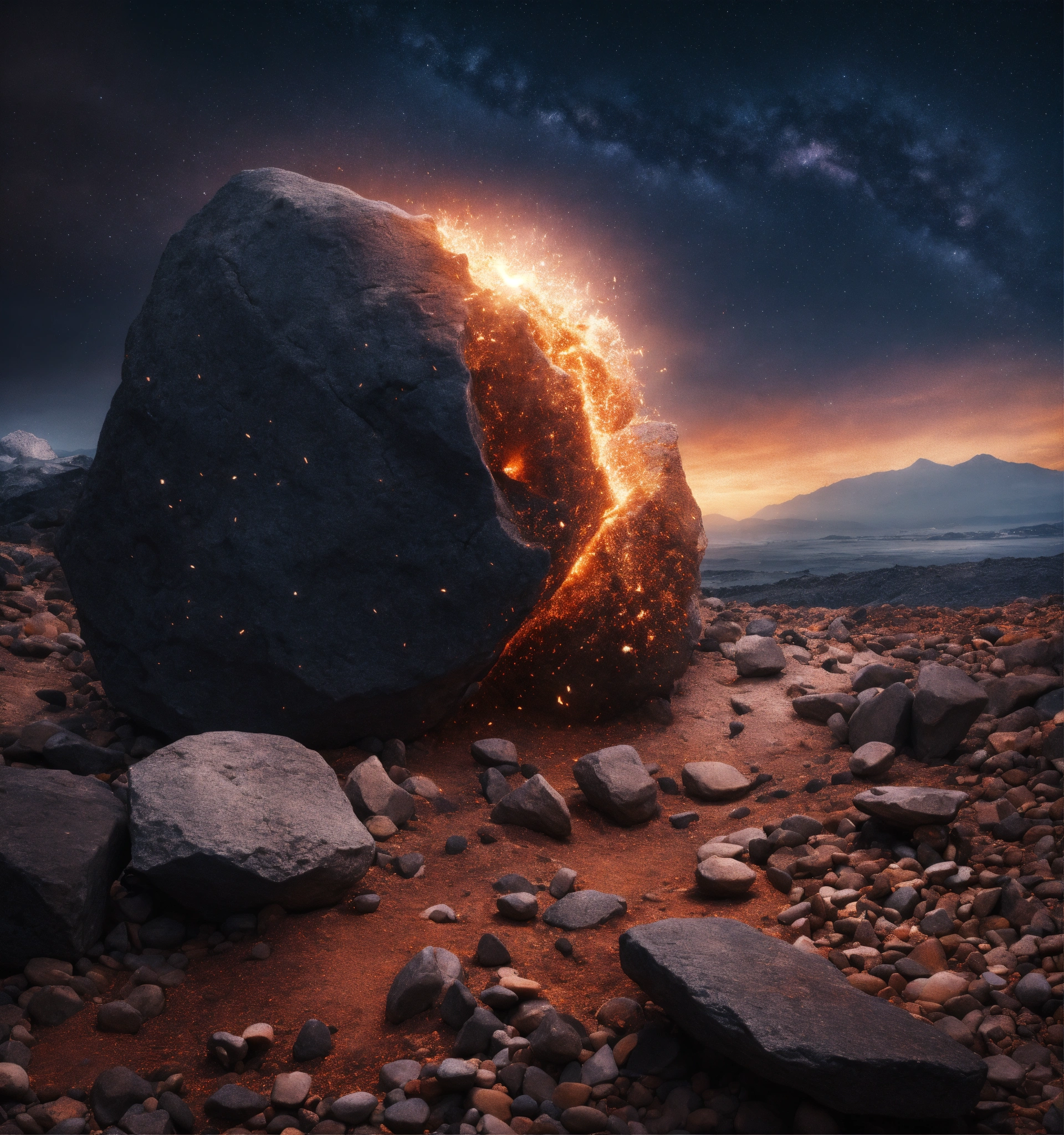 Rocks pulverized and breaking apart into eternity