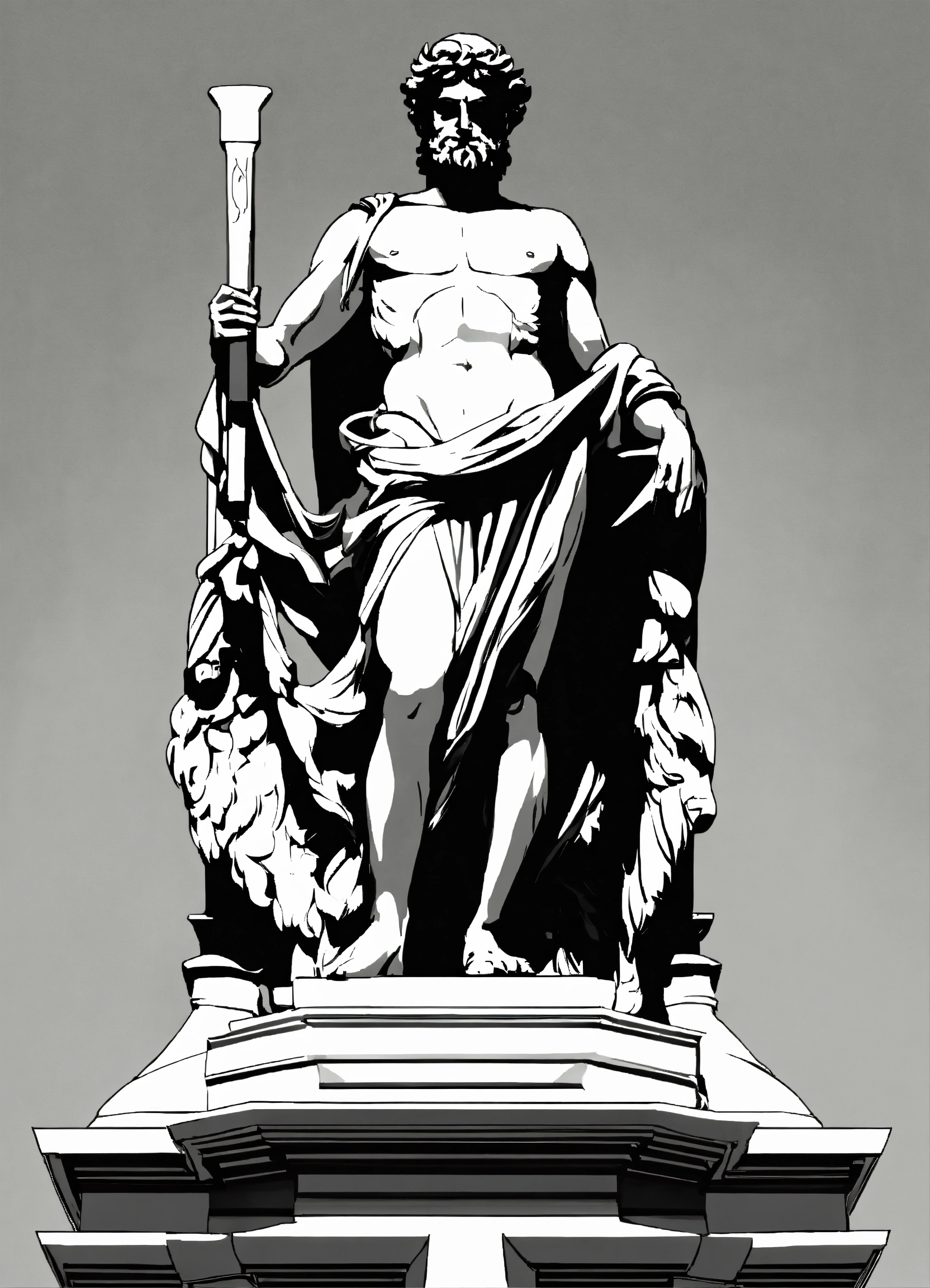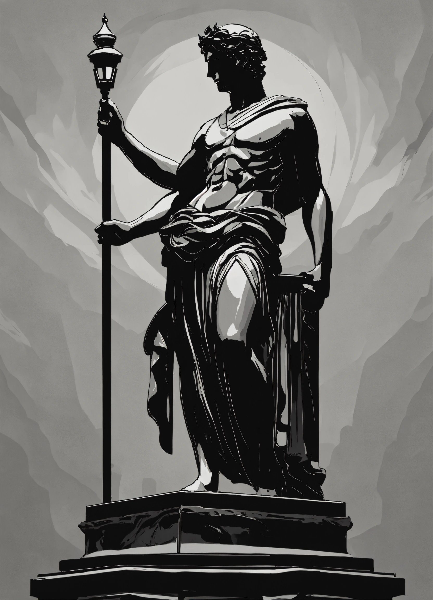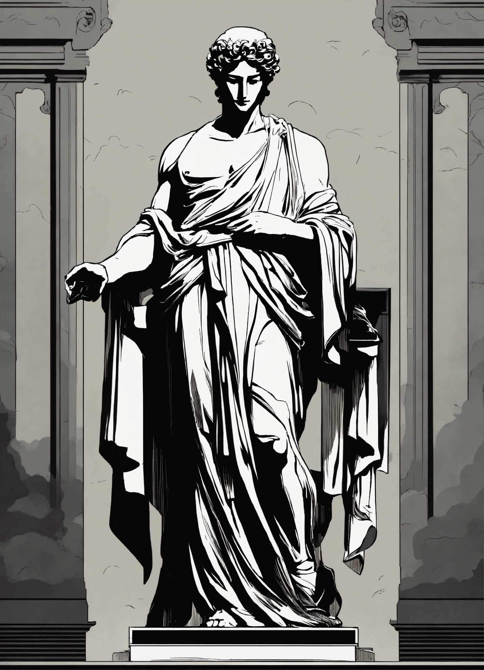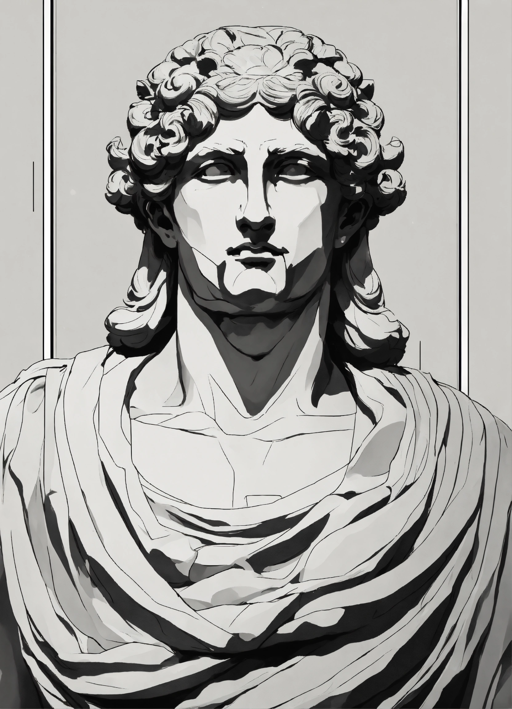 A minimalistisch icon from a greek god statue in black and white with no backround anime style