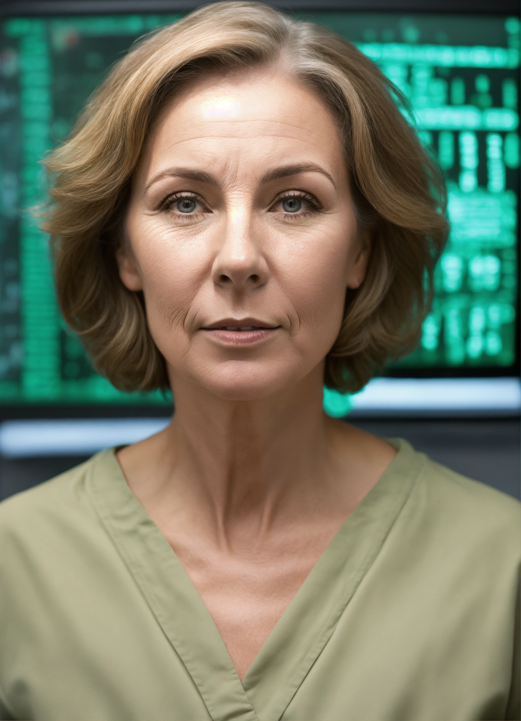 Please take a photo for me in 3d, hd, of a 55-year-old caucasian american woman, in a ginecologic position, during a medical exam