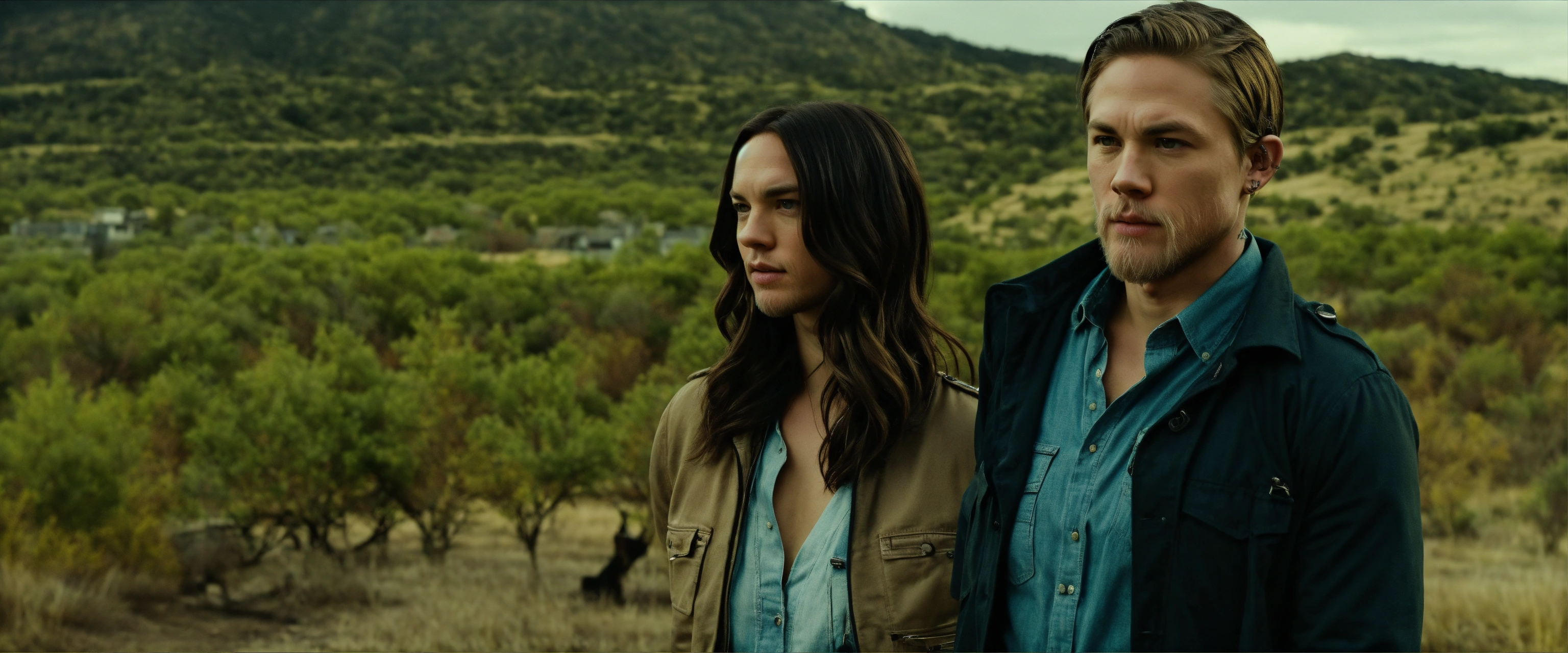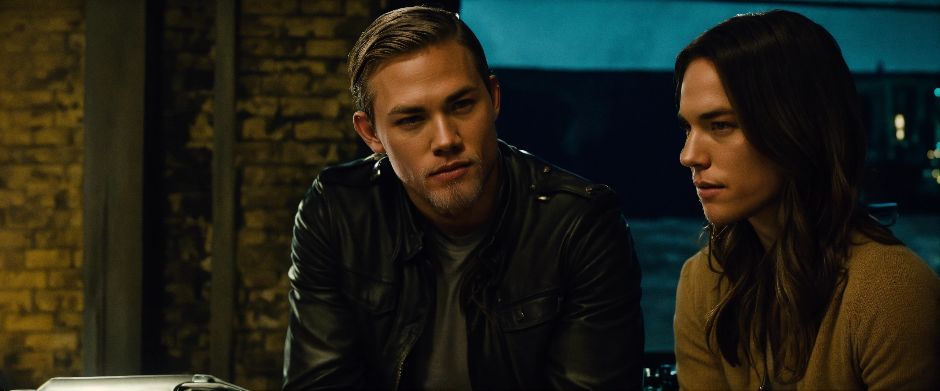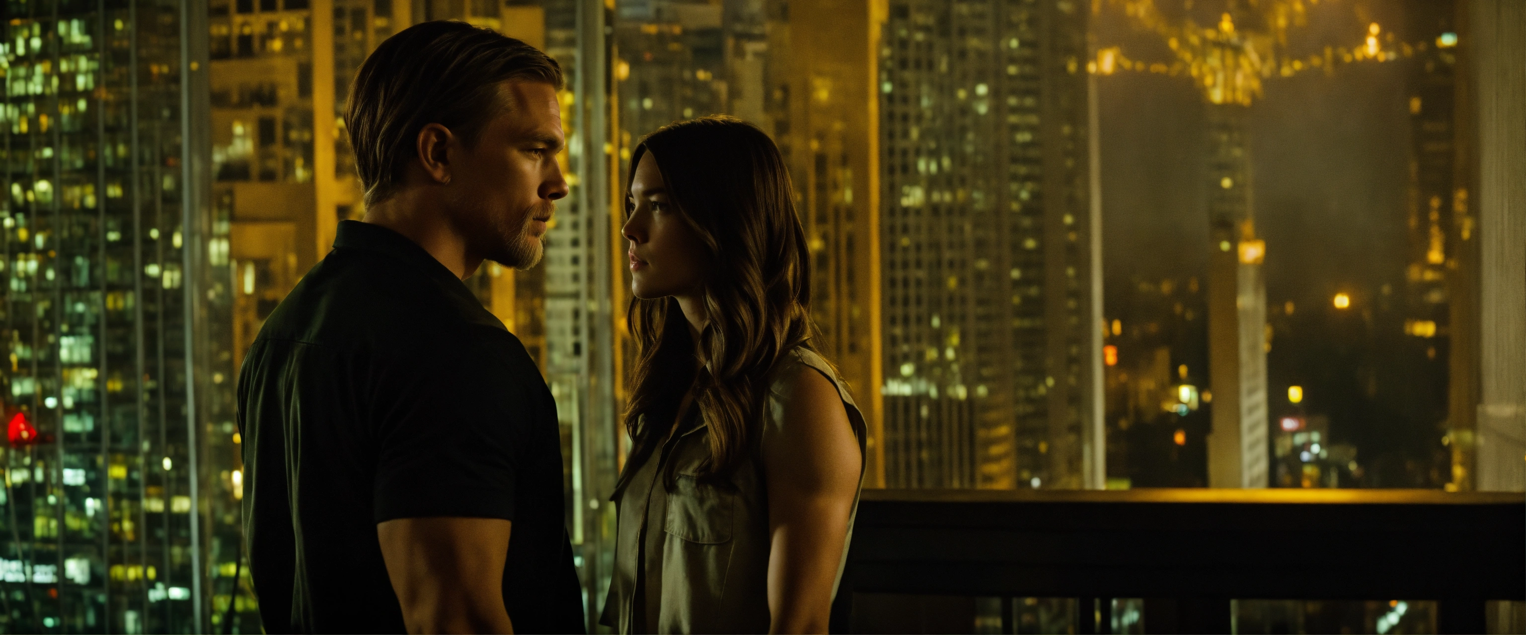 Beautiful odette annable couple together with charlie hunnam fbi agent, crime style. serial killer hunt, cinematic, night chicago, dangerous situation, suspense, cinematic