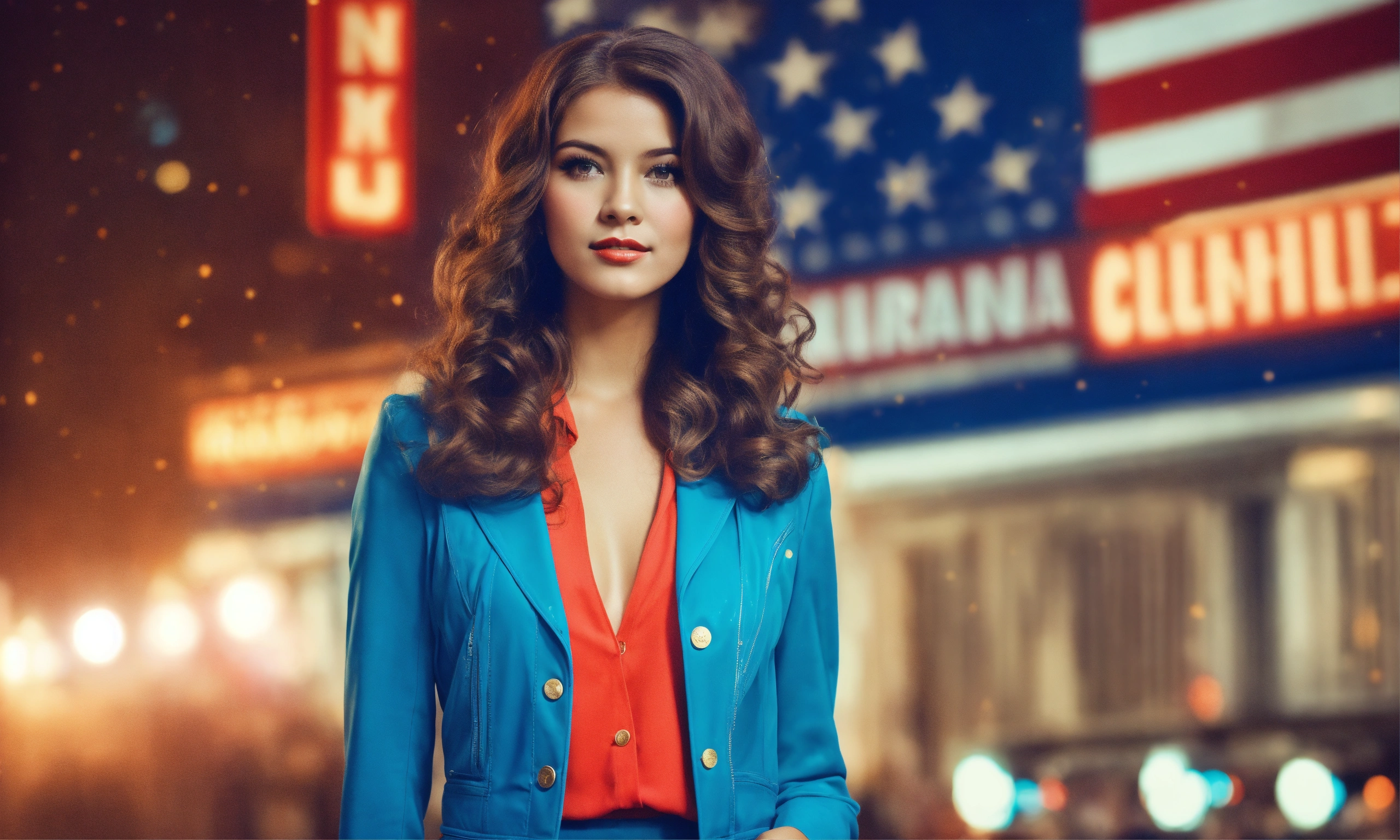Cute woman retro america style 1970-1990