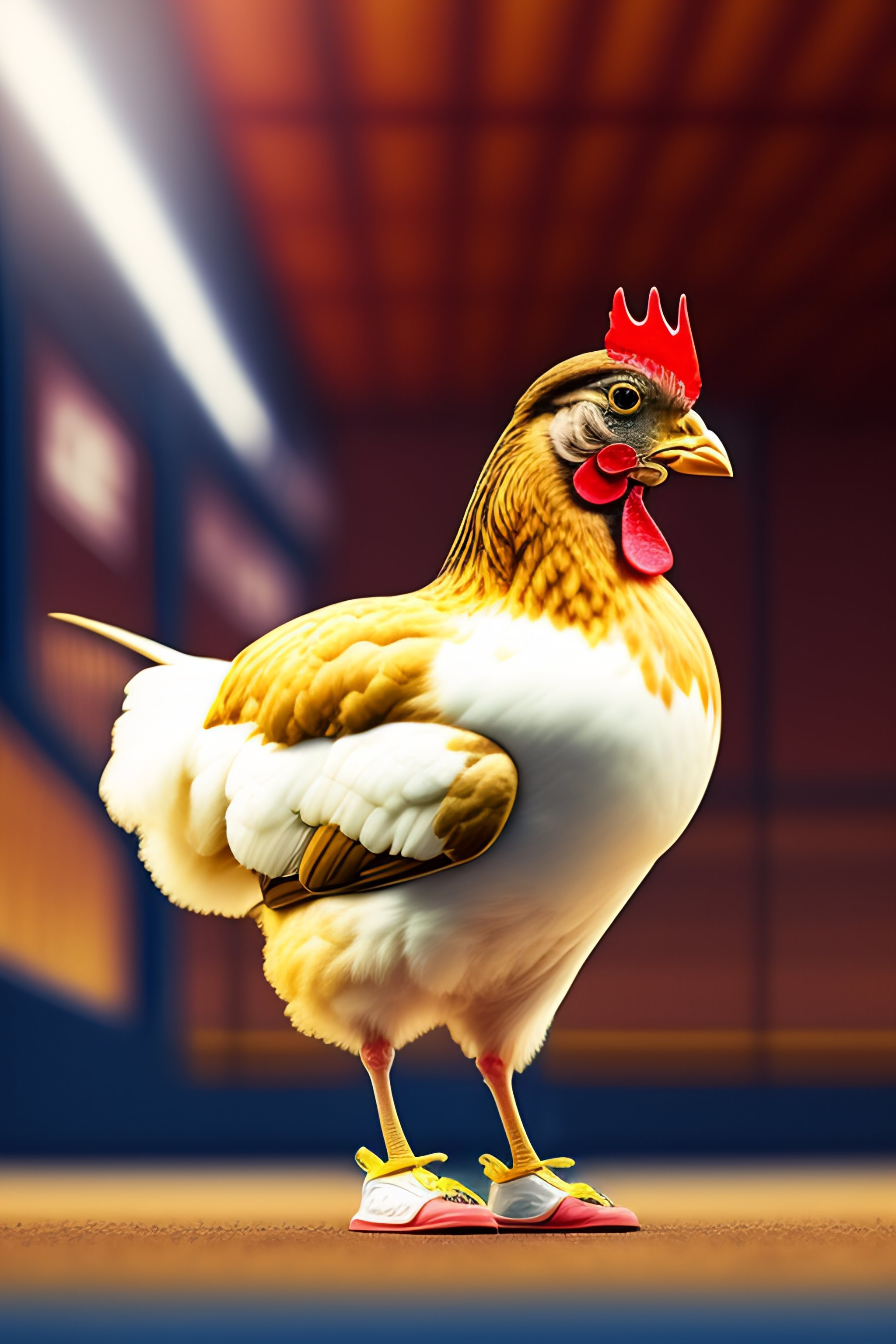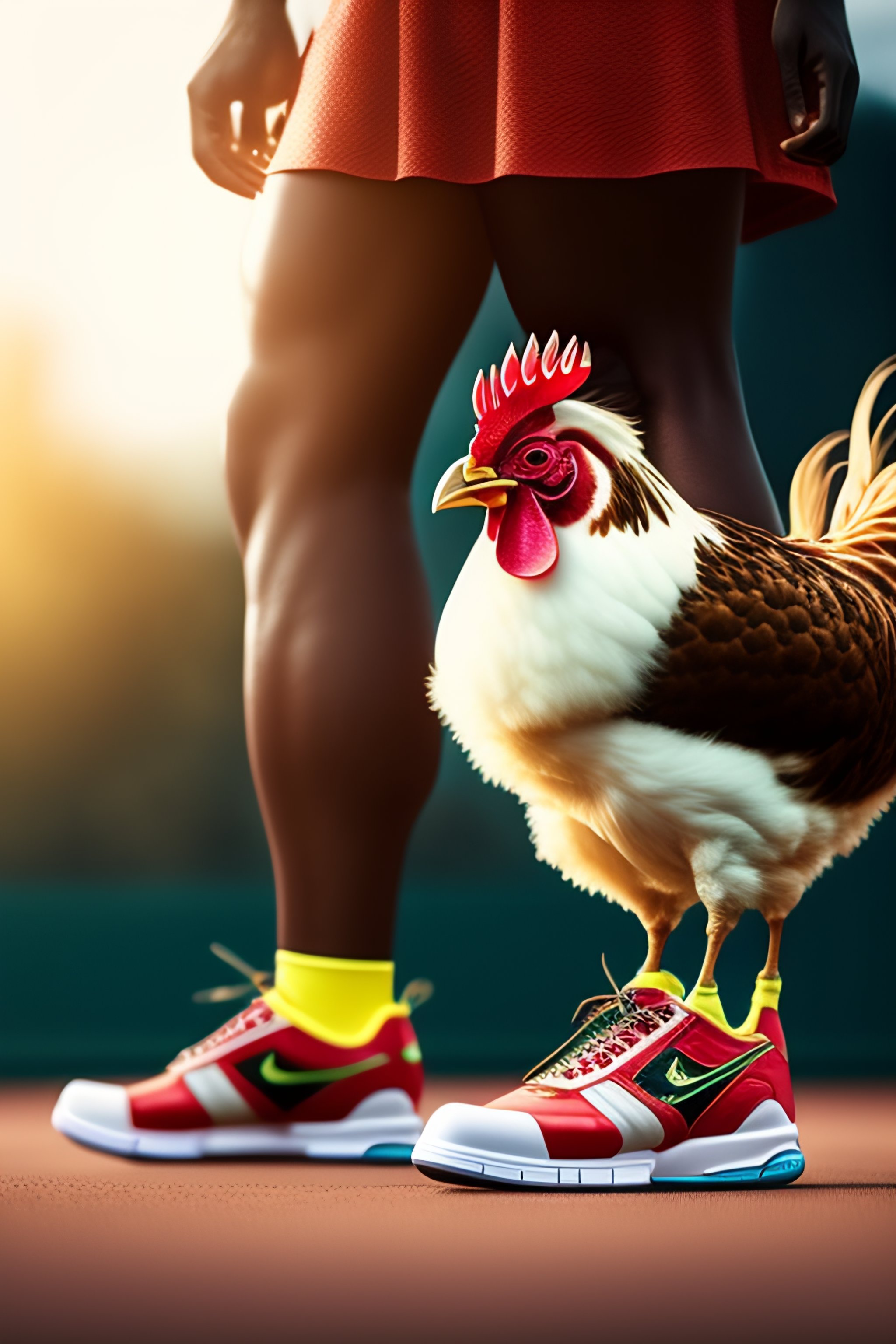 Chicken wearing tennis shoes