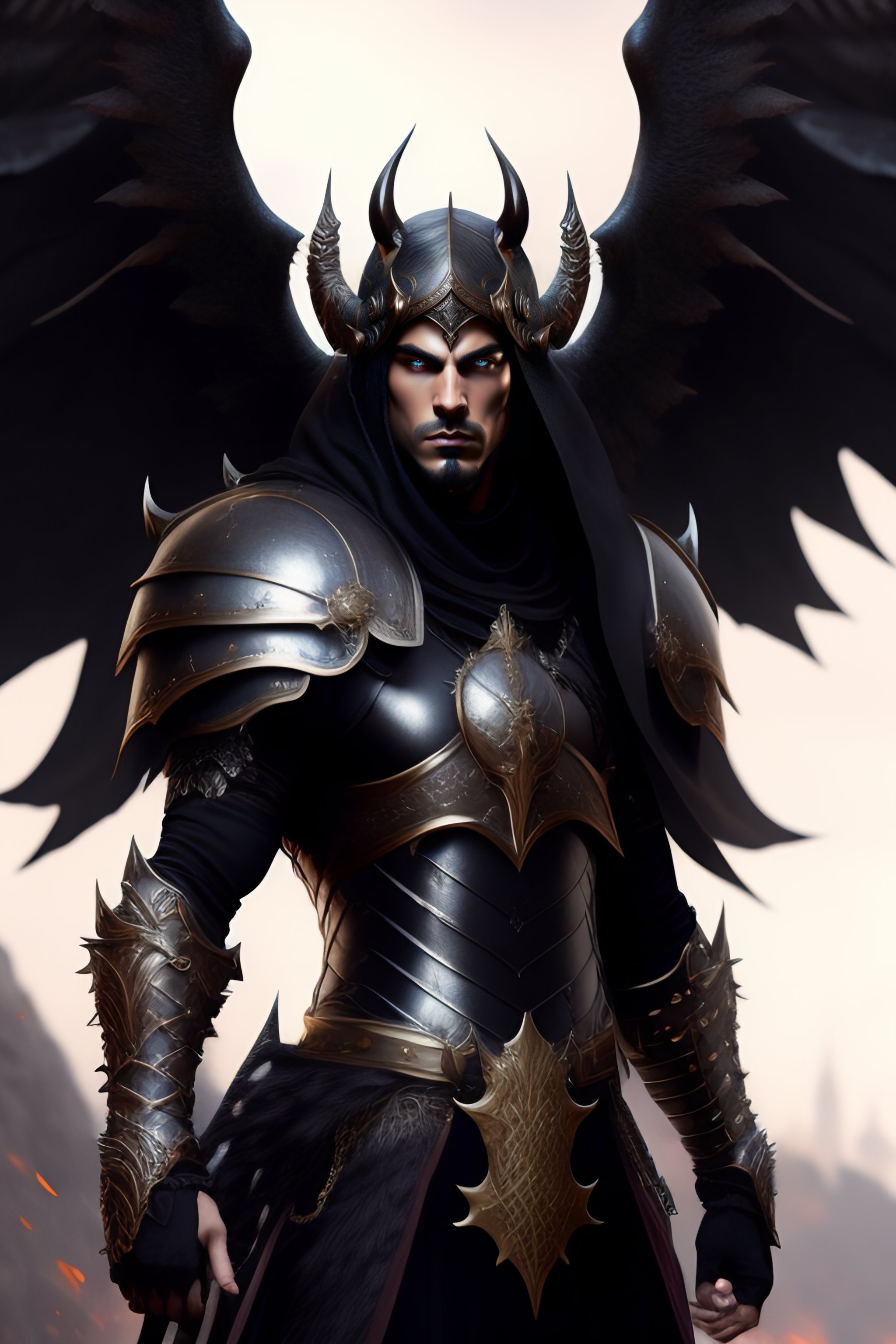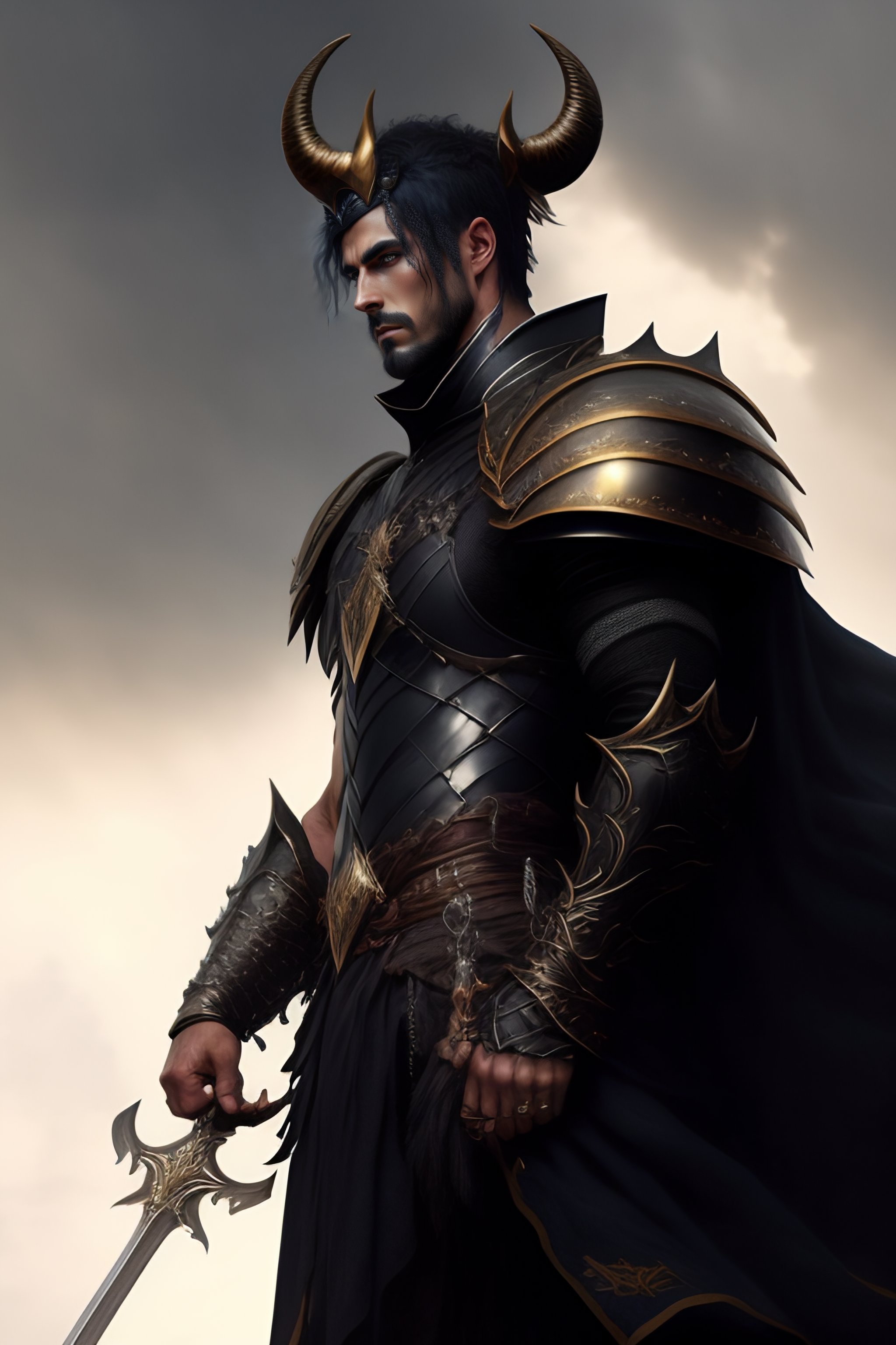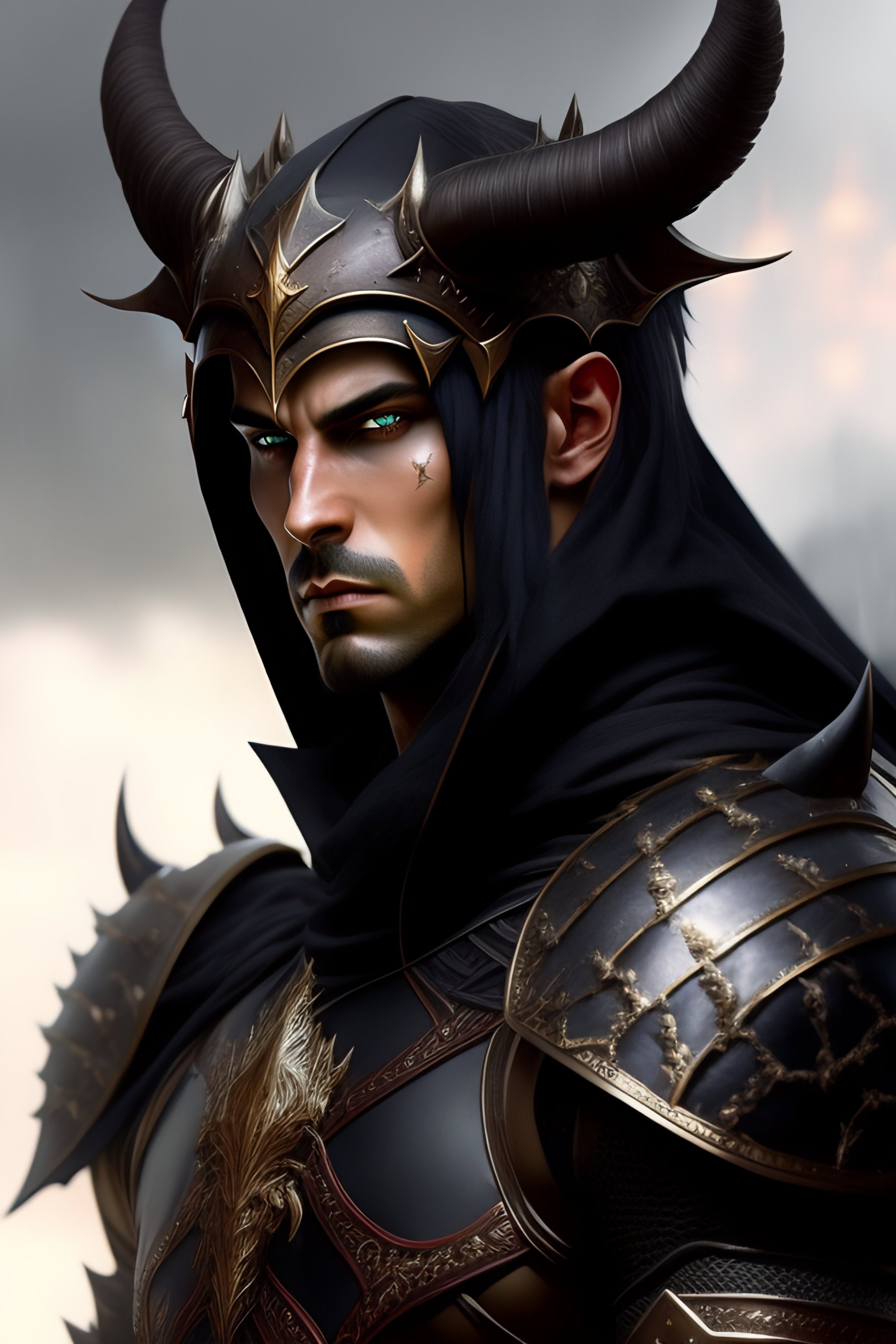 A male dark lord, full plate armor, helmet with horns, dark fantasy, final fantasy, darkwave, sharp, digital matte painting, art by luis royo, greg rutkowski, wlop, dramatic lighting, trending on artstation