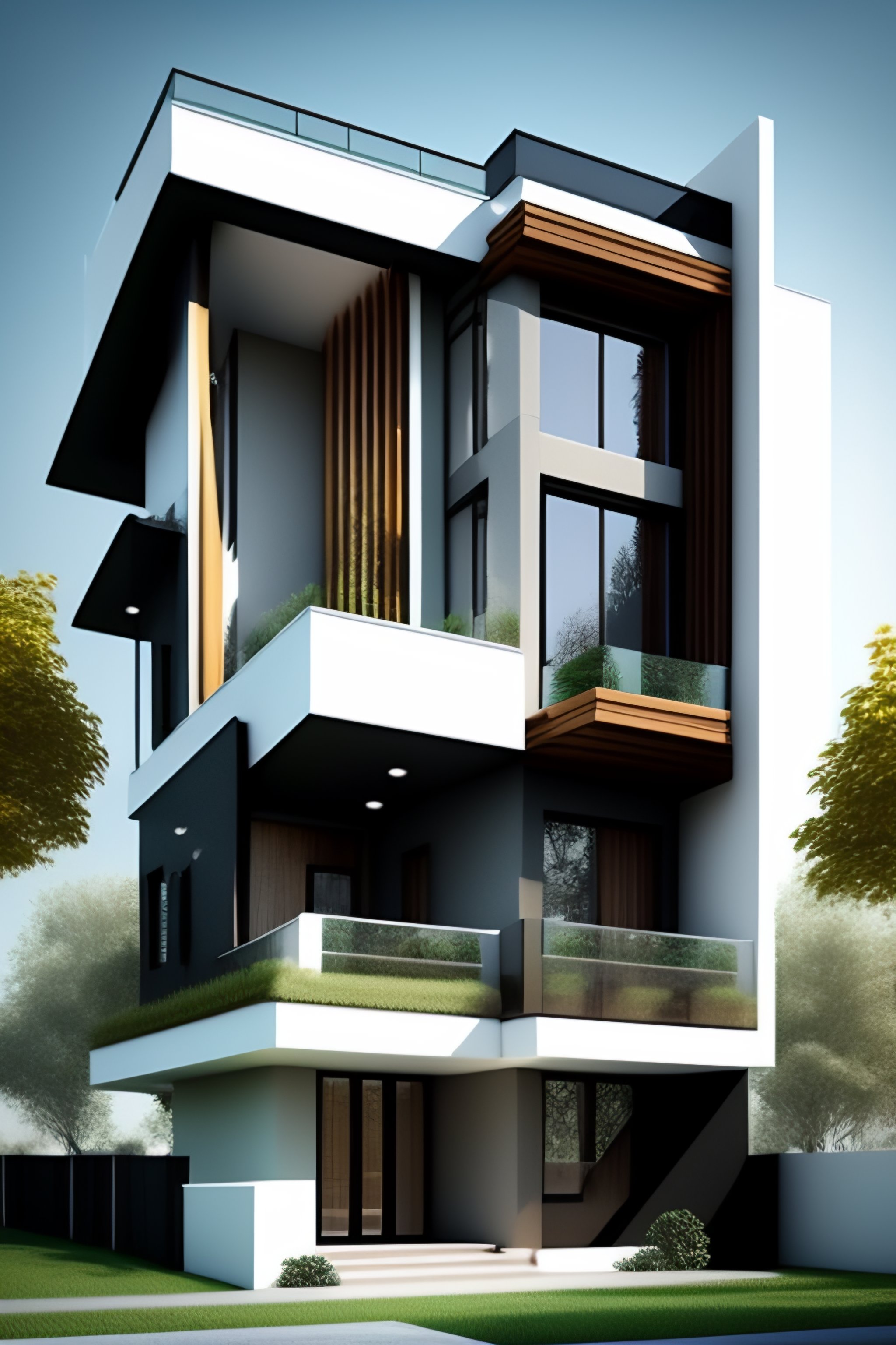 Innovative arcitectural design of 2 story residential buildings in contemporary architecture style