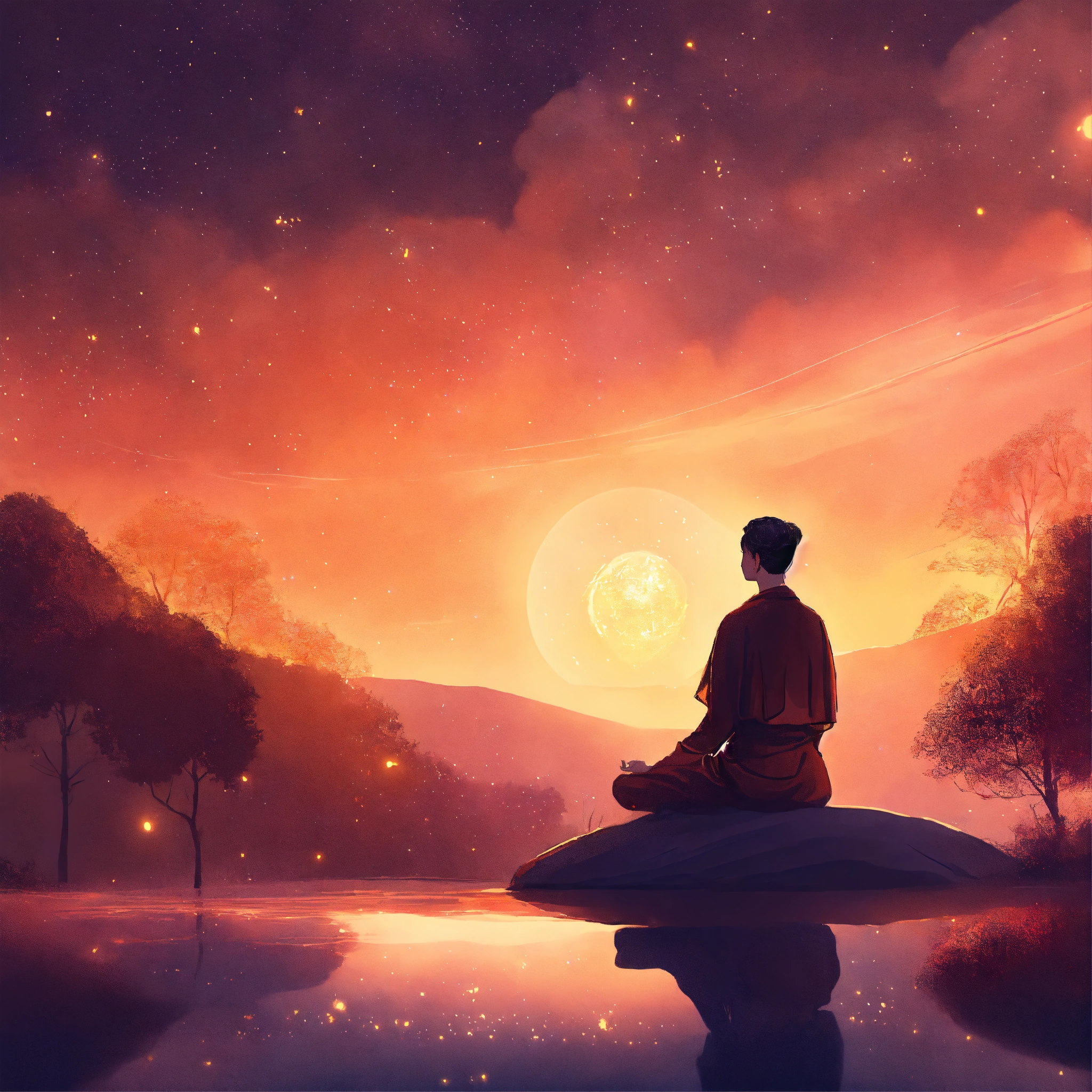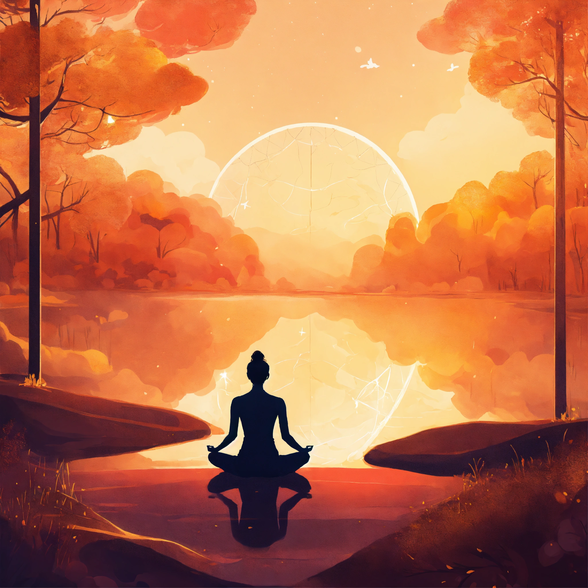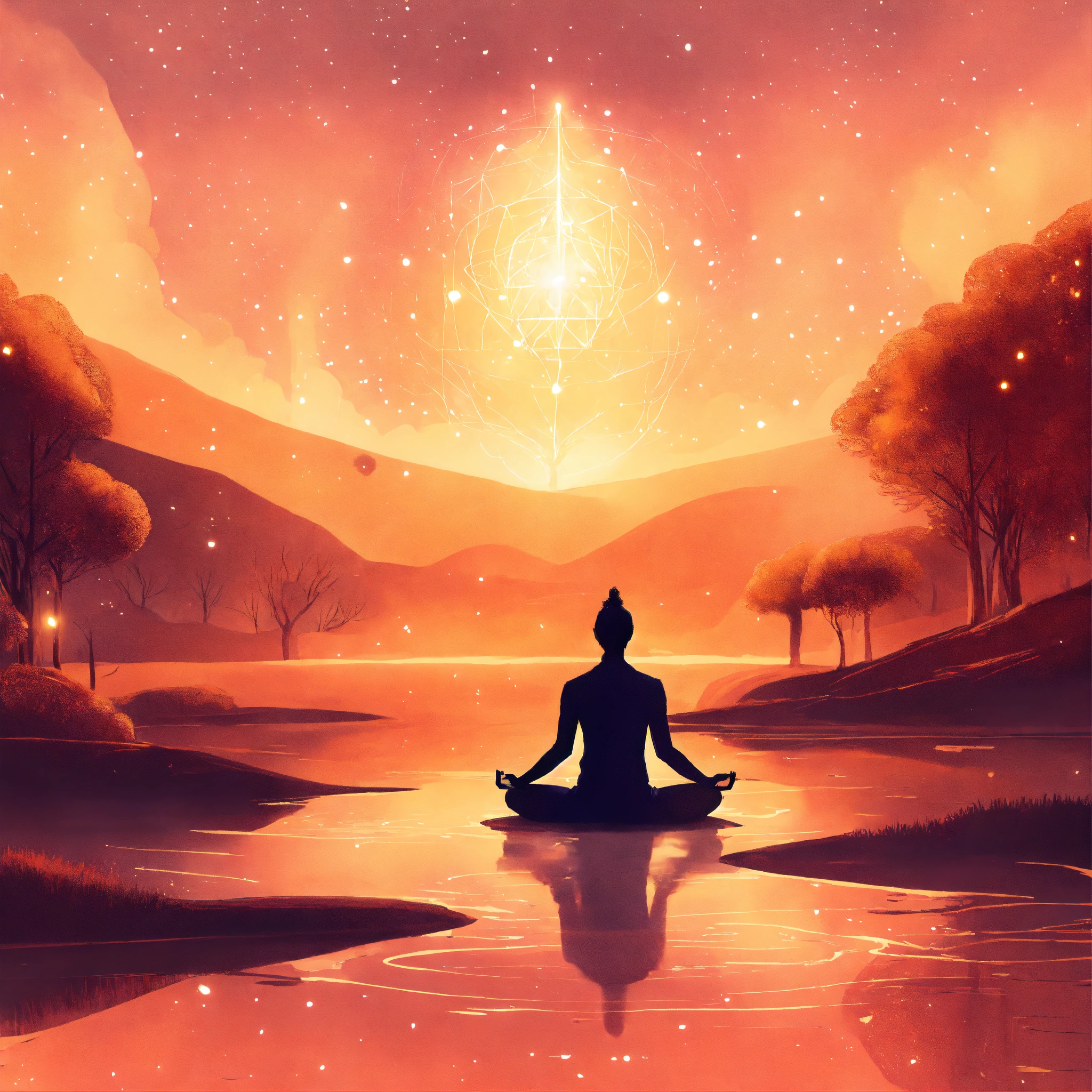 Meditation, i am presence, light, illumination, golden light, divine, sci fi, abstract, nature cozy webpage background hero image for adorable platform modern minimalist illustration