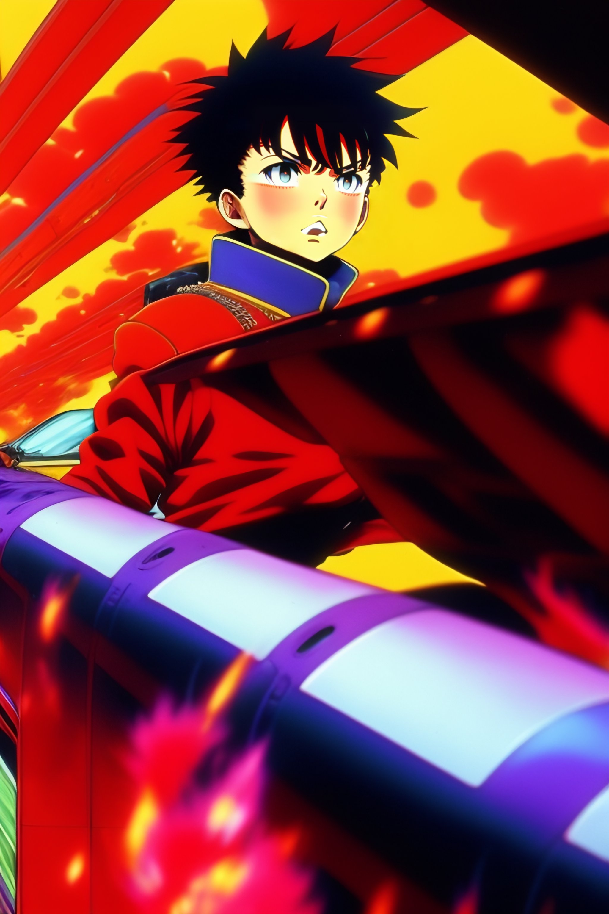 Vintage anime screenshot from akira, 90’s anime aesthetic. maximalist action shot of the protagonist escaping the police