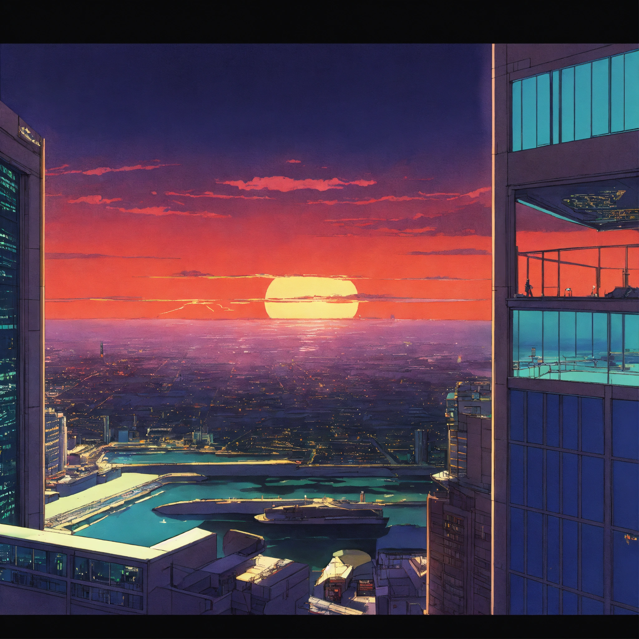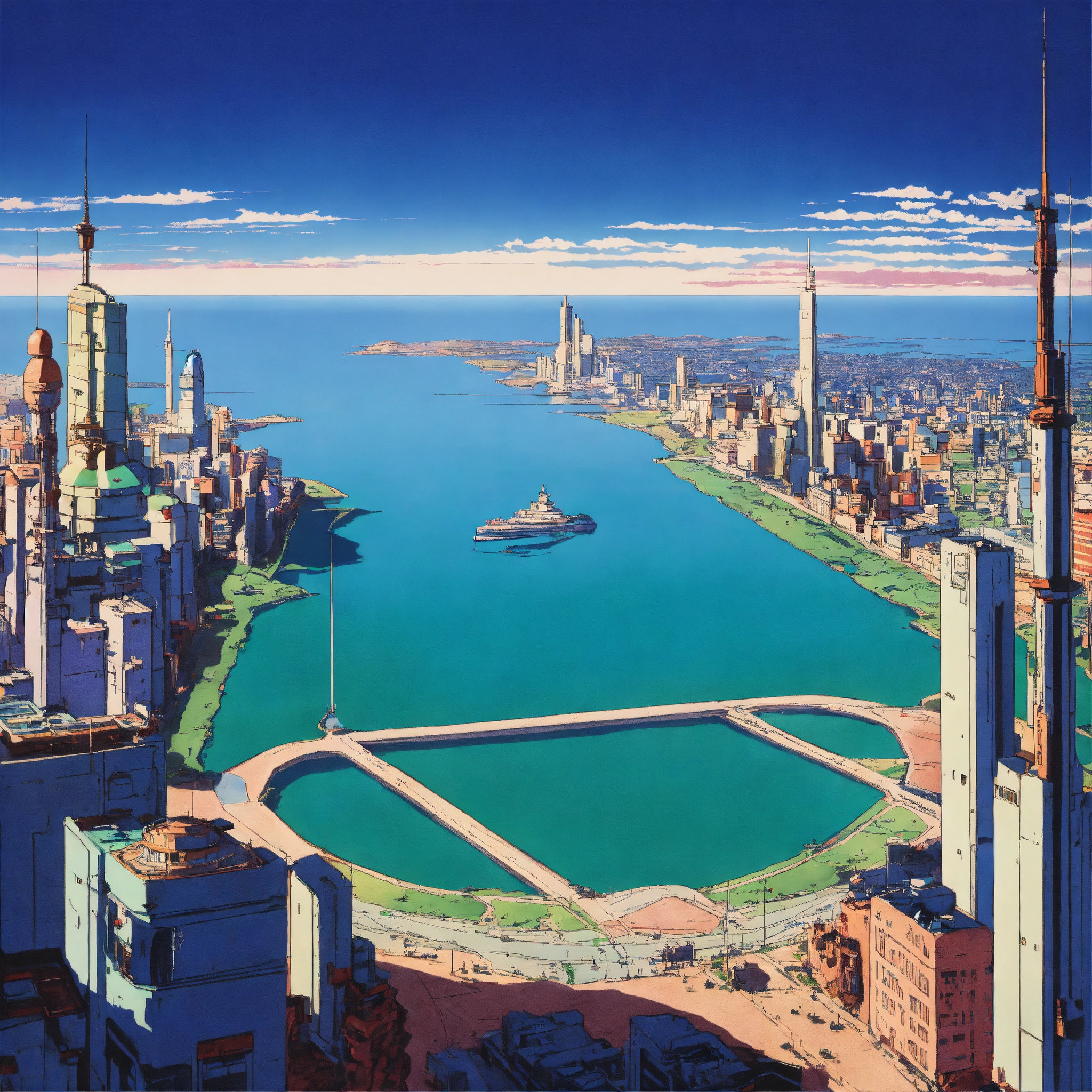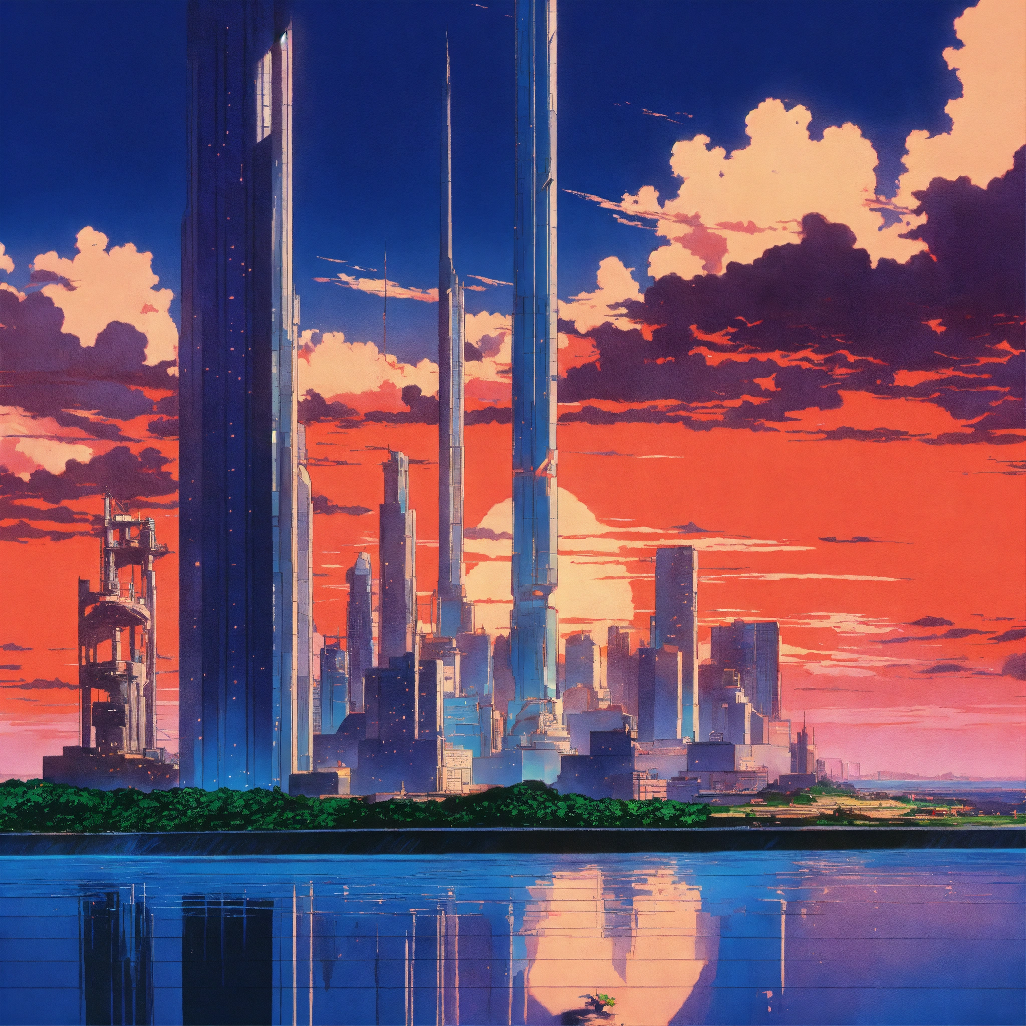 The city of atlantis but with futuristic vibes in vintage anime screenshot from evangelion, 90’s anime. minimalistic elegance. panoramic vantage point.