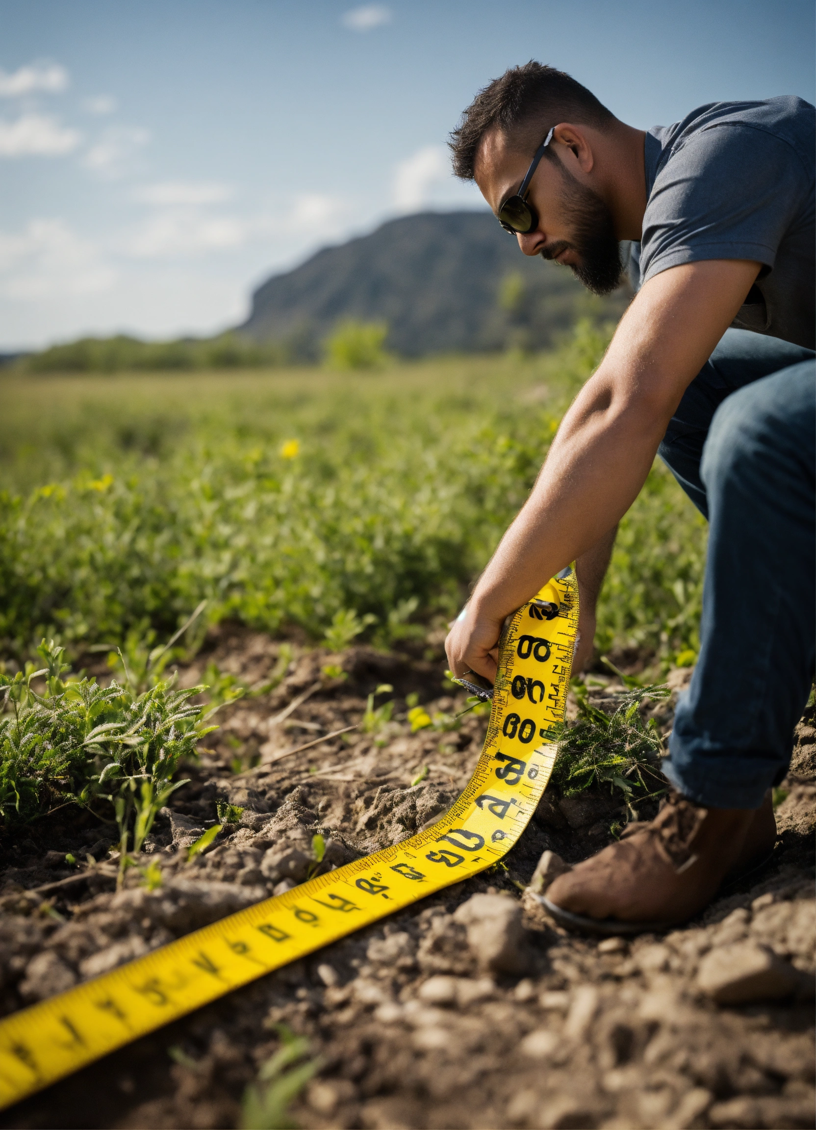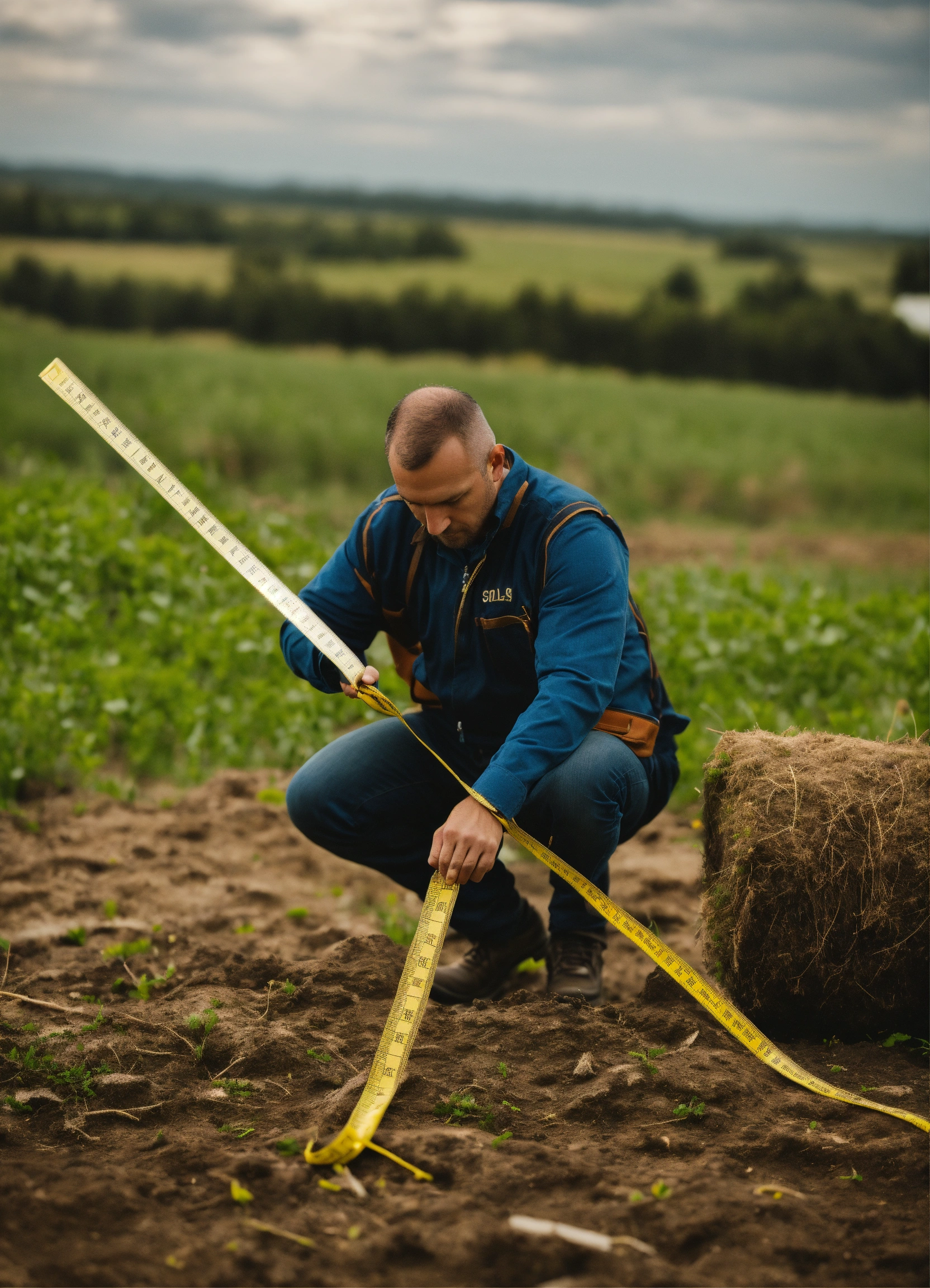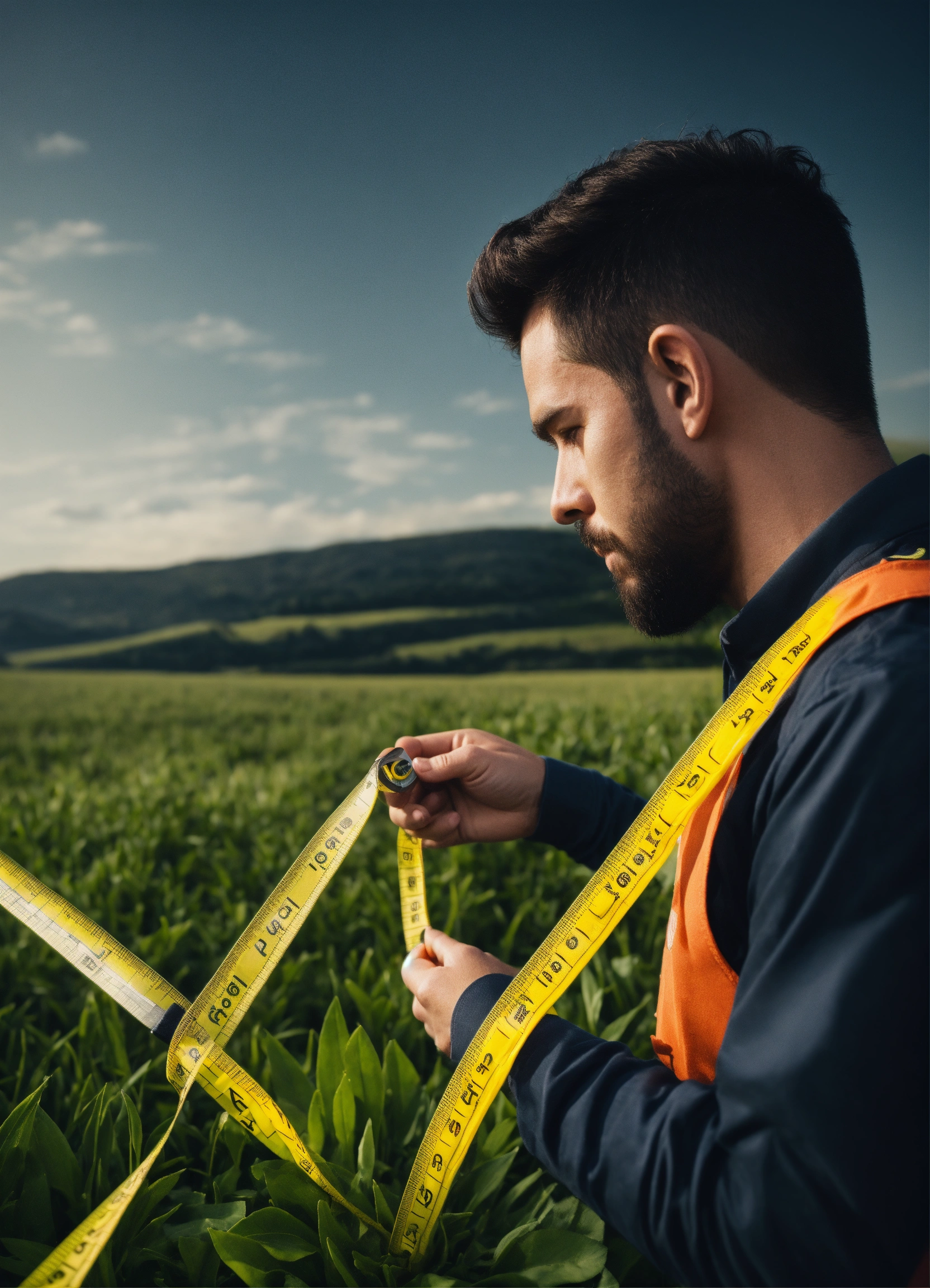Need a logo concept, a man with measuring tape, measuring a land. need. a close look, logo type a close up look