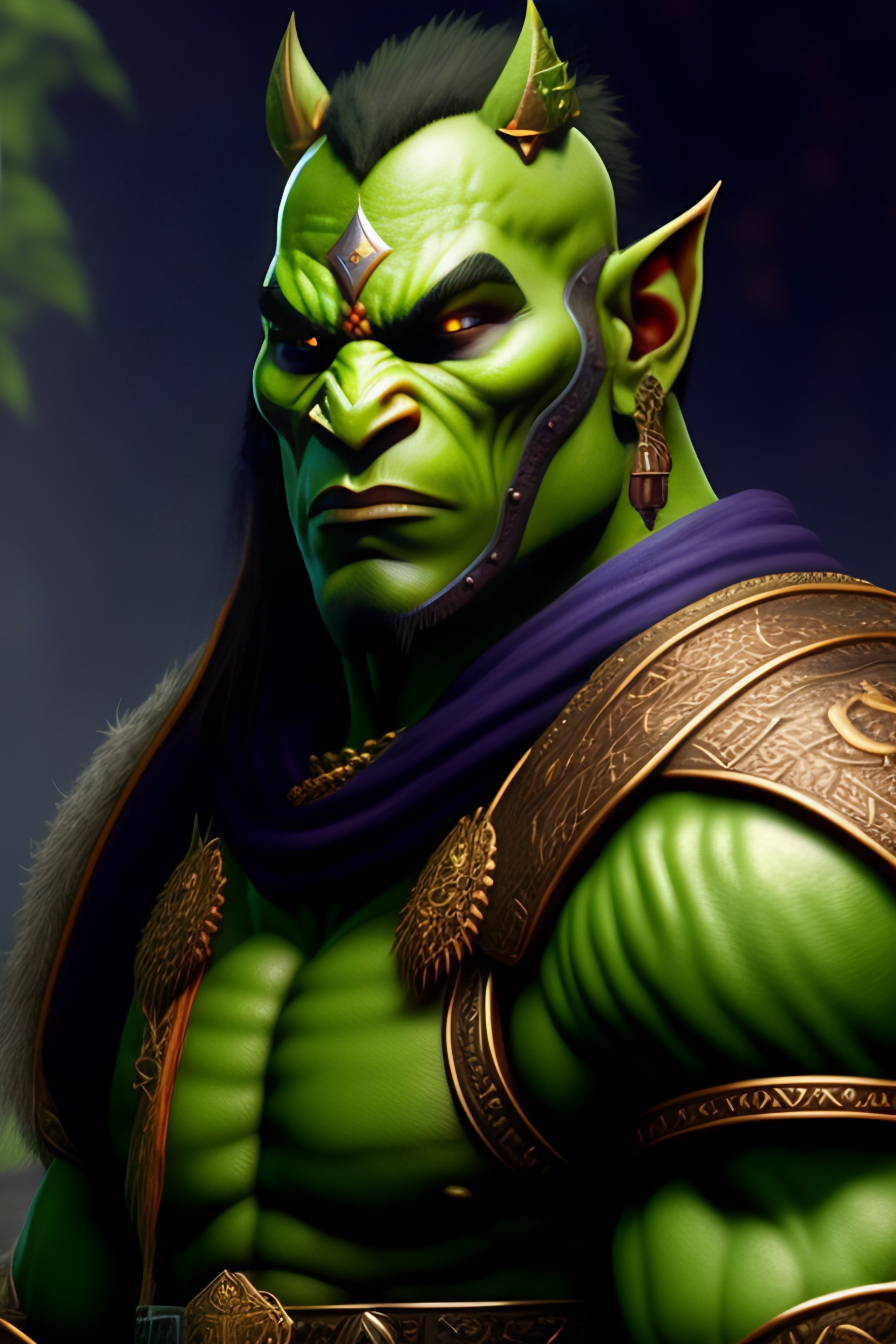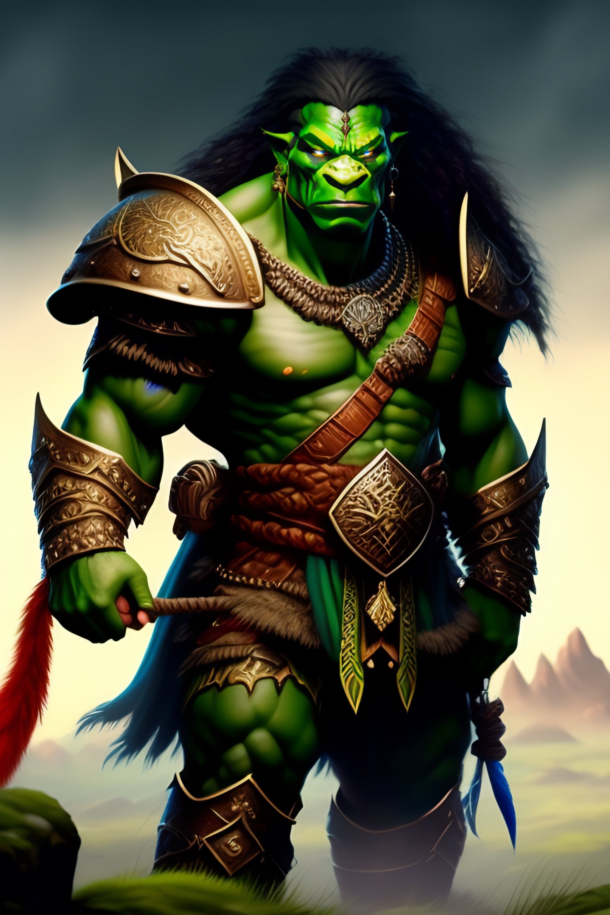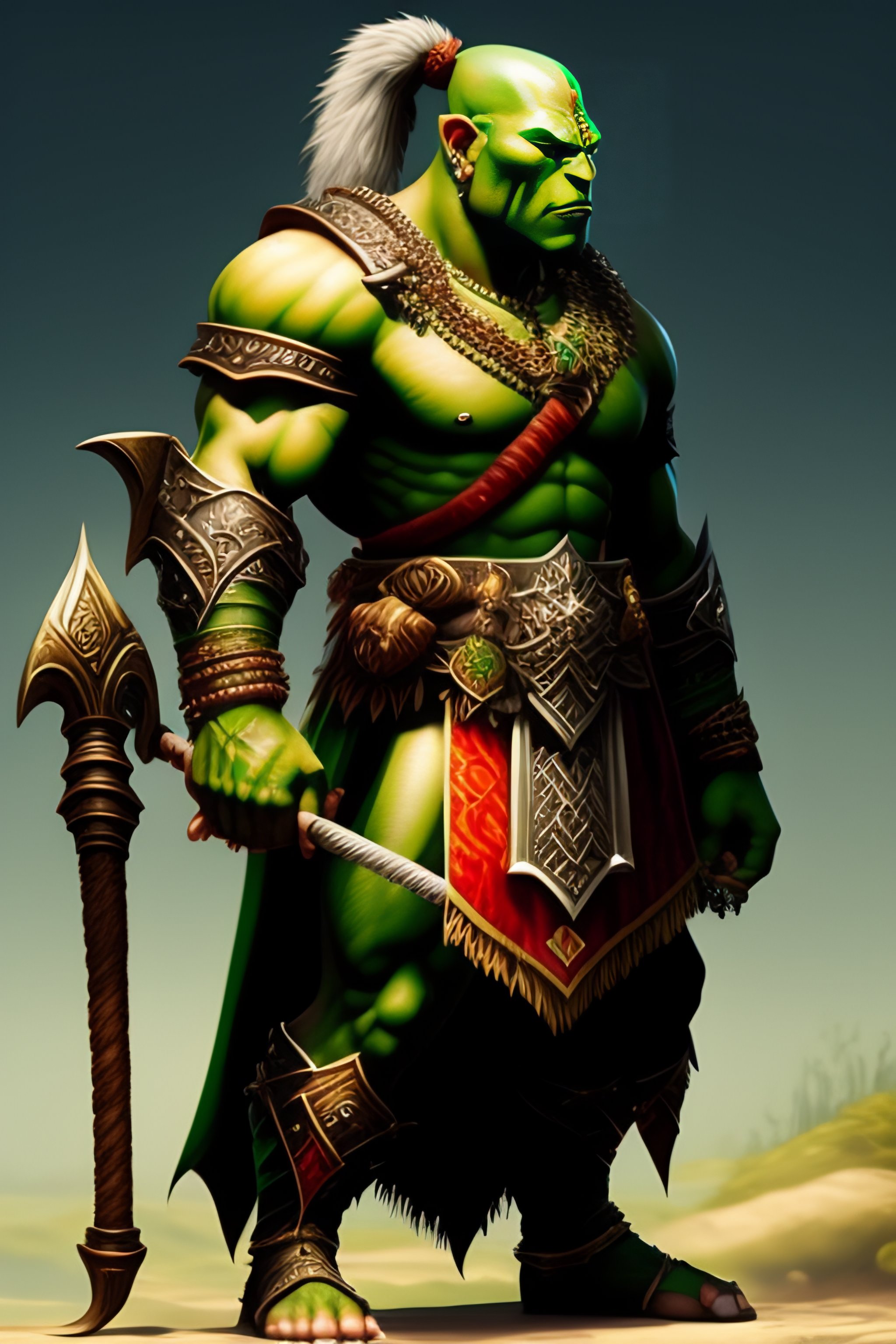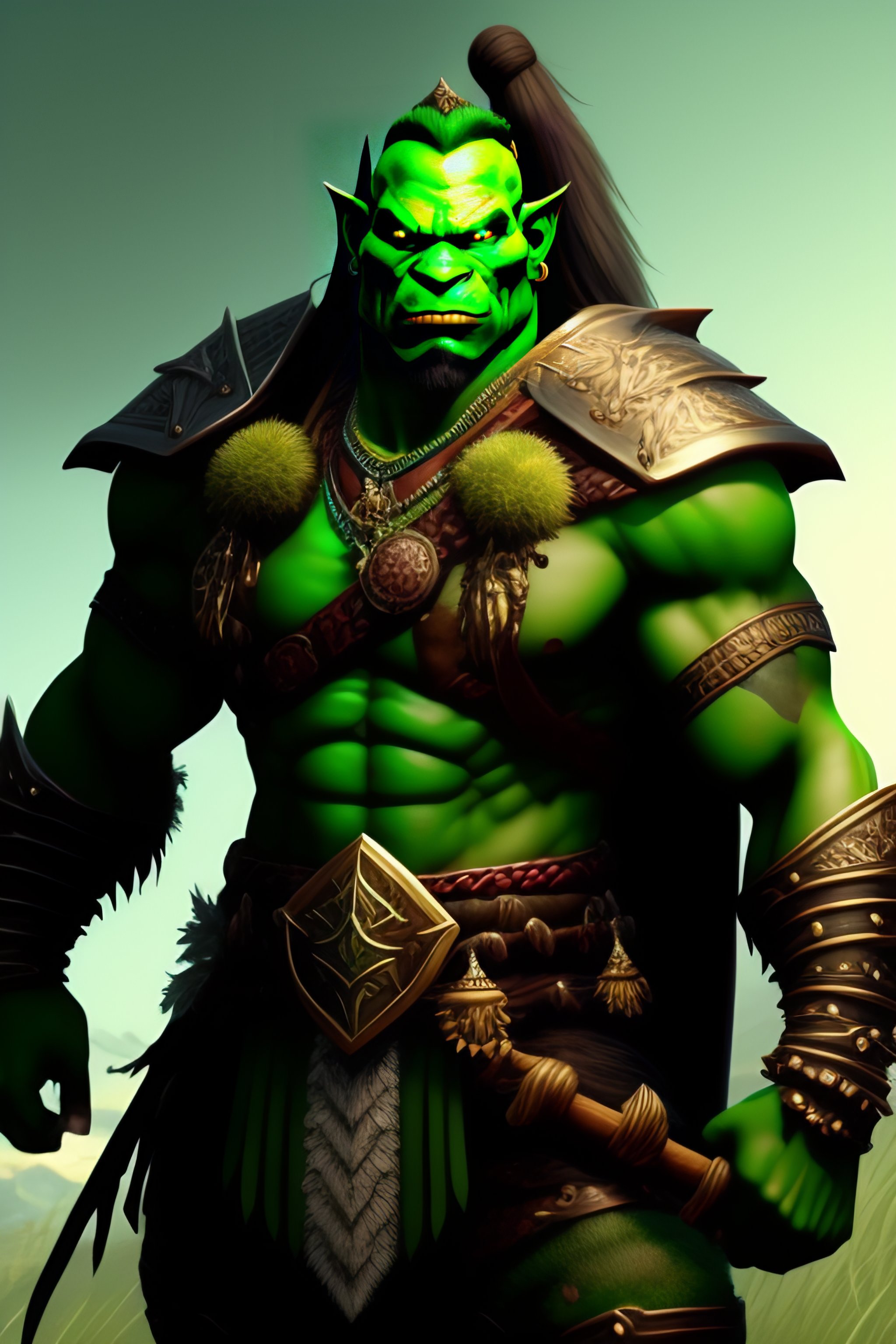 A well-drawn extremely intricate extremely detailed sensible and kind green orc warrior