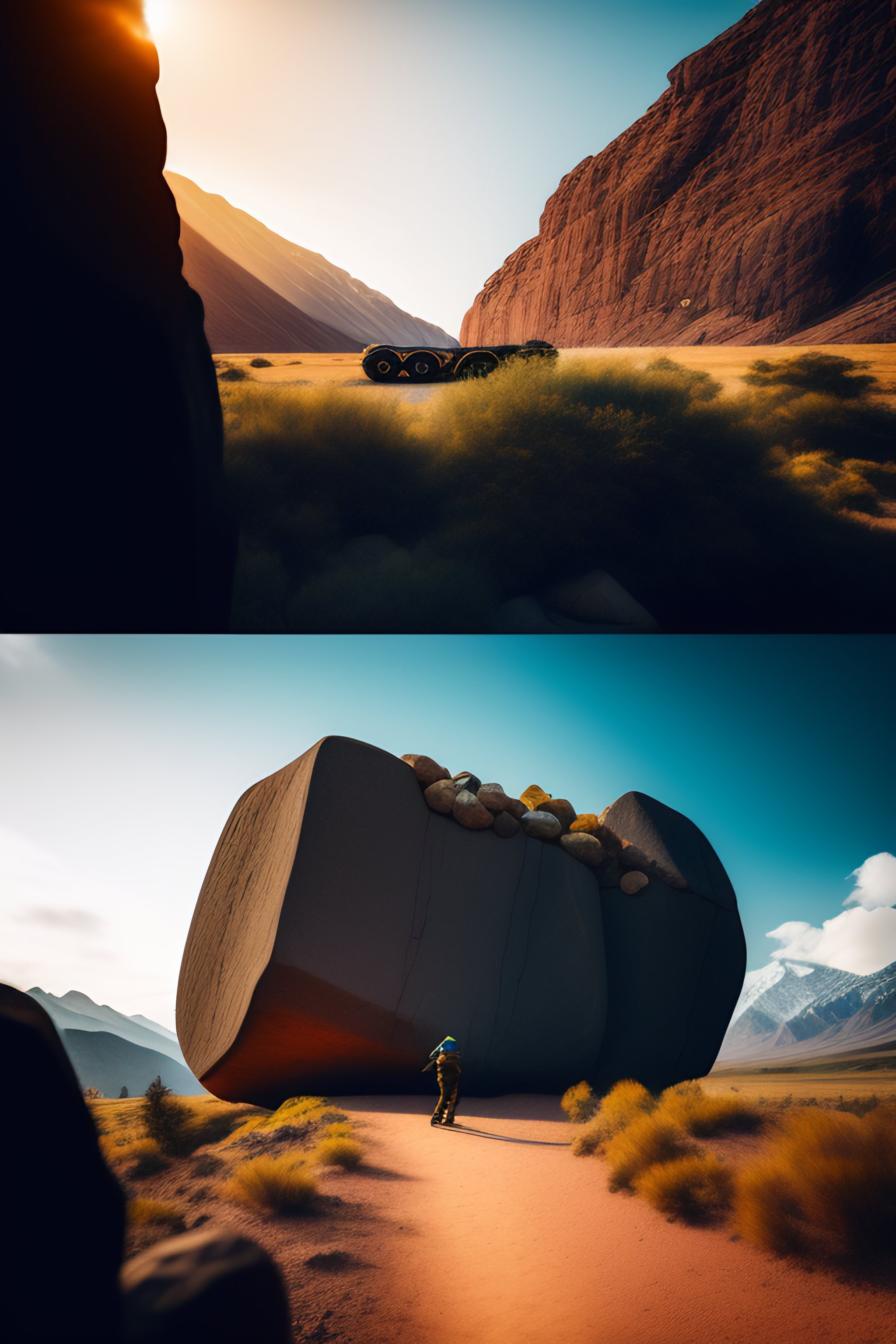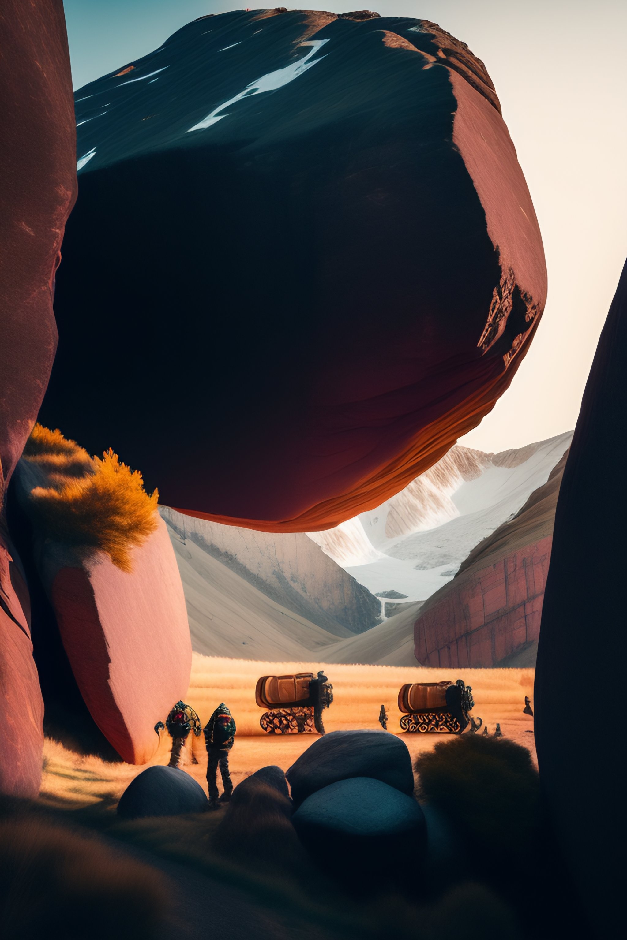 Multiple people moving boulder wall into place, story telling, historical, high detail, david rudnick detailed behance instagram underground 4k
