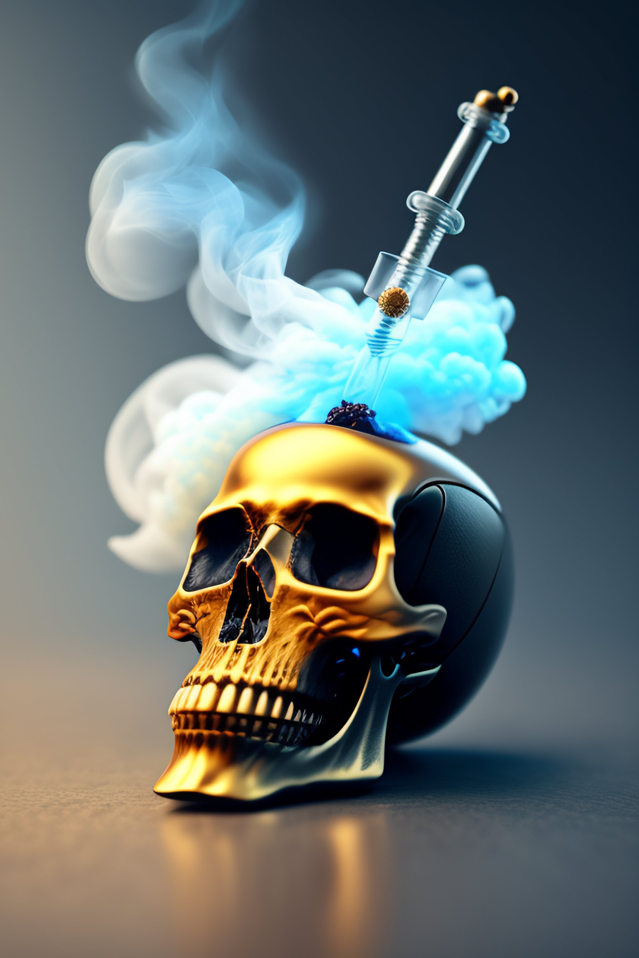 Skull of smoke coming out of syringe, fantasy, intricate, elegant, highly detailed, digital painting, artstation, concept art, smooth, sharp focus, illustration, art by ilja repin