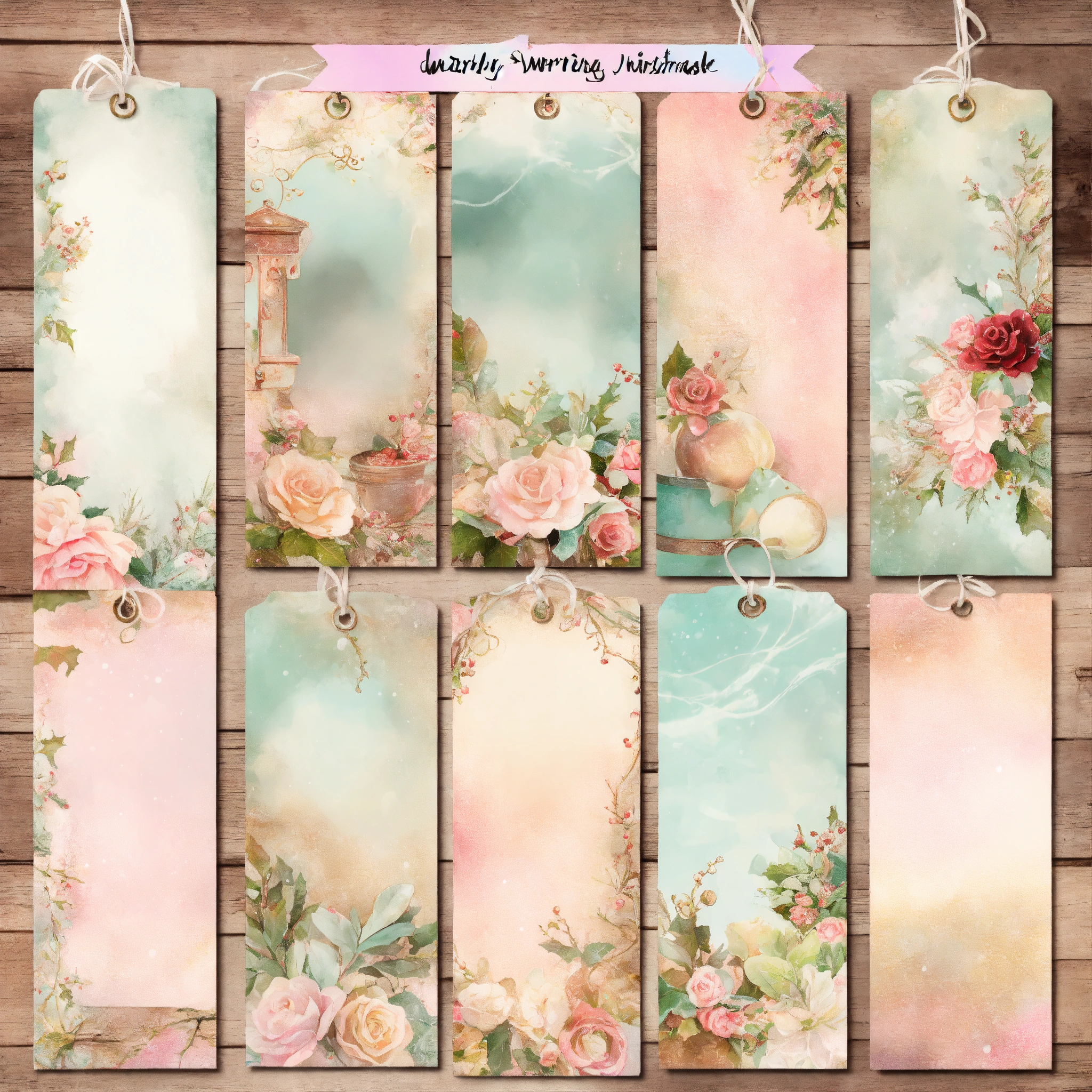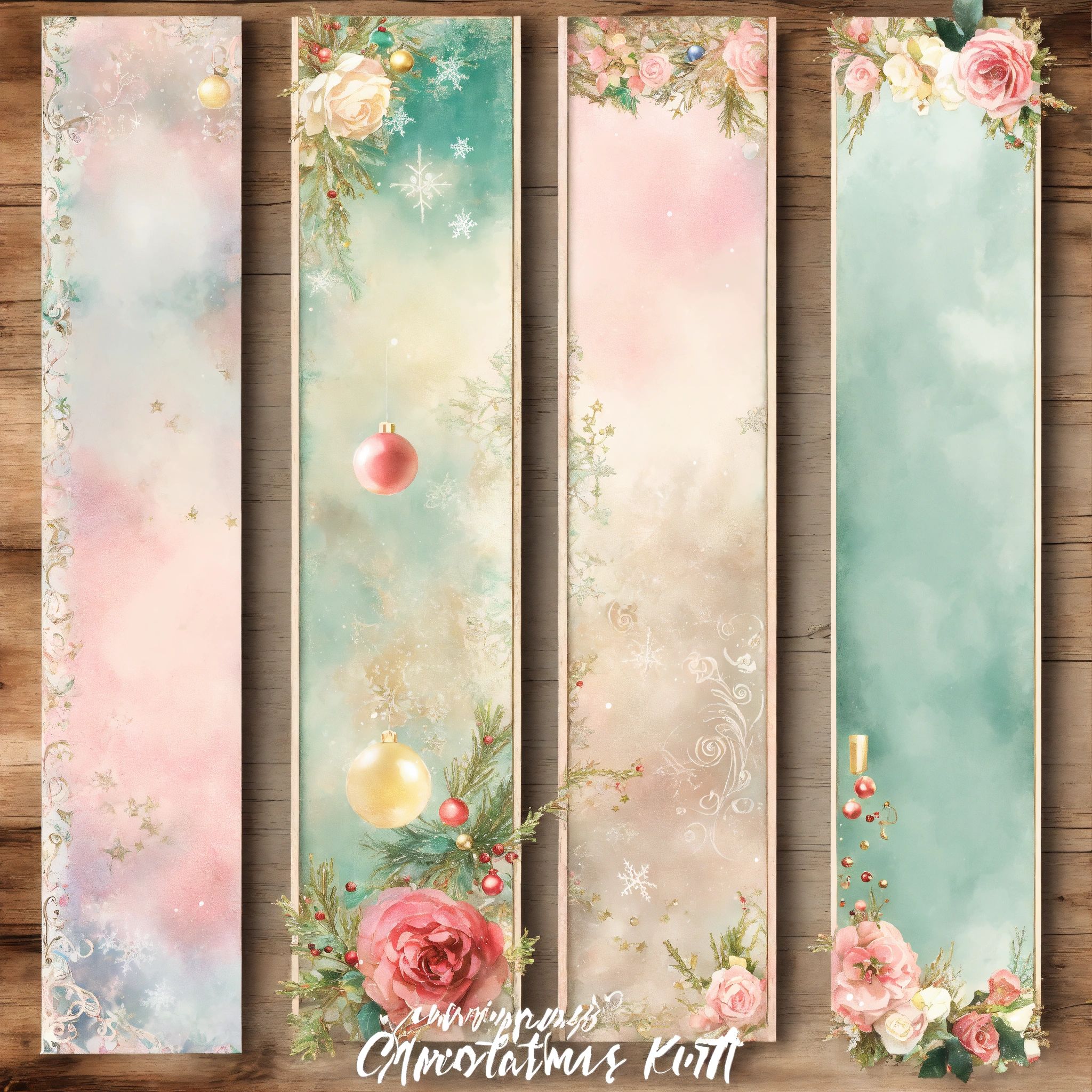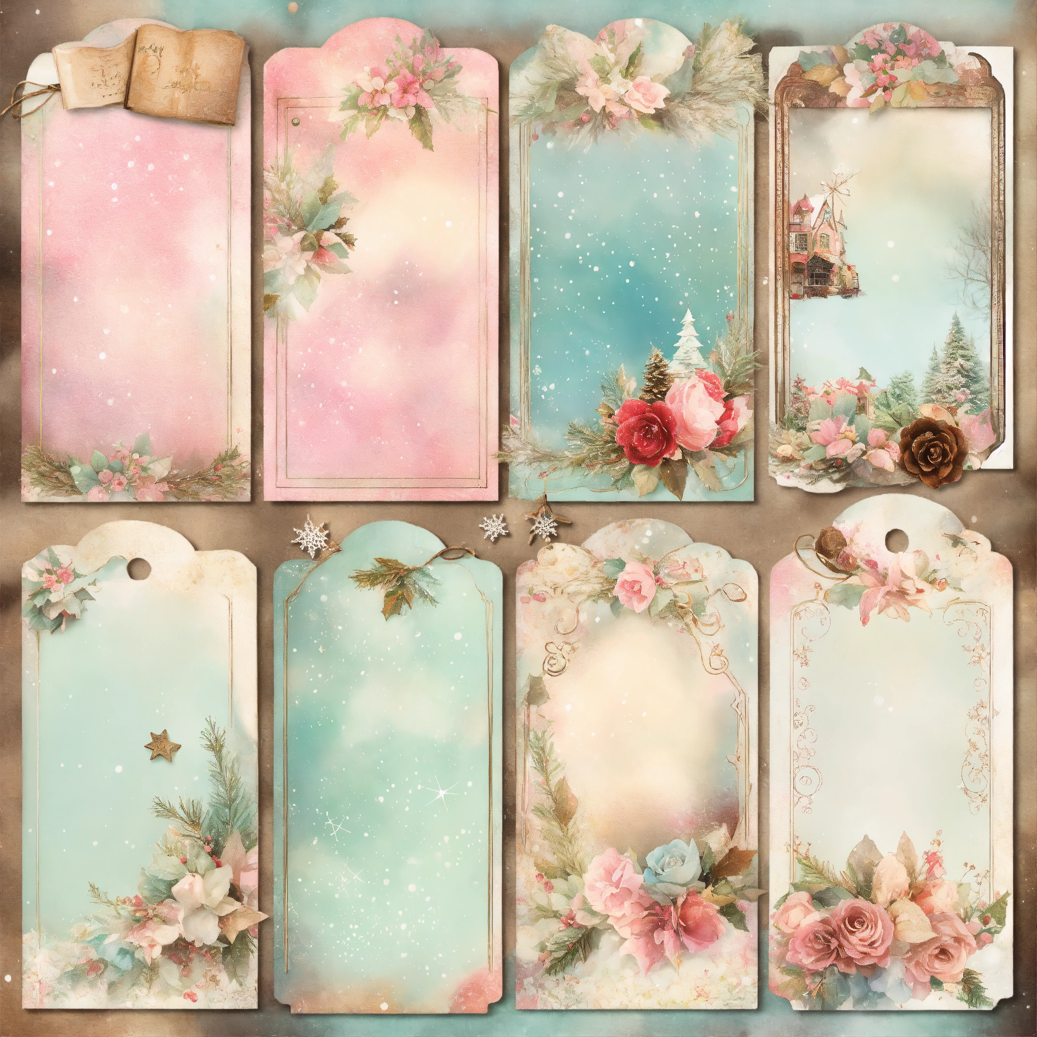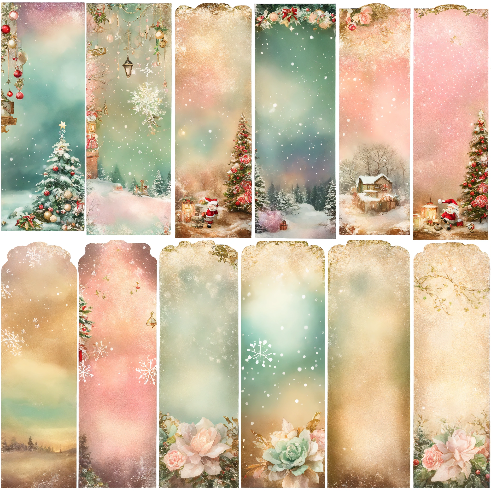 Shabby chic dreamy mist pastel junk journals winter christmas printable bookmarks, digital collage sheet, scrapbook paper kit, vintage ephemera tags, festive holiday label, santa junk journal swirling magical fairytale abstract art style