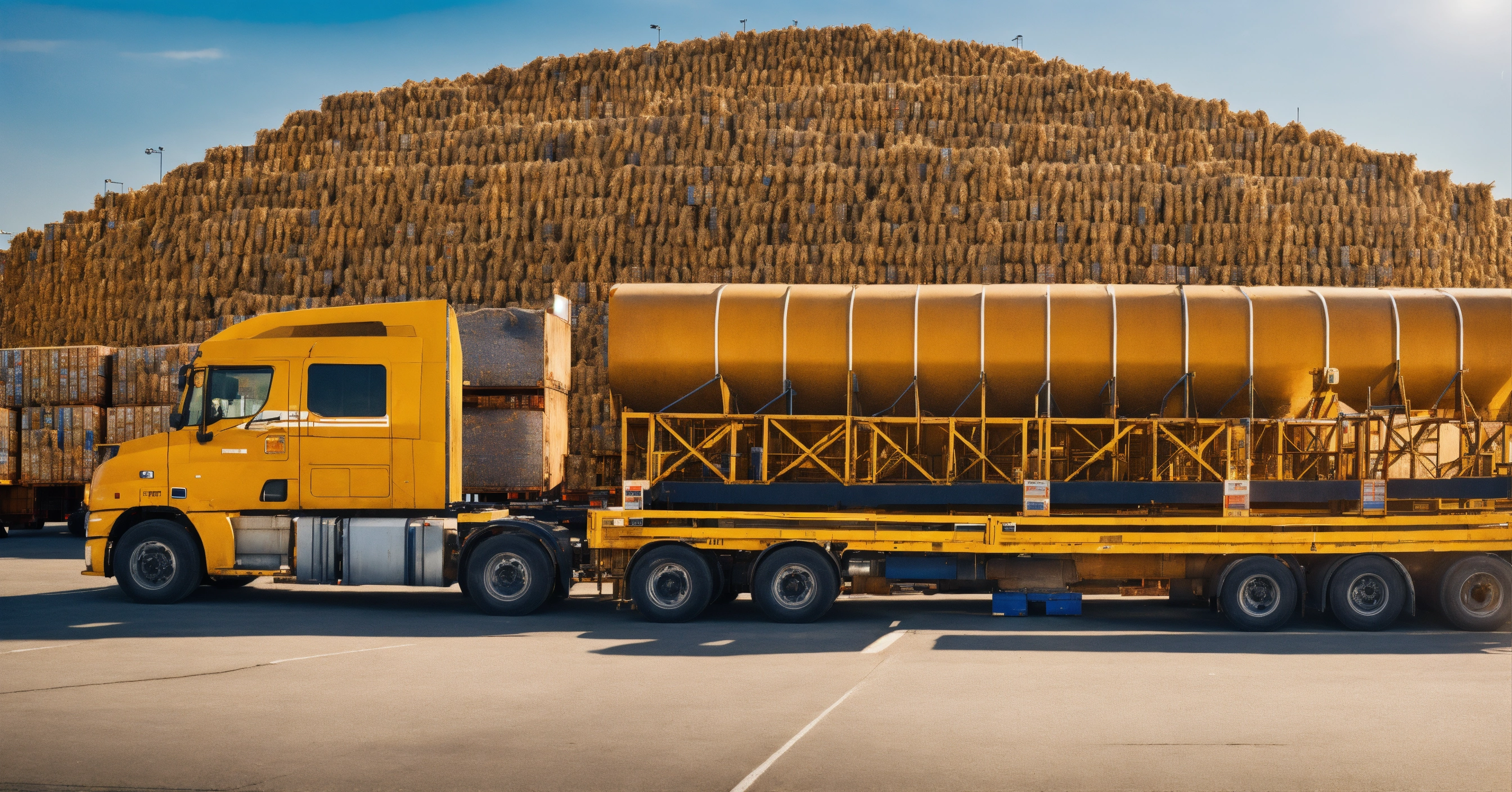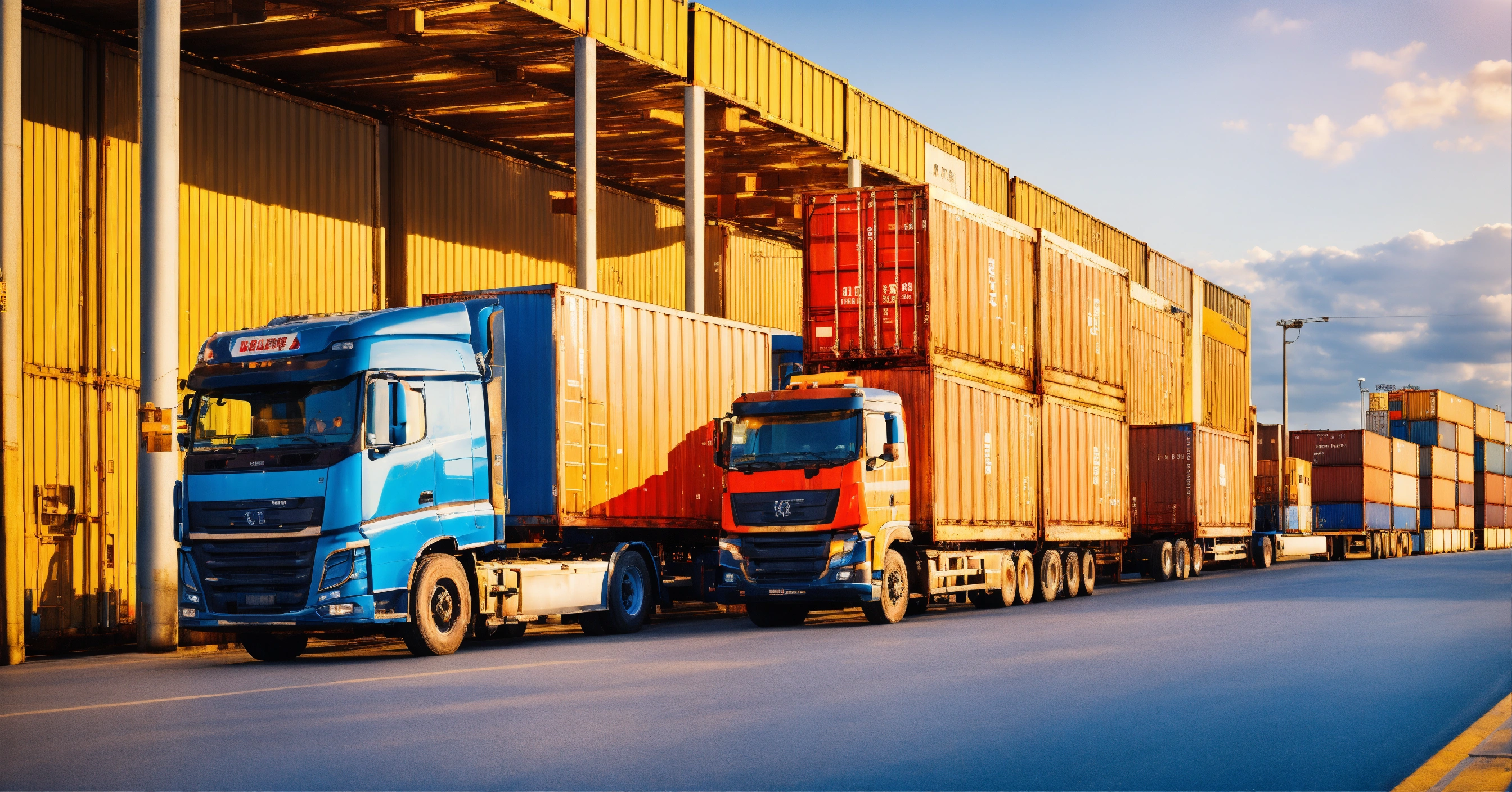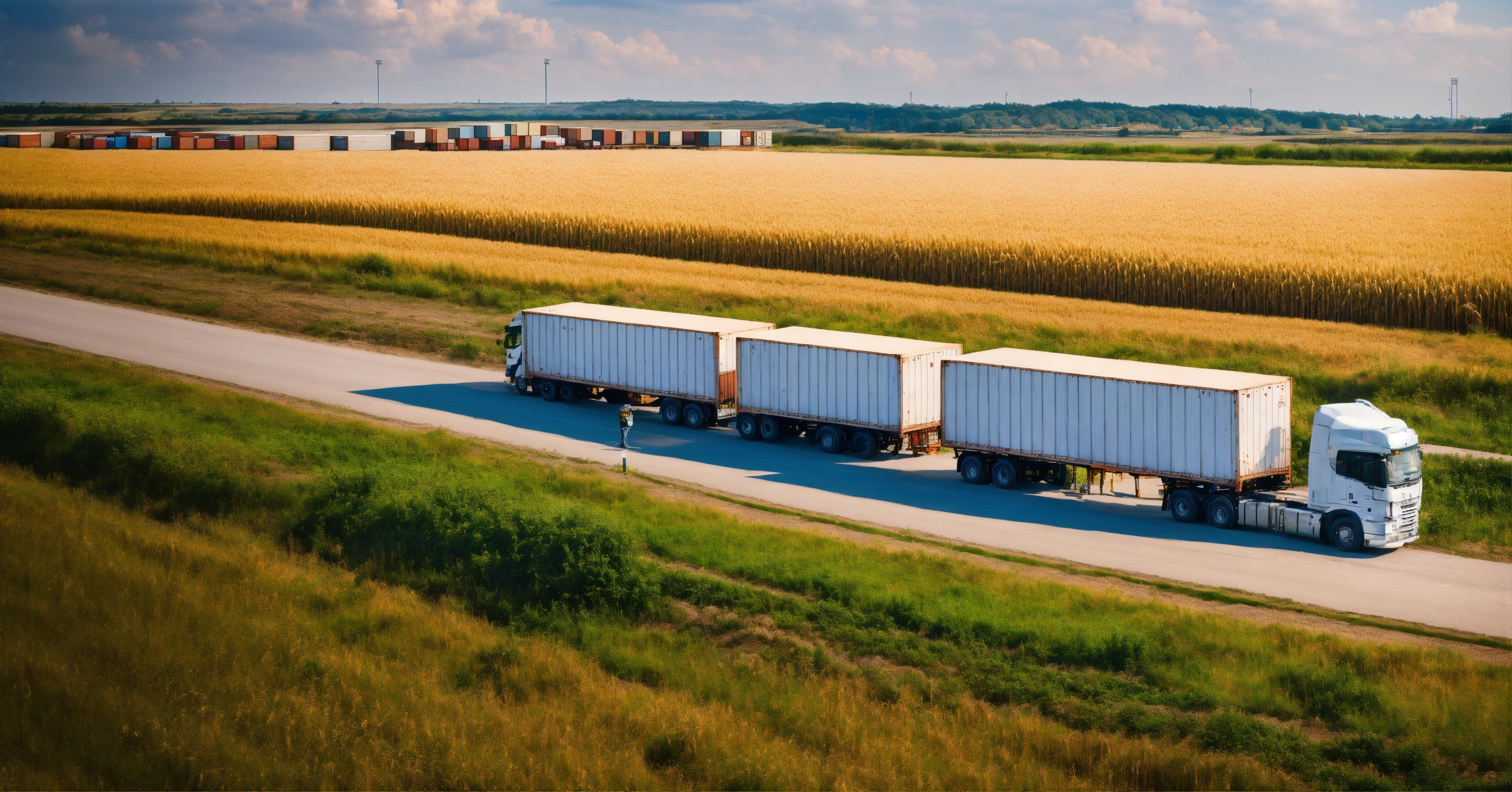 Trucks with grain at a checkpoint of a customs terminal in sunny day, freight forwarders delivered imported grain to custom bonded warehouse for temporary storage