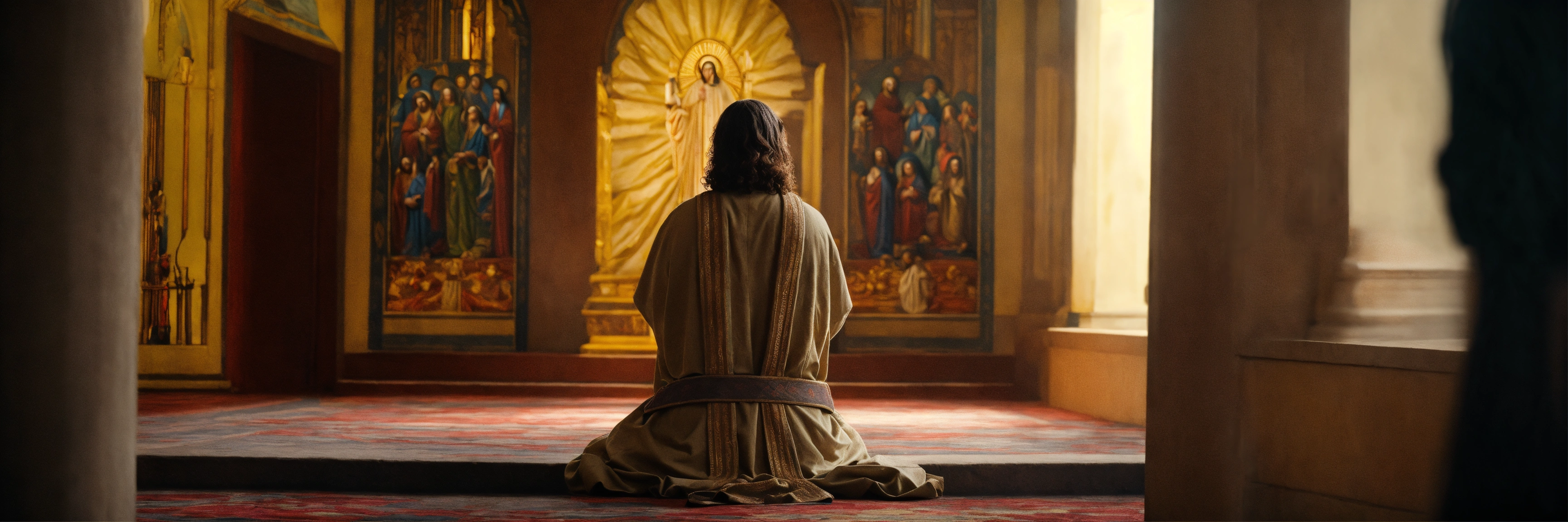 Jesus, pray to god, alone praying, detailed, 4k, focused, extreme details, super resolution, cinematic, masterpiece