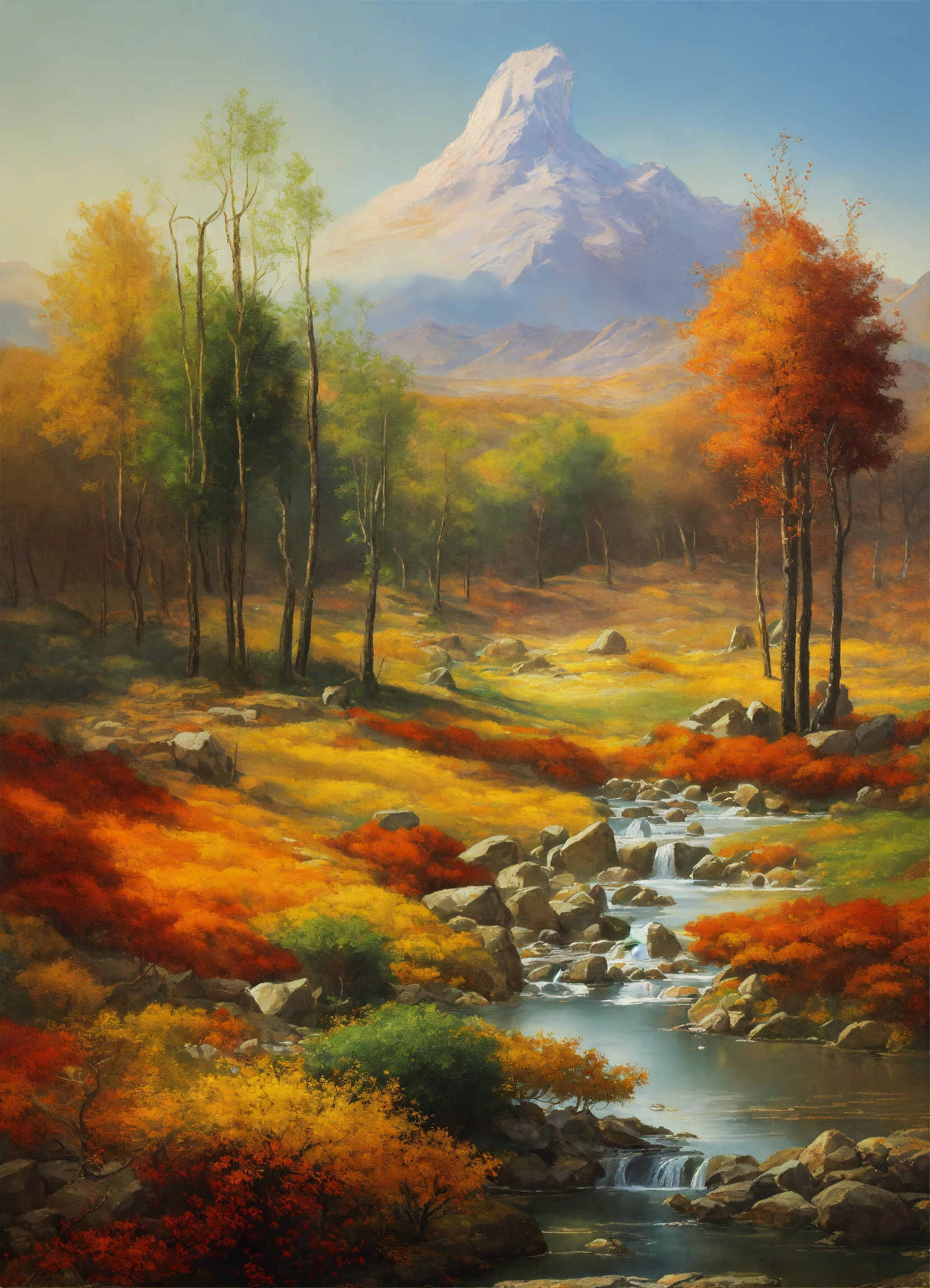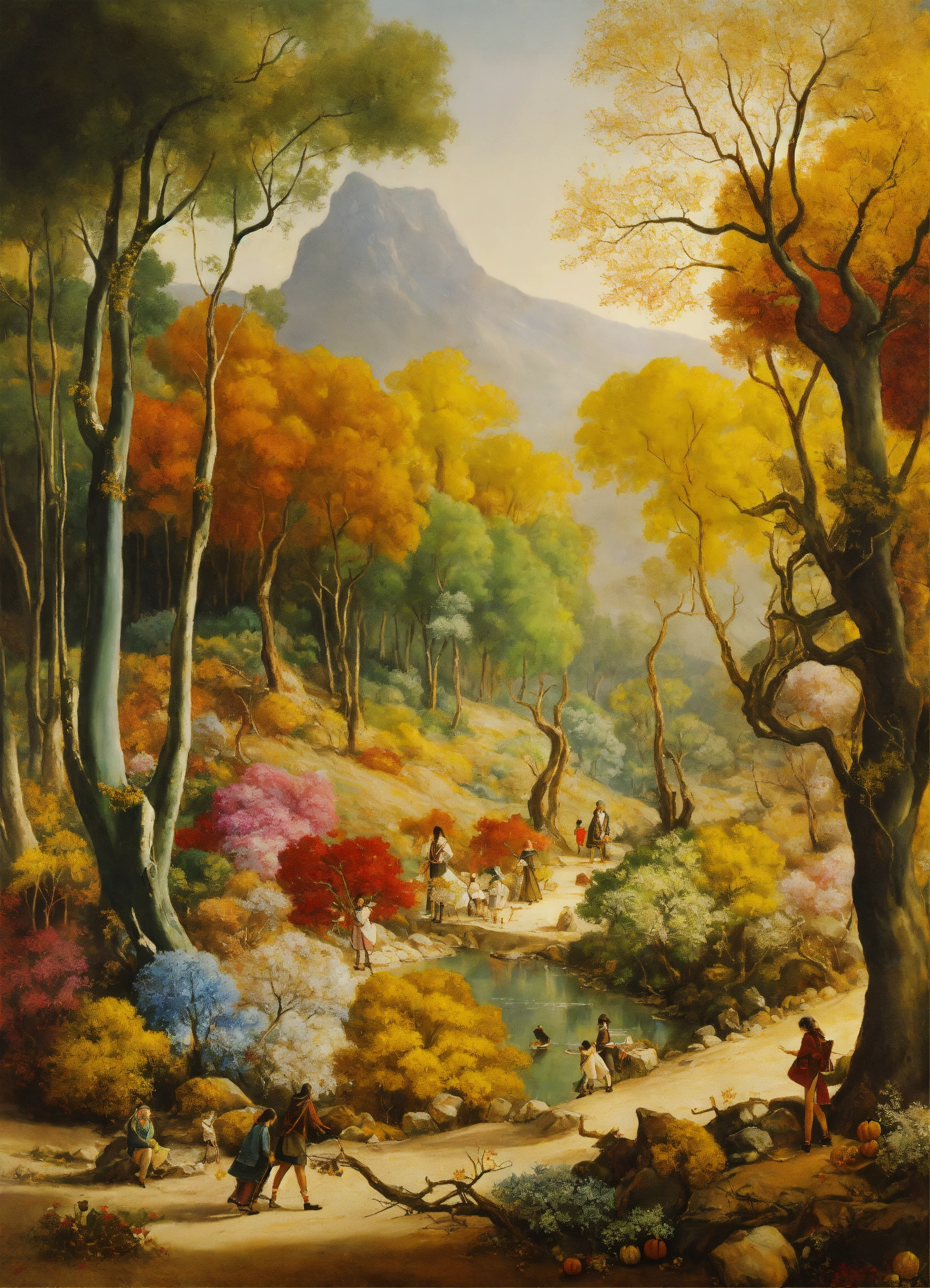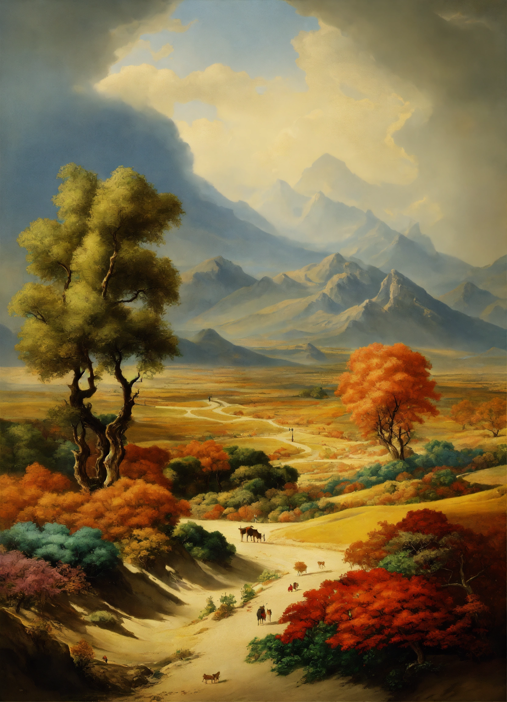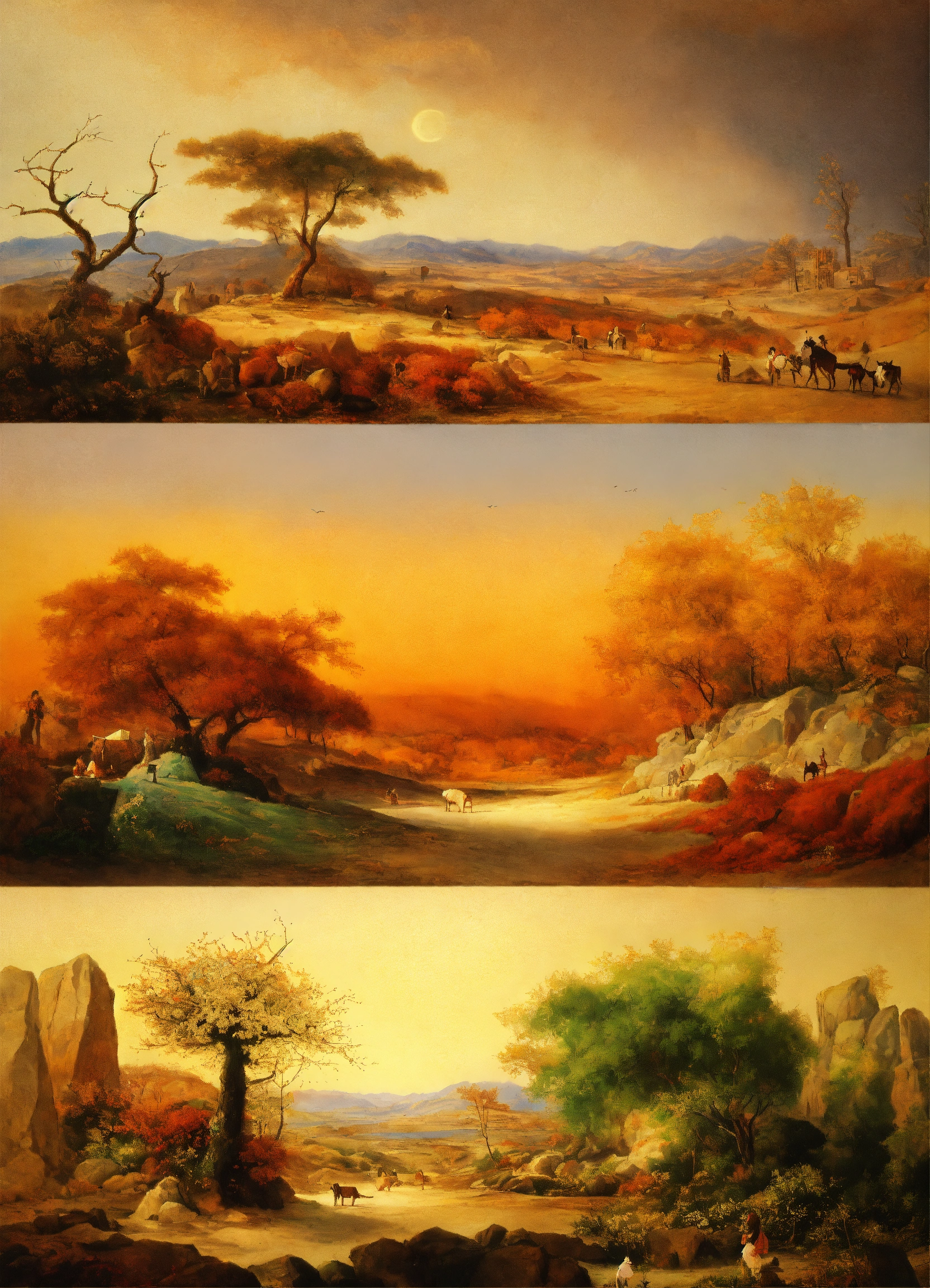 The four seasons forest (winter, spring, summer, and autumn)in the middle of the desert that dali would paint
