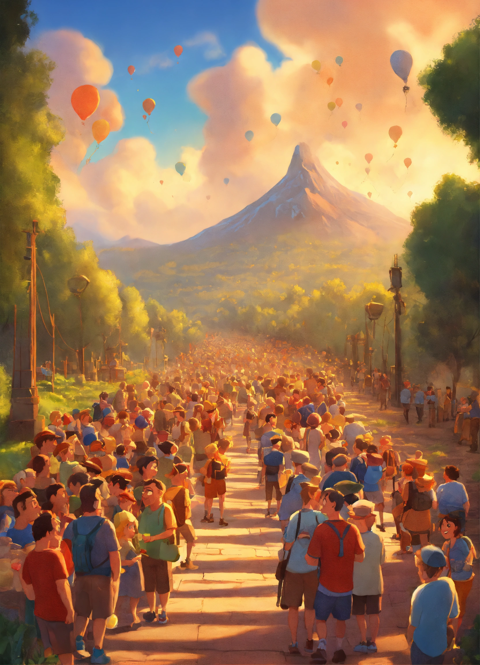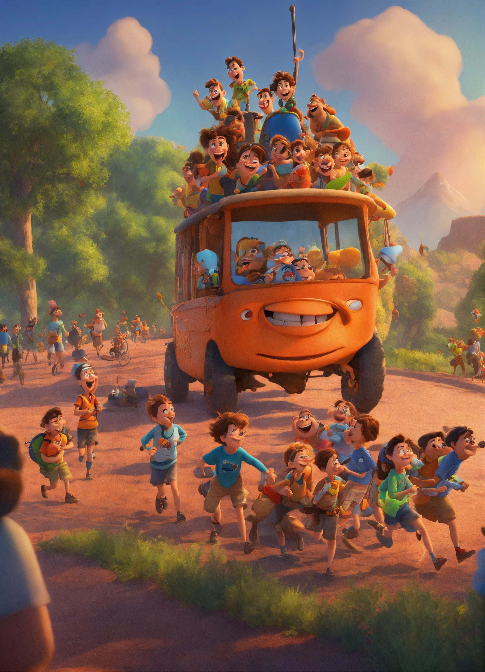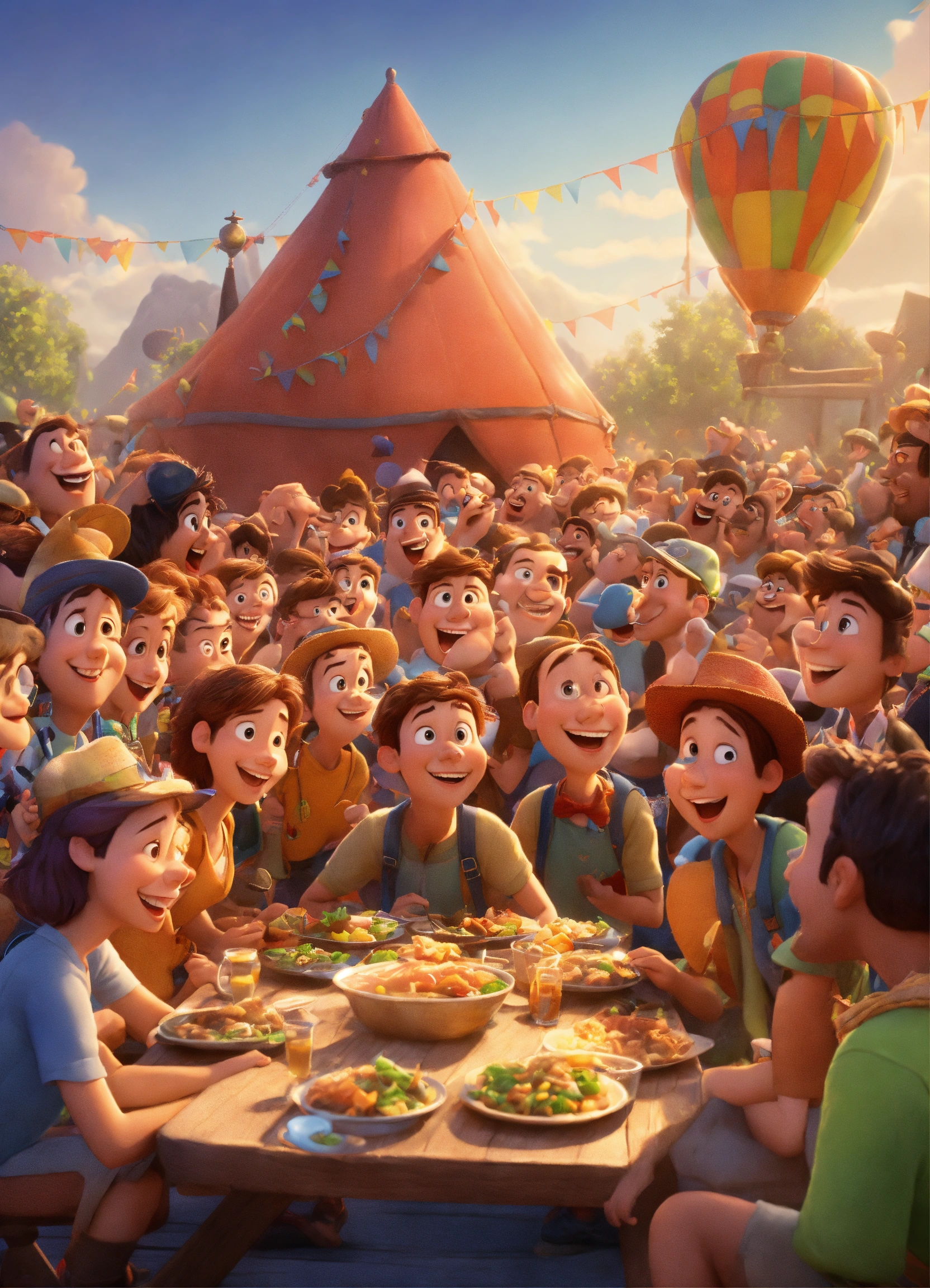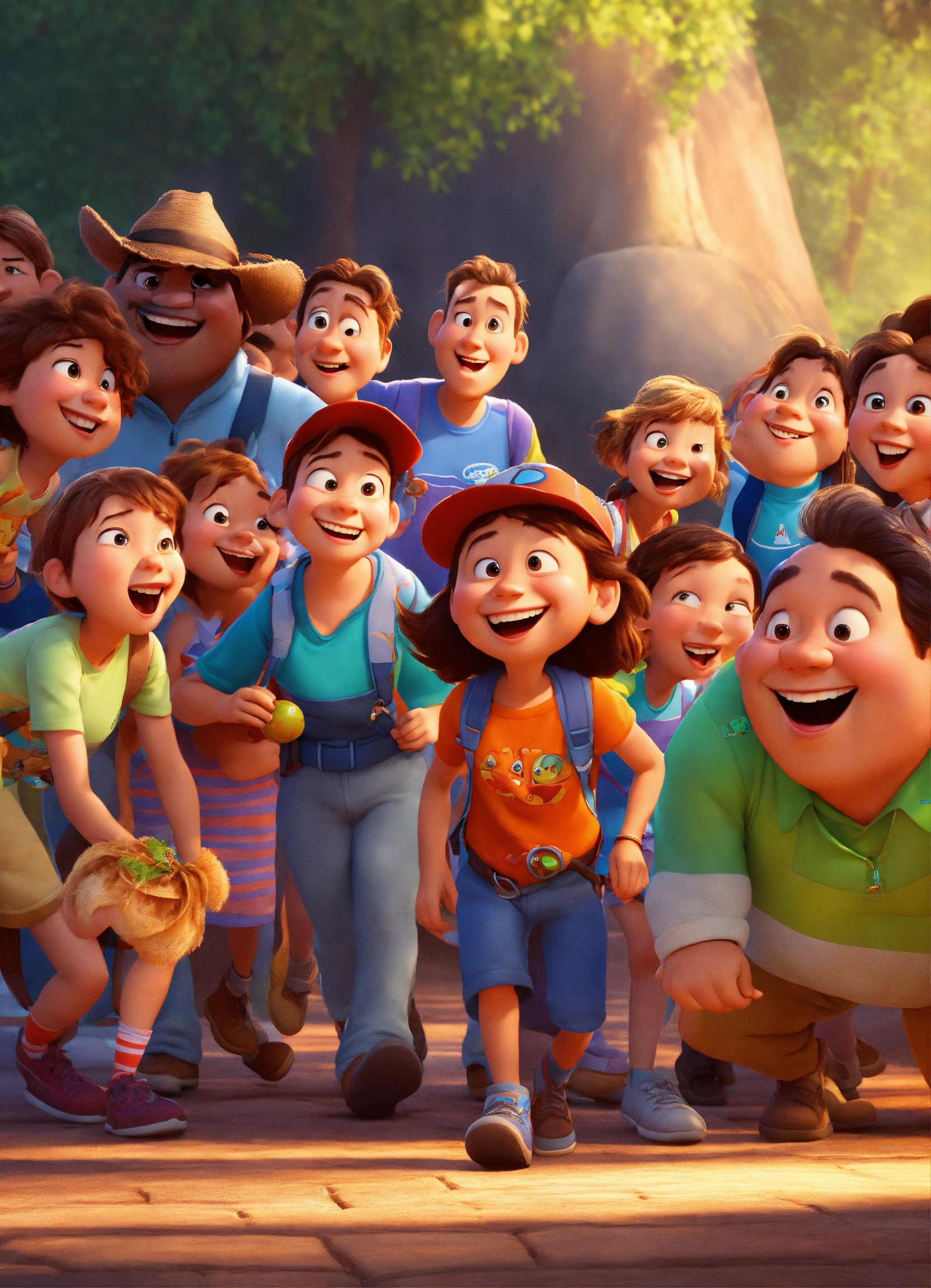 Pixar animation of participants gathering at the starting point, their smiles reflecting their voracious appetite for adventure. pixar style cartoon