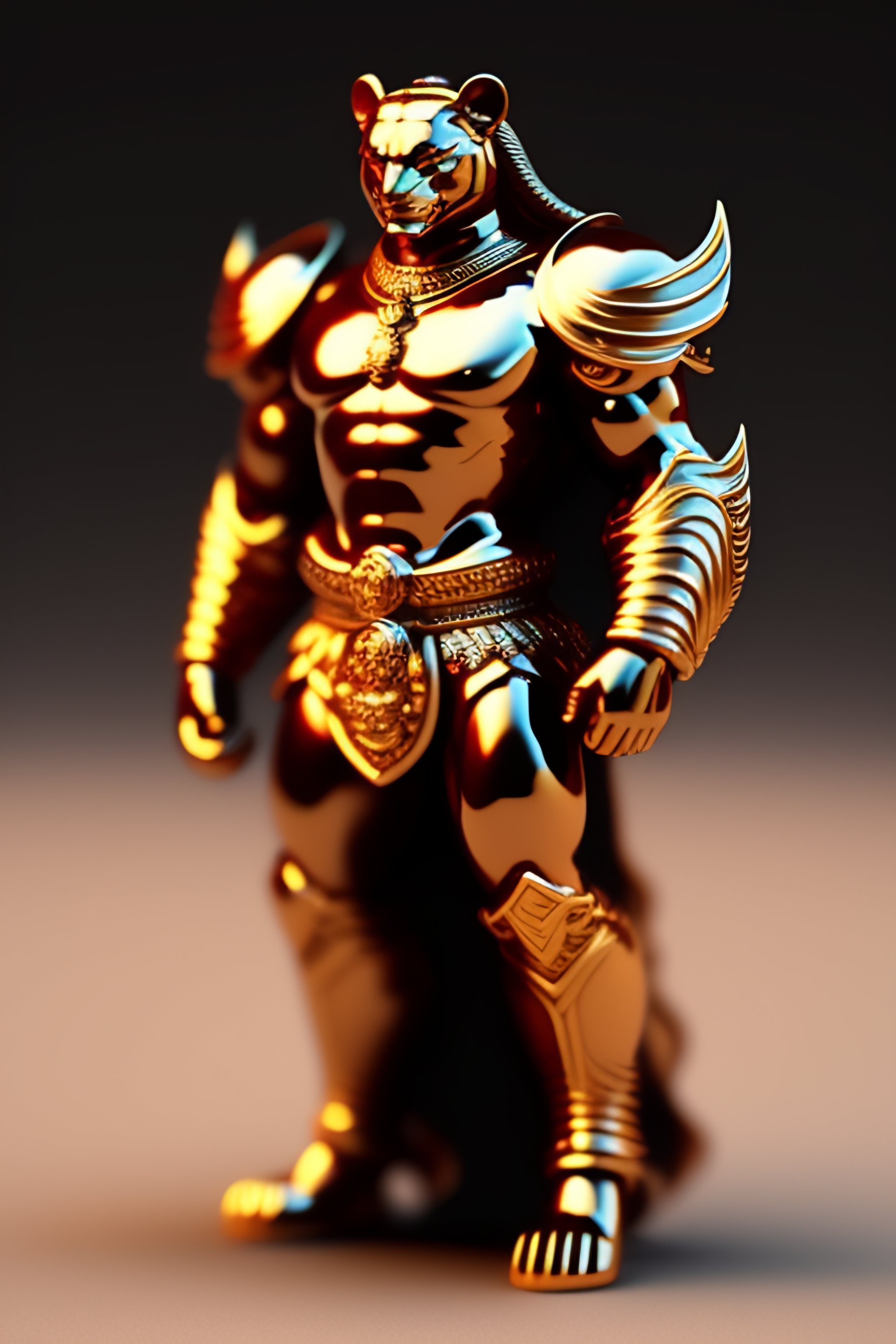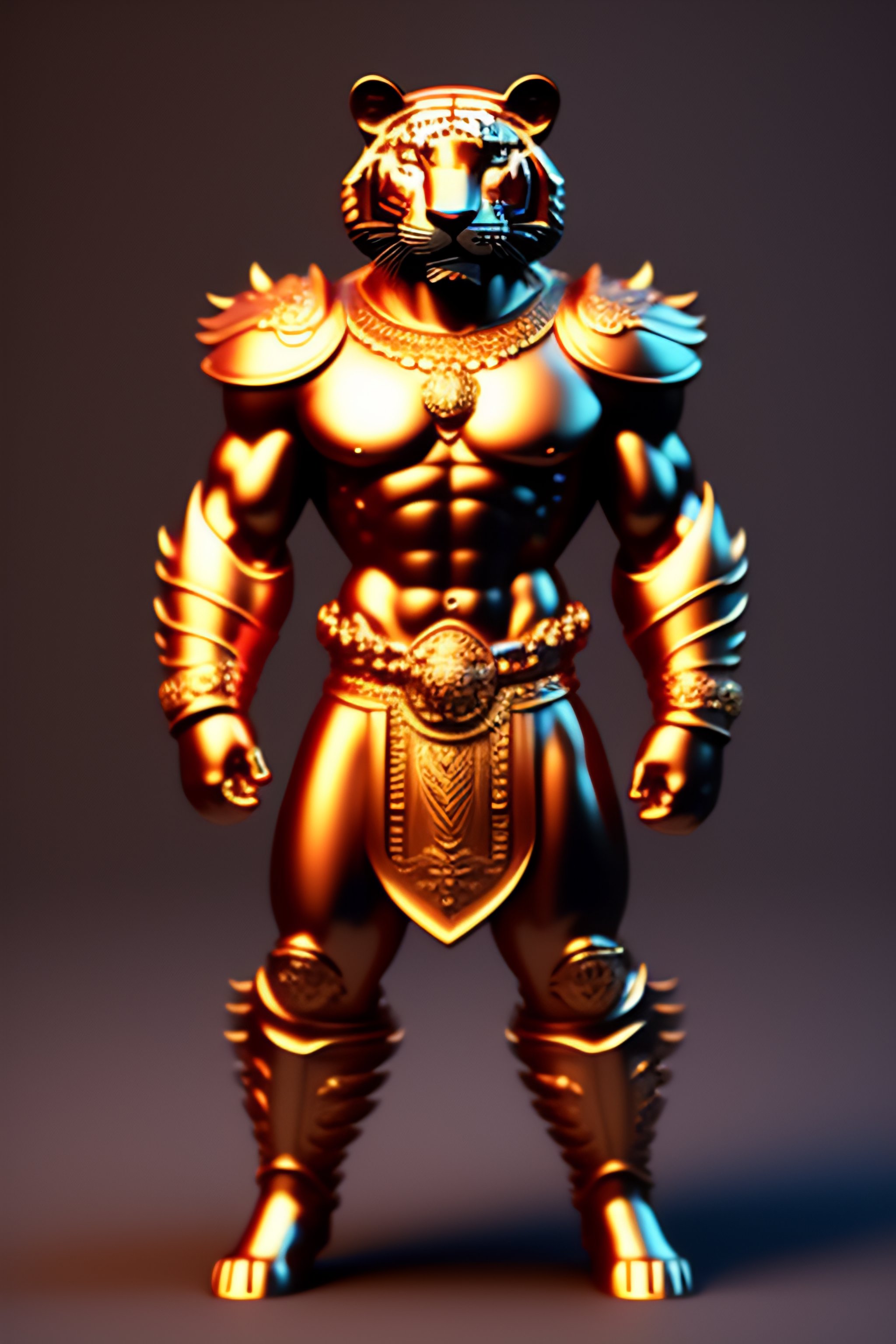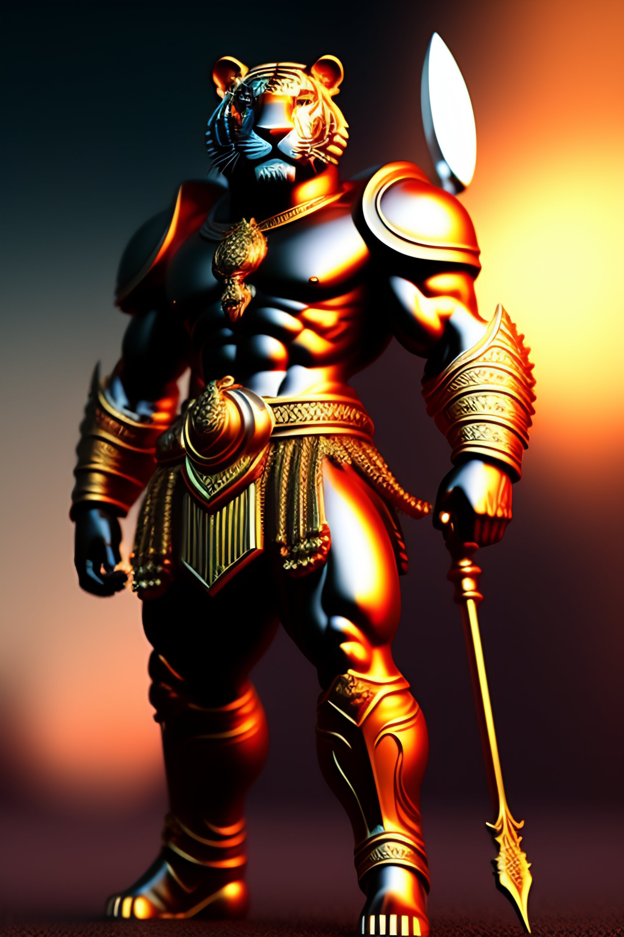 3d humanoid tiger virgo warrior with a fan in his left hand